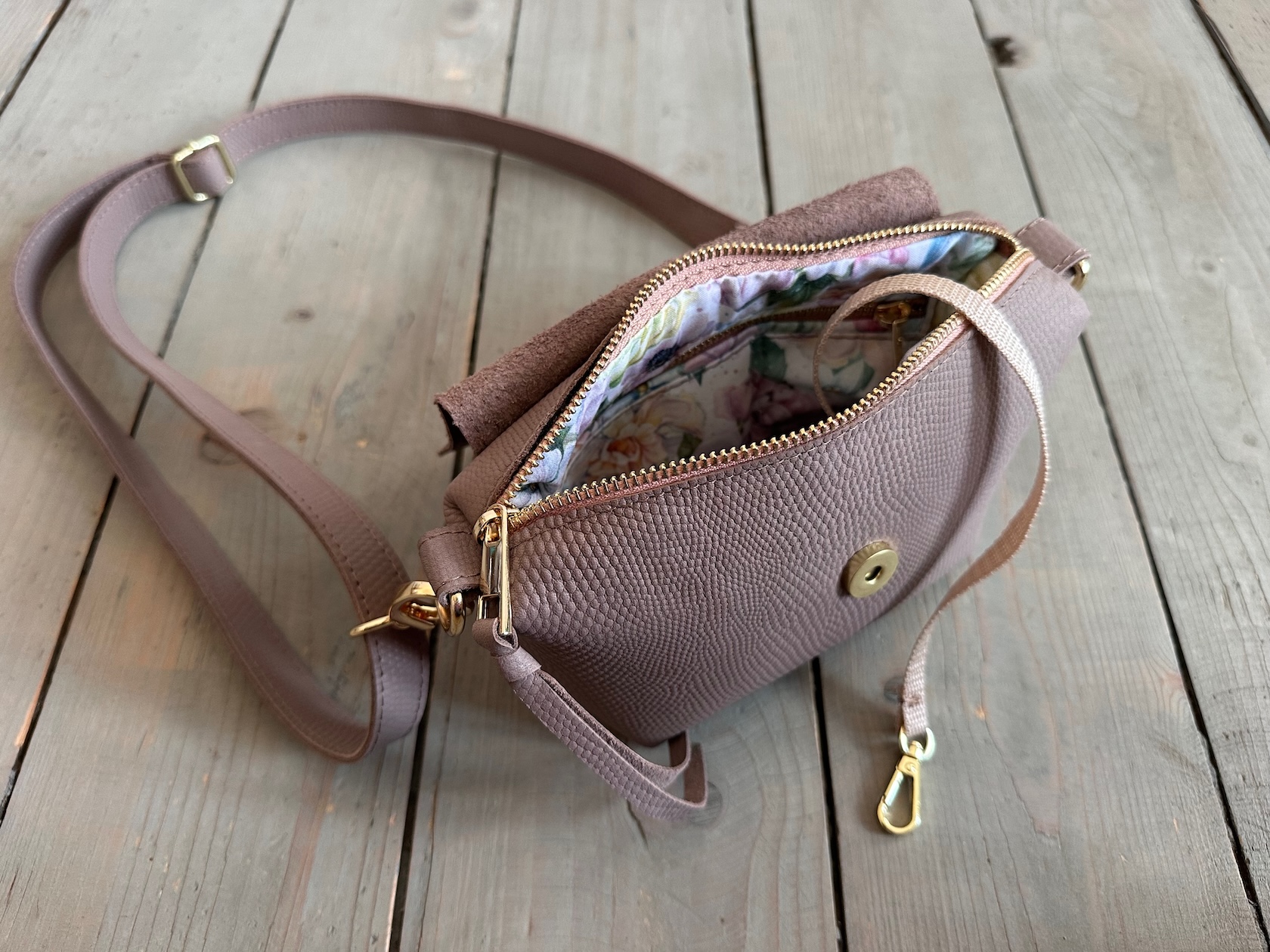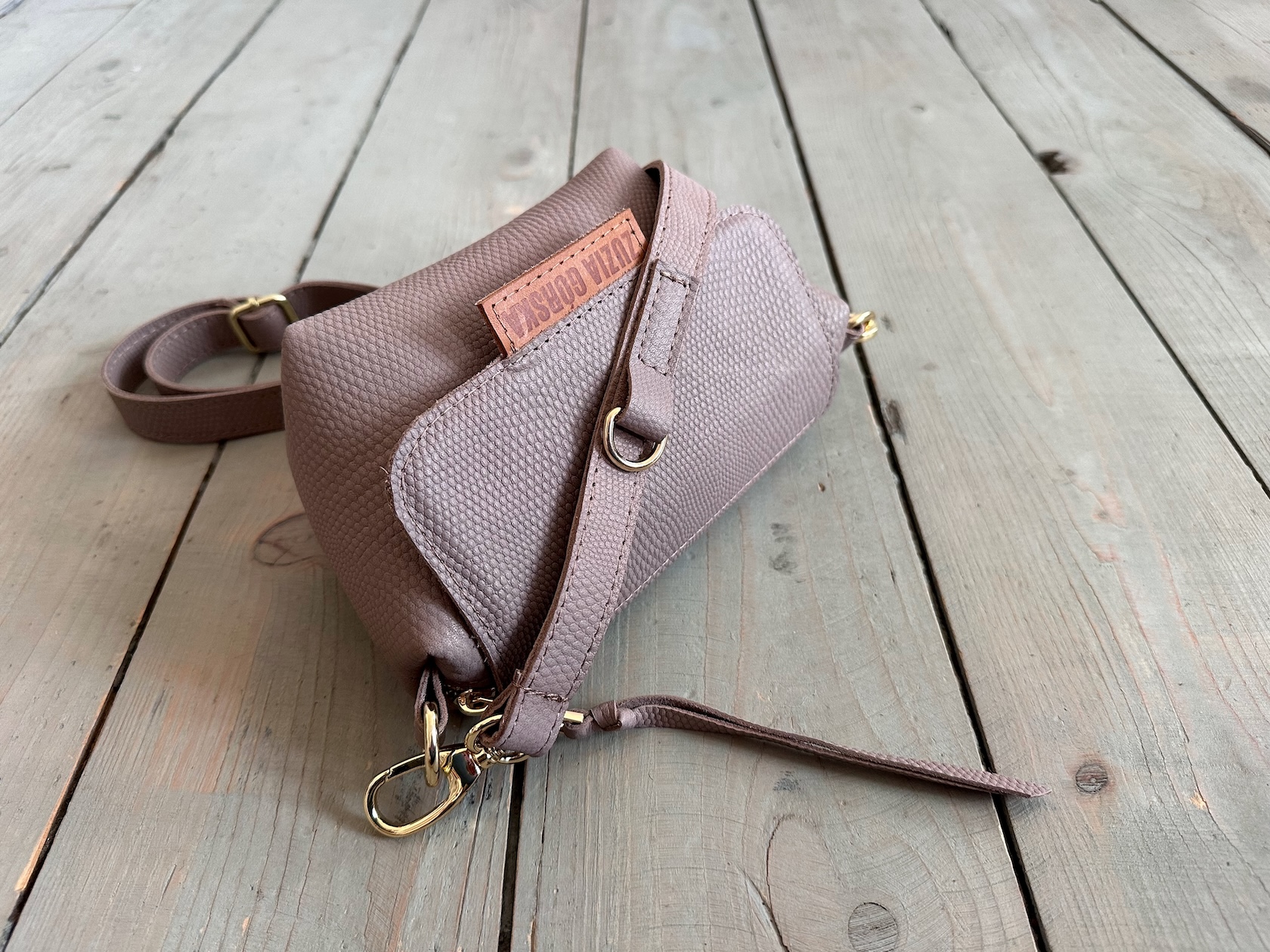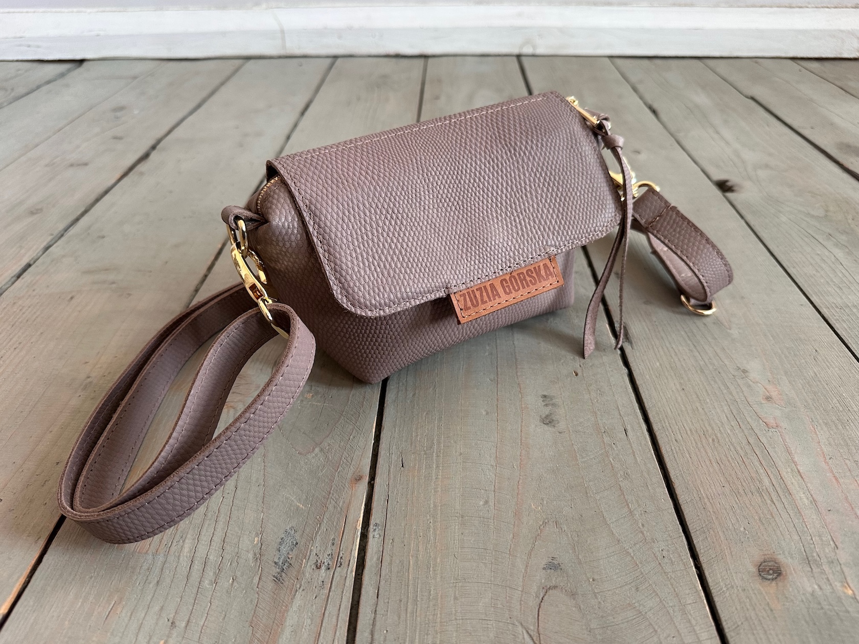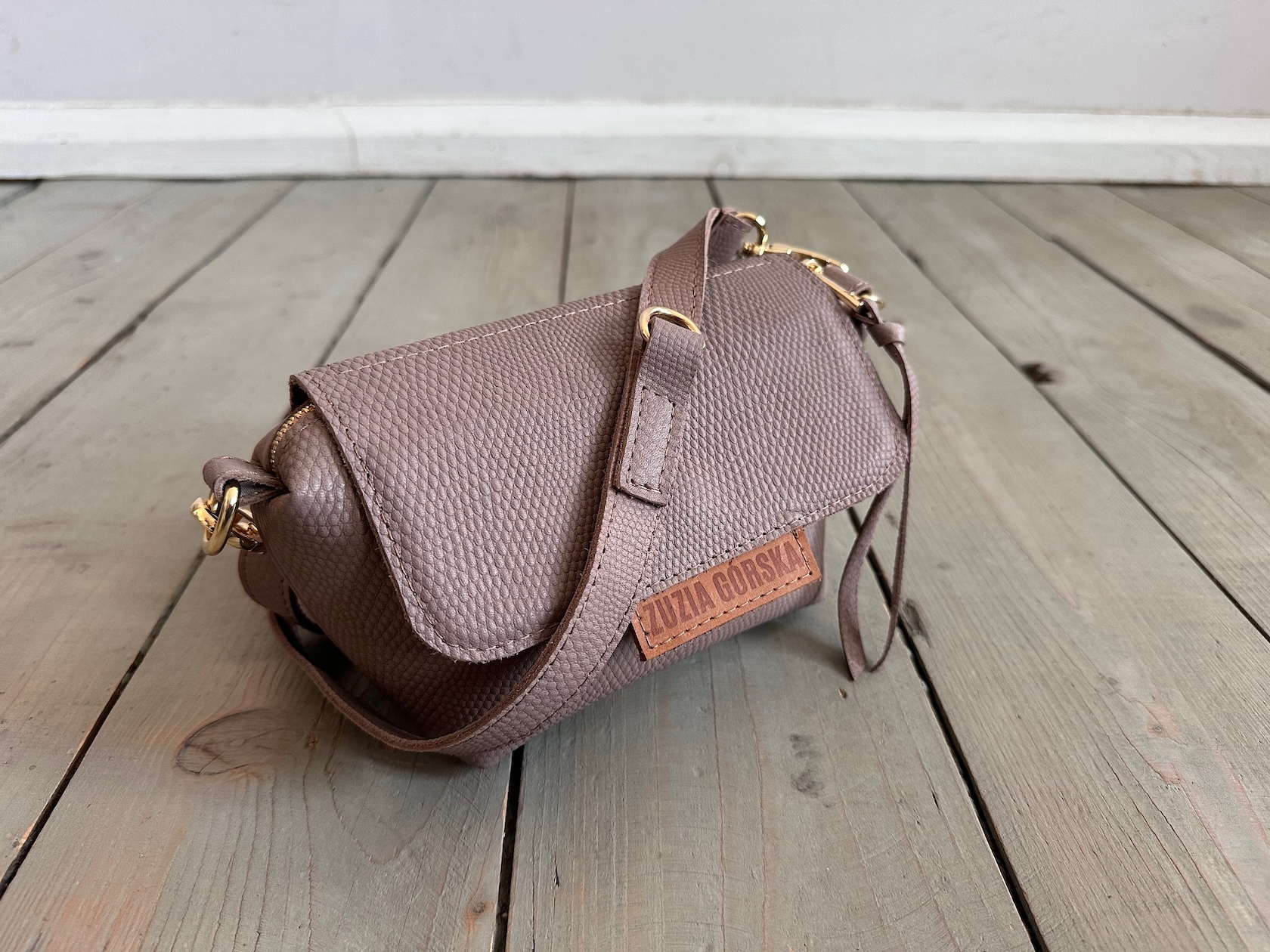 Uszyta ze skóry naturalnej licowej + bawełnianej podszewki.