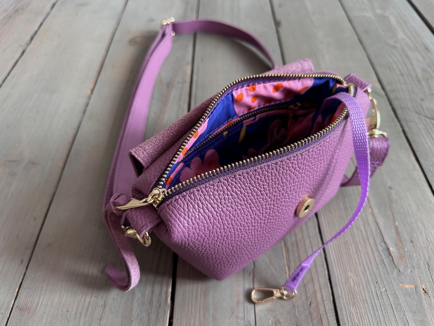 Uszyta ze skóry naturalnej licowej + bawełnianej podszewki.