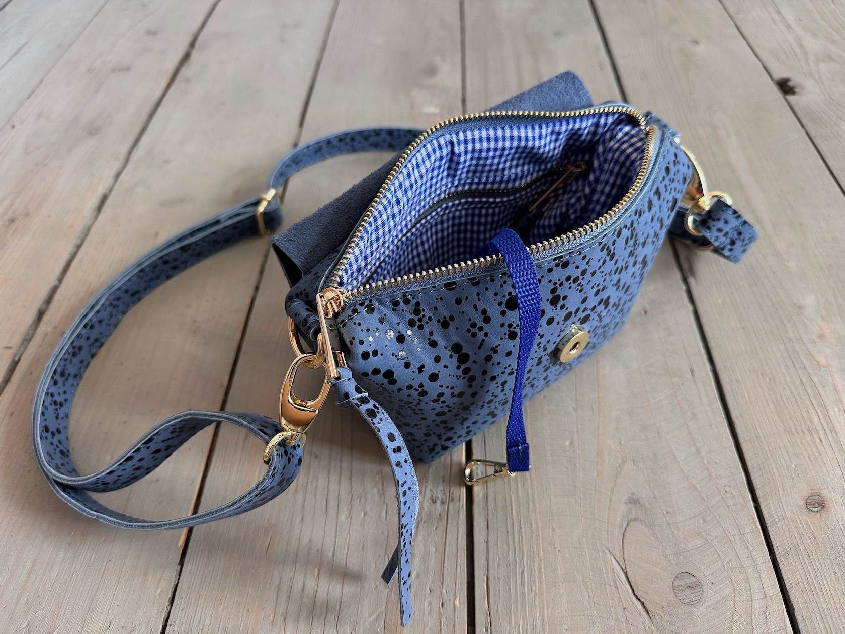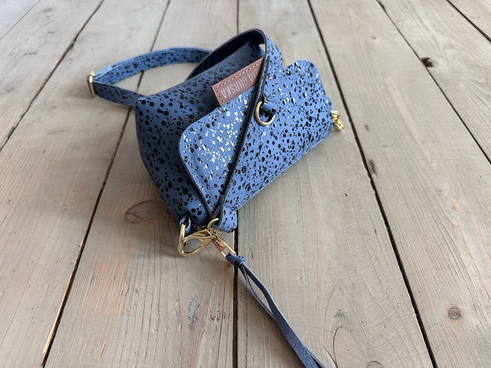 Wewnątrz kieszonka na zamek oraz smyczka z karabińczykiem.