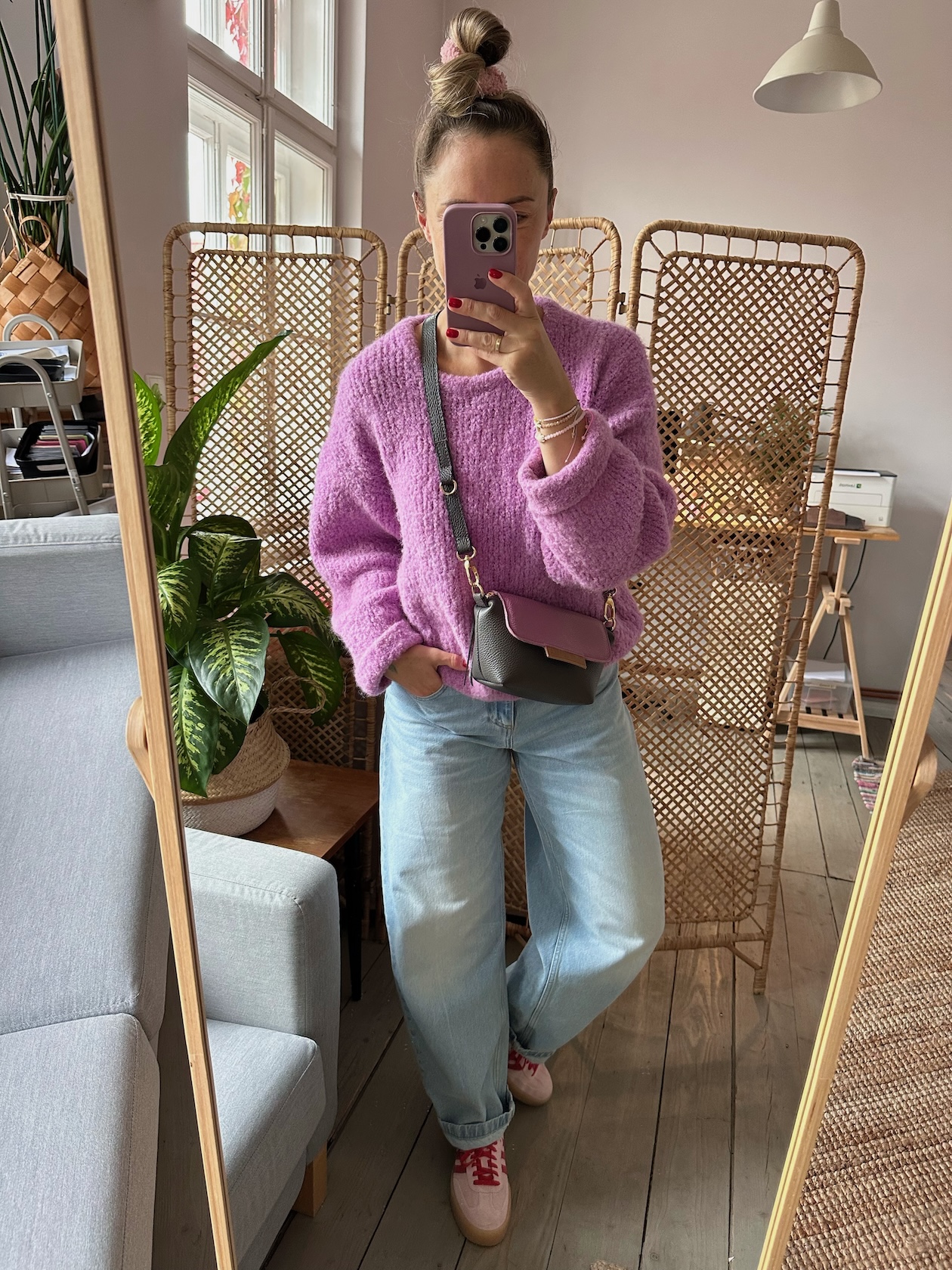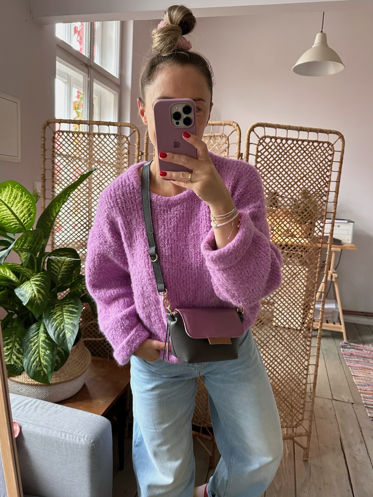 Uszyta ze skóry naturalnej licowej + bawełnianej podszewki.