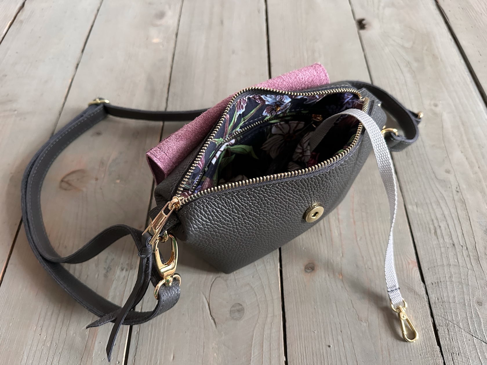 Wewnątrz kieszonka na zamek oraz smyczka z karabińczykiem.