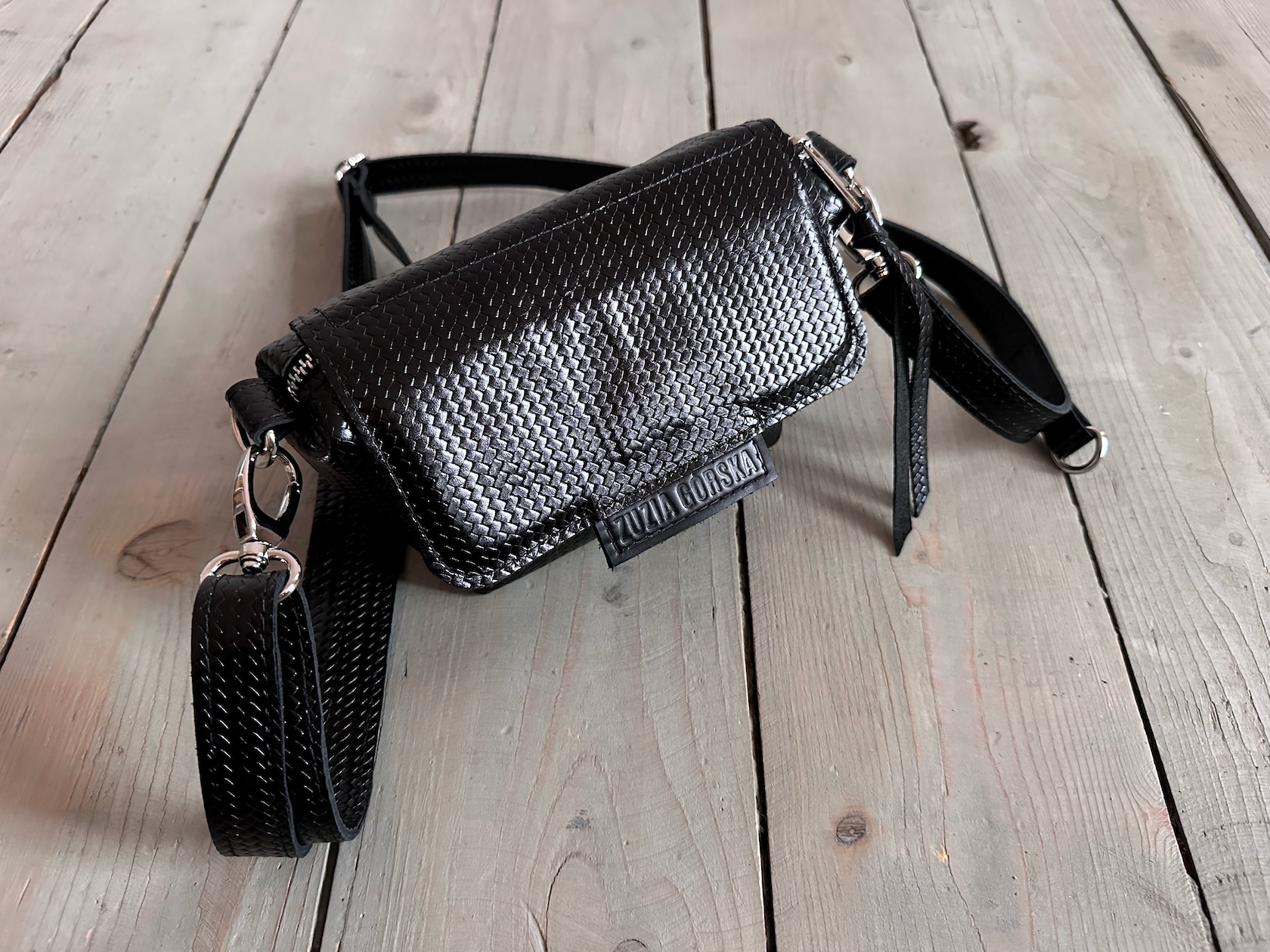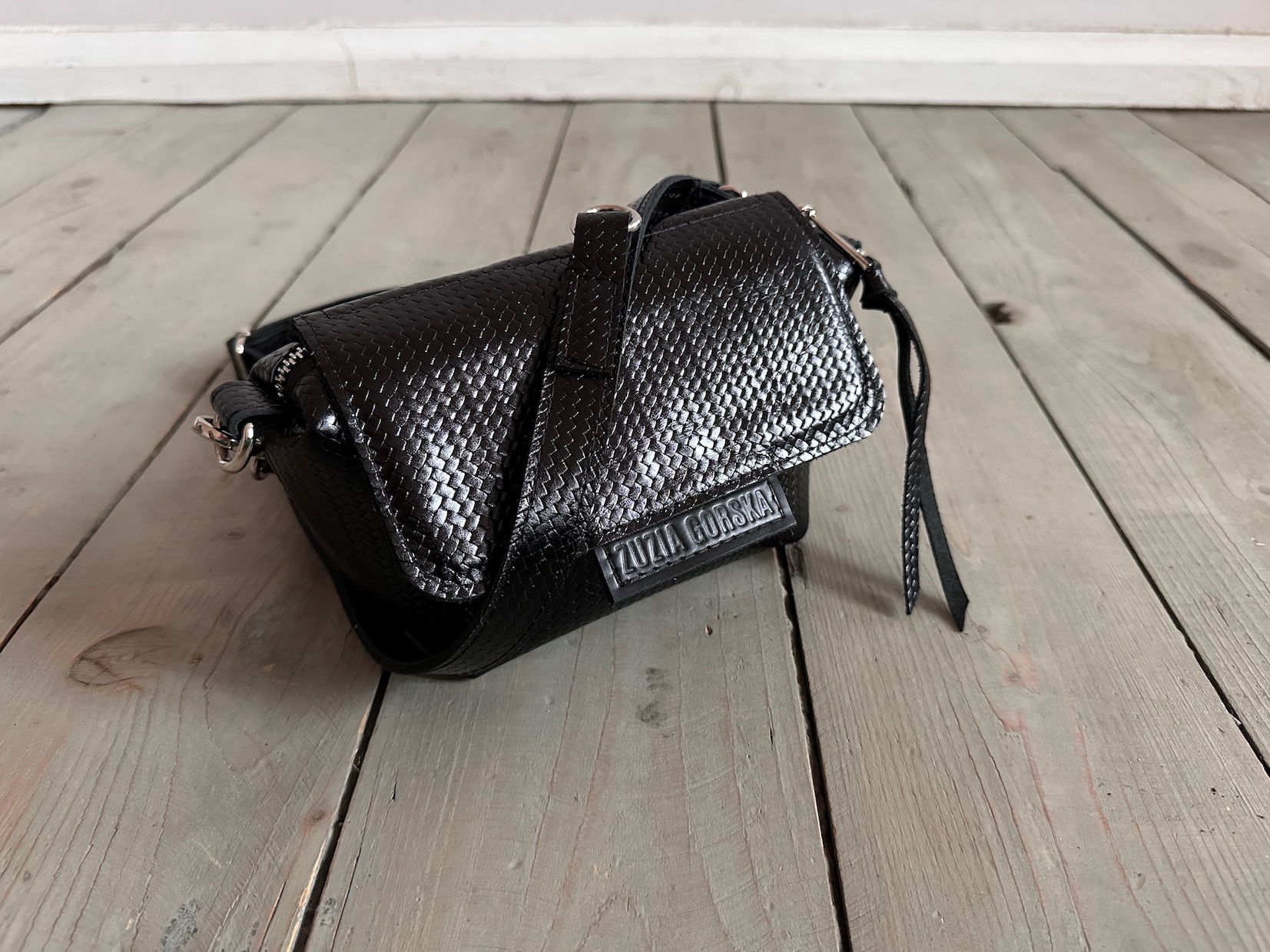 Uszyta ze skóry naturalnej licowej + bawełnianej podszewki.