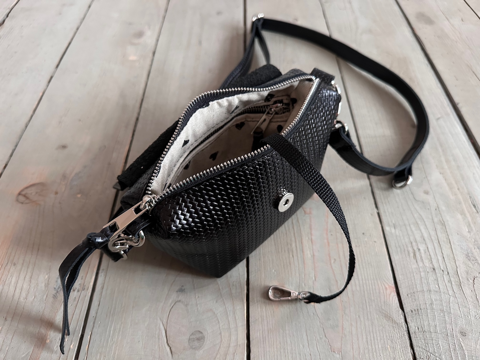 Wewnątrz kieszonka na zamek oraz smyczka z karabińczykiem.