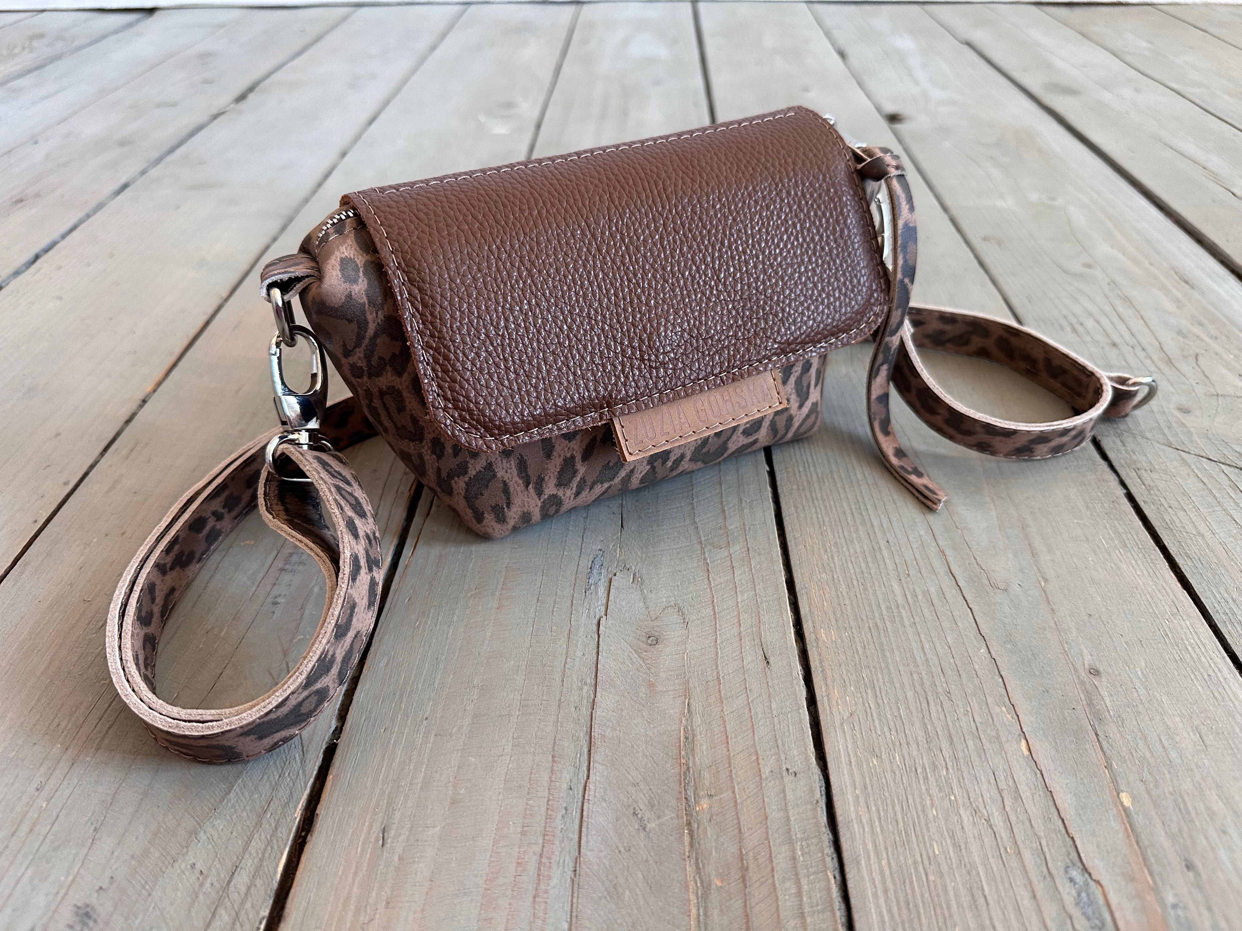 Uszyta ze skóry naturalnej licowej + nubukowej + bawełnianej podszewki.
