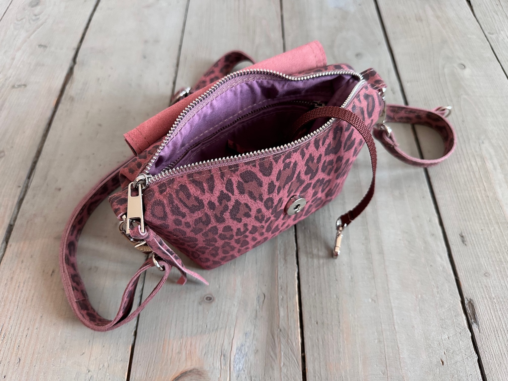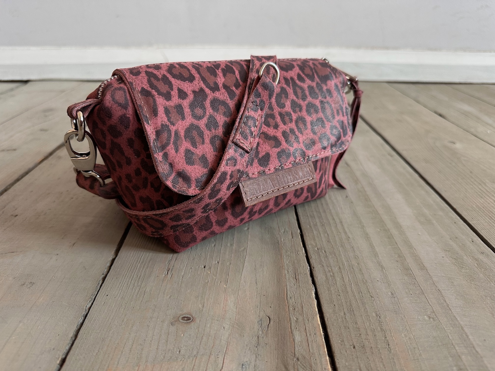Uszyta ze skóry naturalnej nubukowej + bawełnianej podszewki.