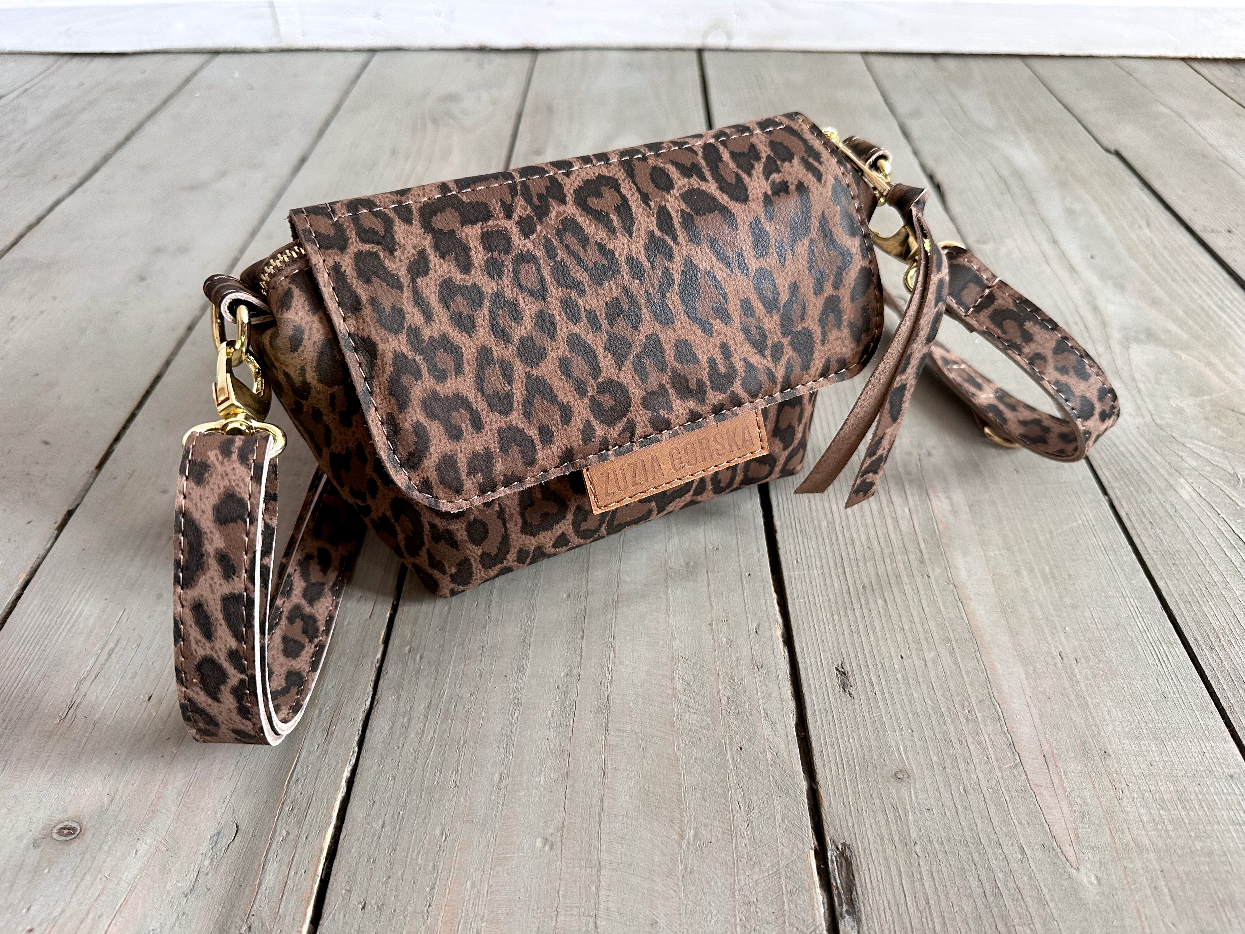 Uszyta ze skóry naturalnej nubukowej + bawełnianej podszewki.