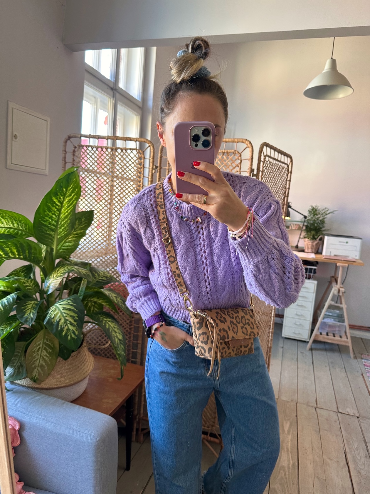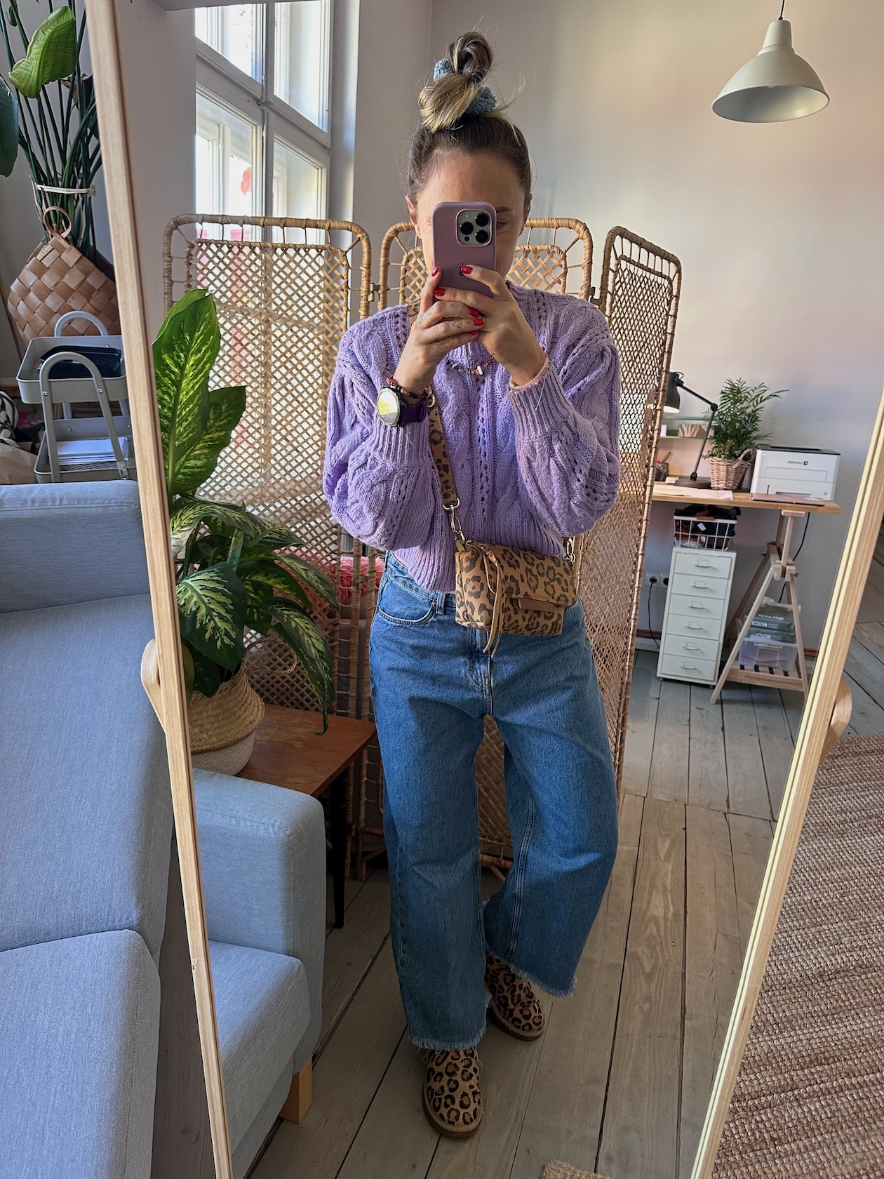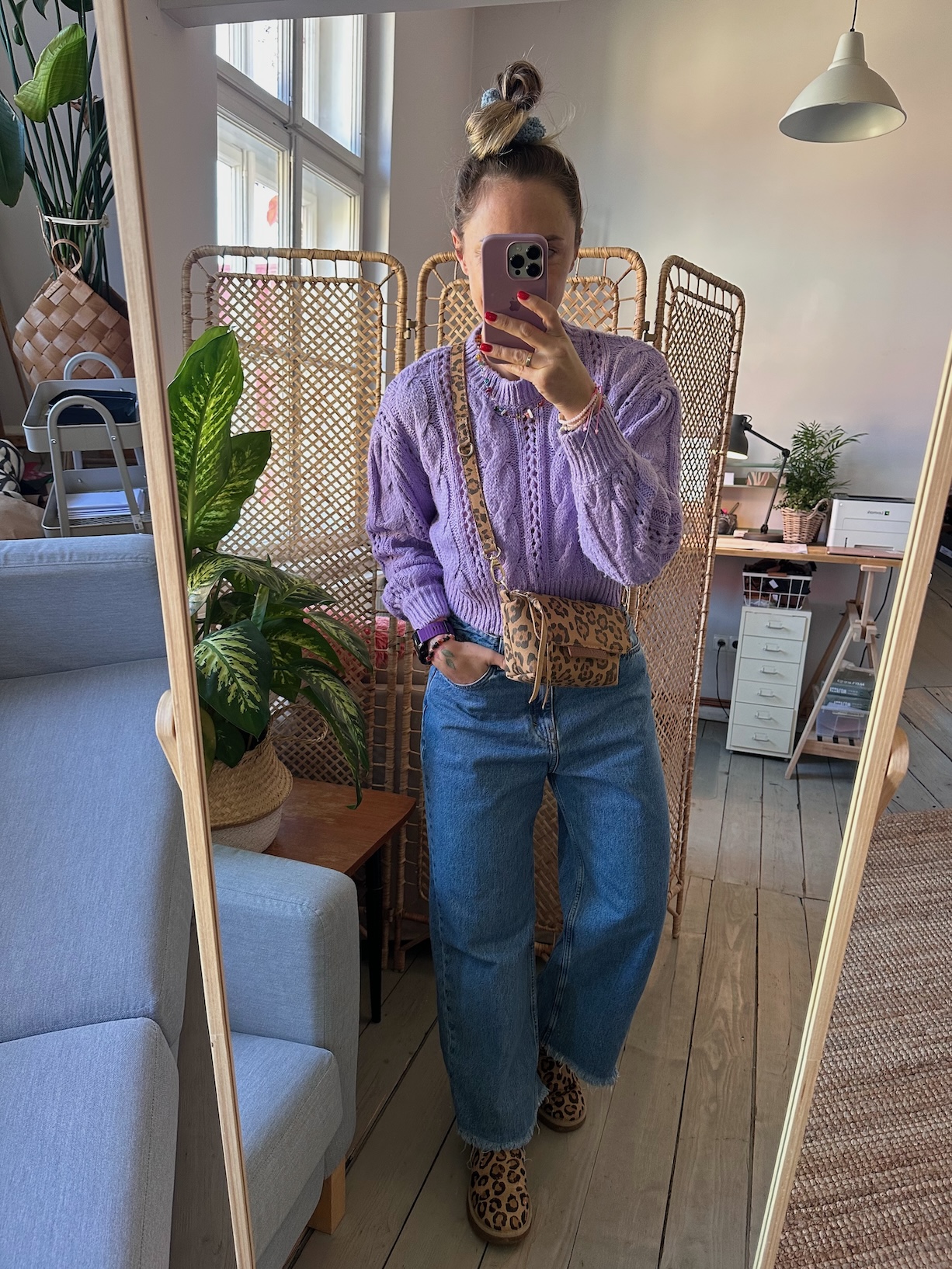 Uszyta ze skóry naturalnej welurowej + bawełnianej podszewki.