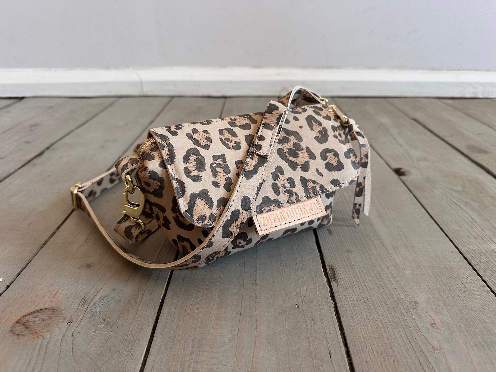 Uszyta ze skóry naturalnej licowej + nubukowej + bawełnianej podszewki.
