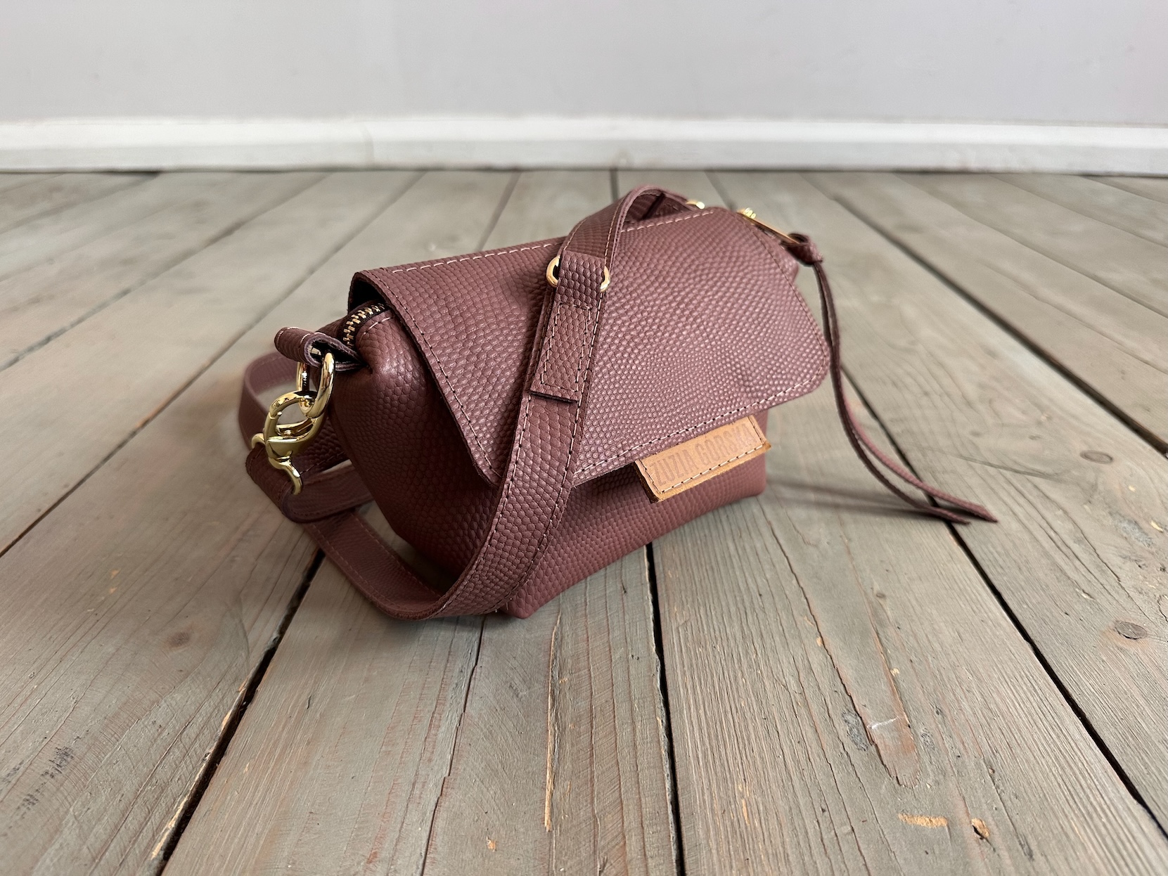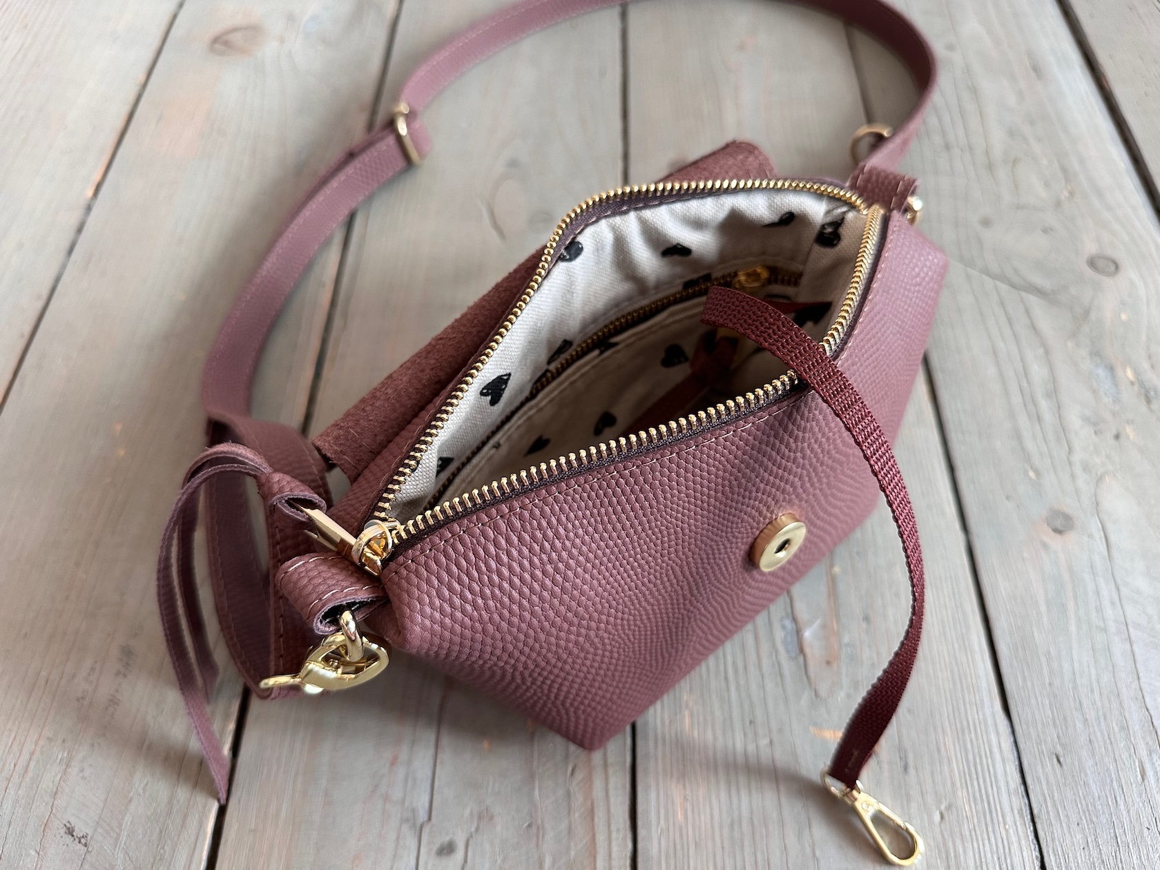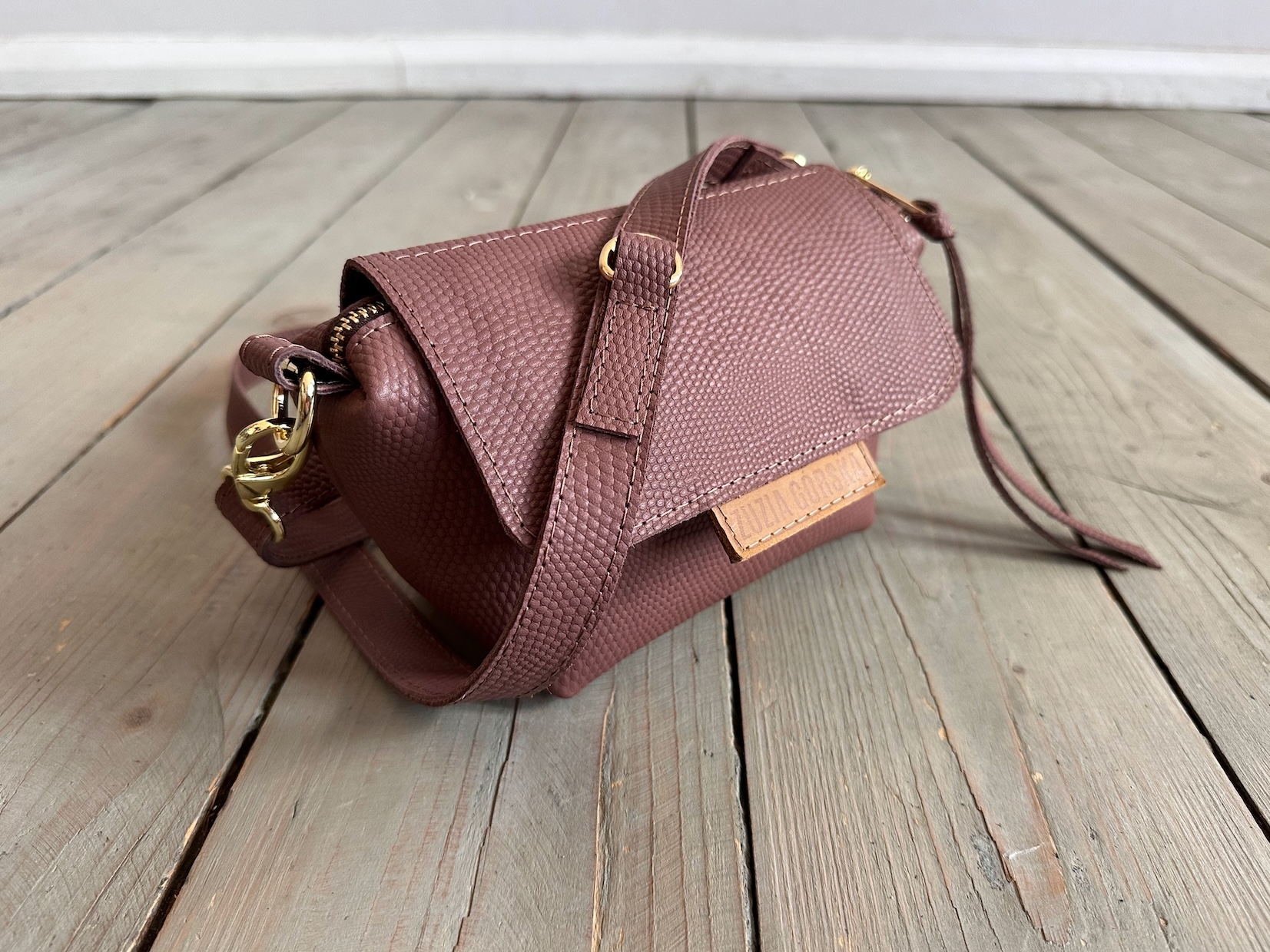 Uszyta ze skóry naturalnej licowej + bawełnianej podszewki.