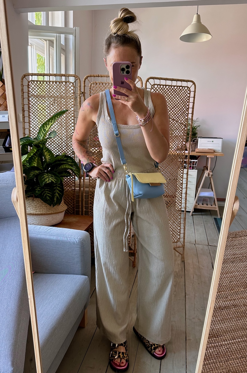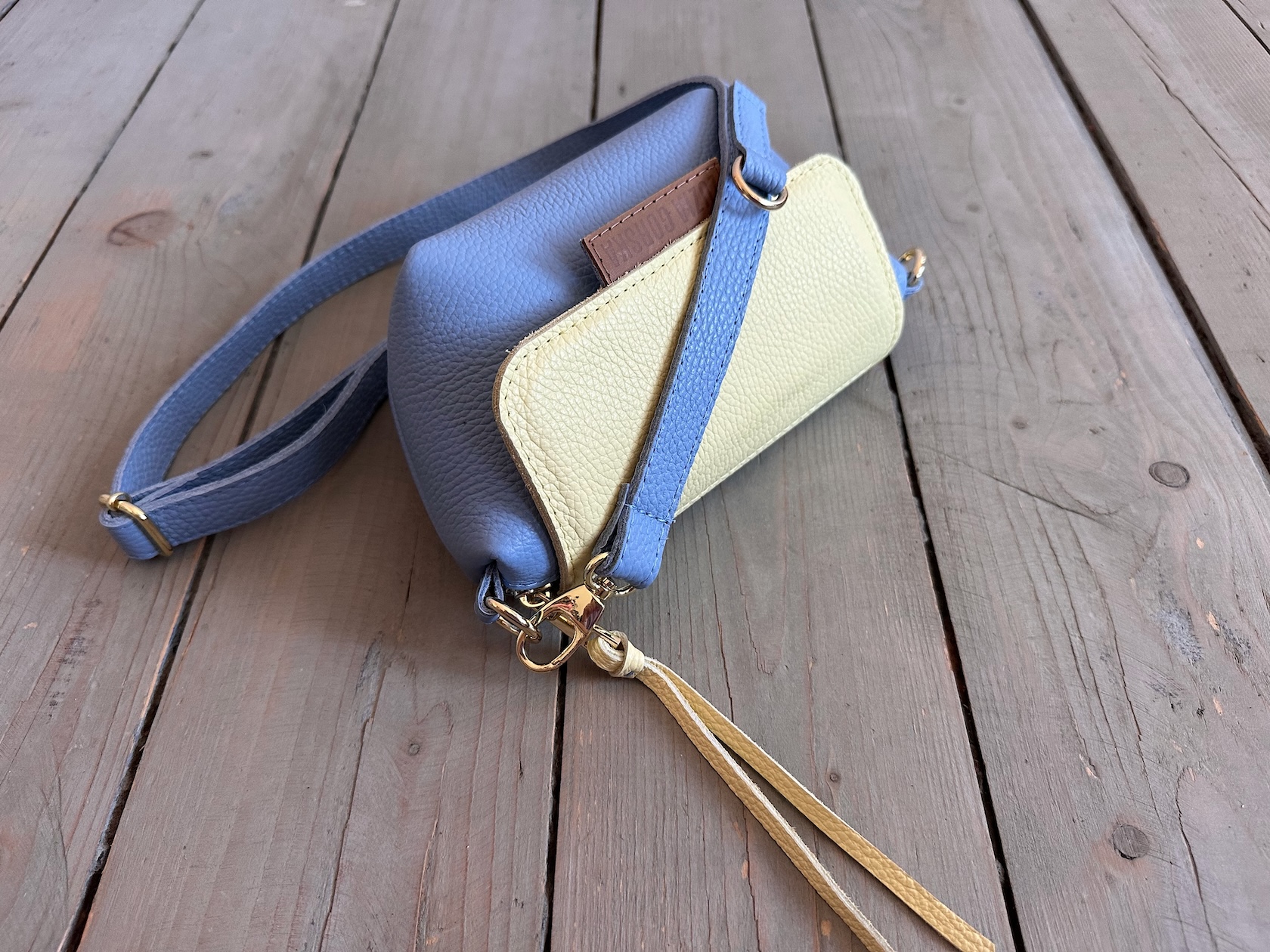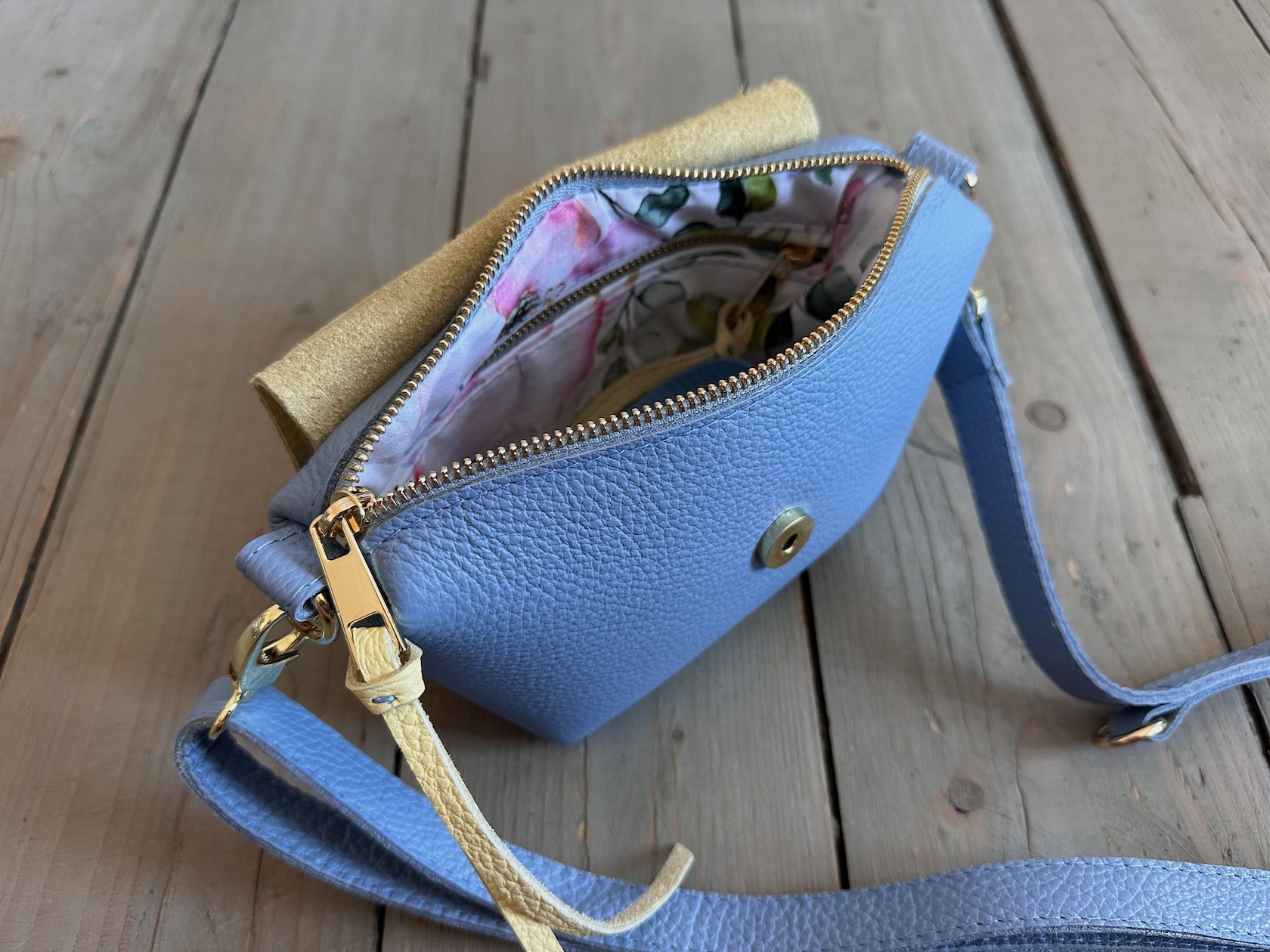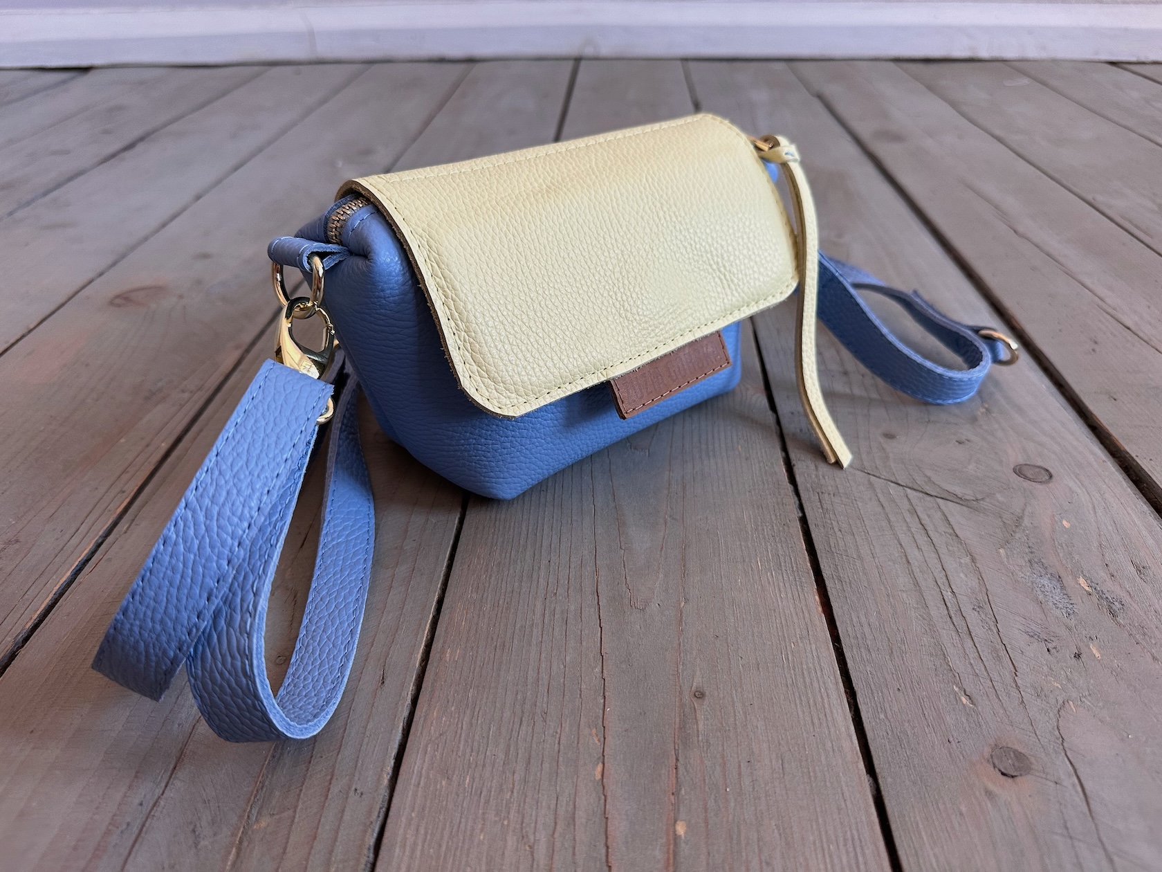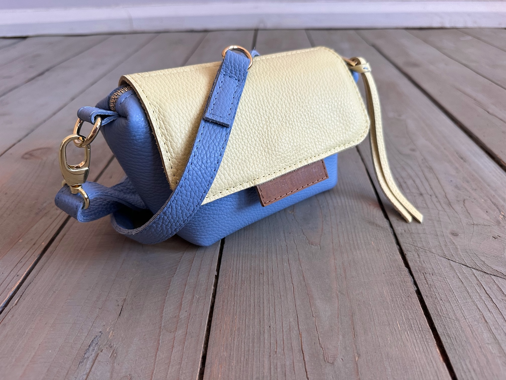 Uszyta ze skóry naturalnej licowej + bawełnianej podszewki.