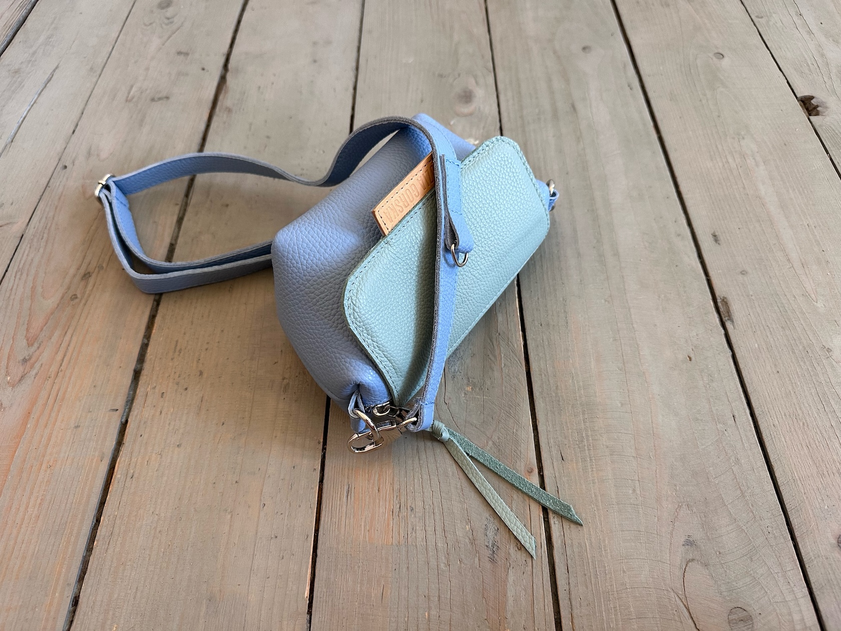 Uszyta ze skóry naturalnej licowej + bawełnianej podszewki.