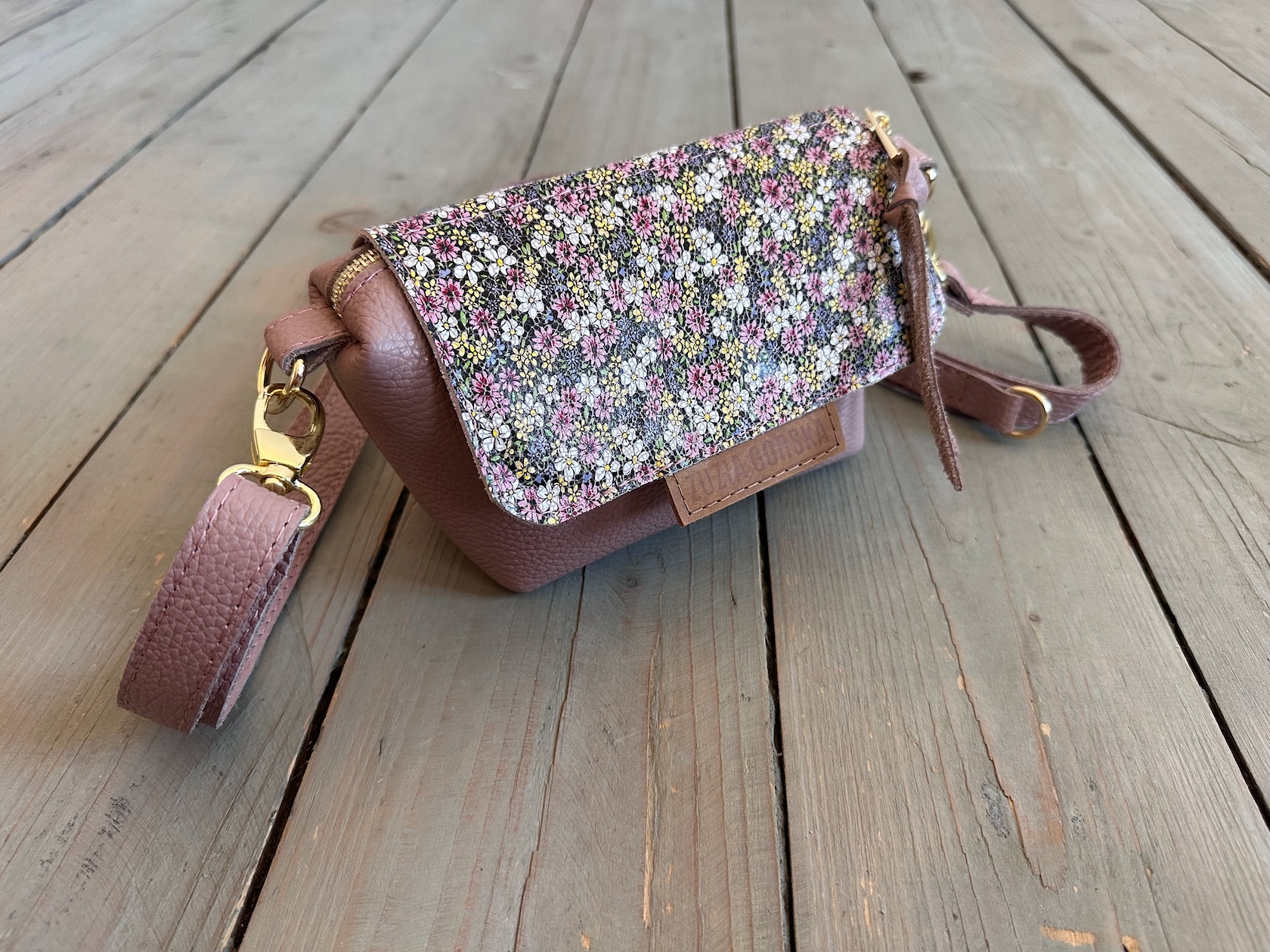 Uszyta ze skóry naturalnej licowej + bawełnianej podszewki.