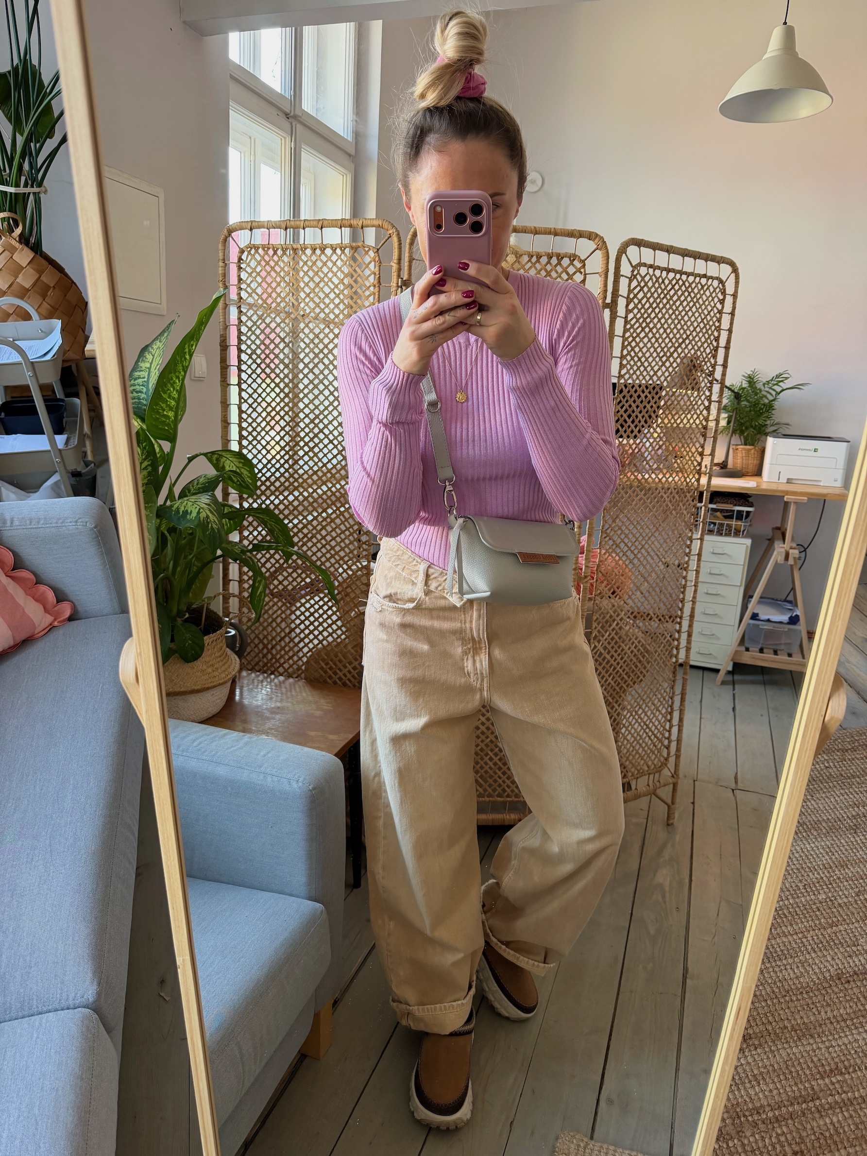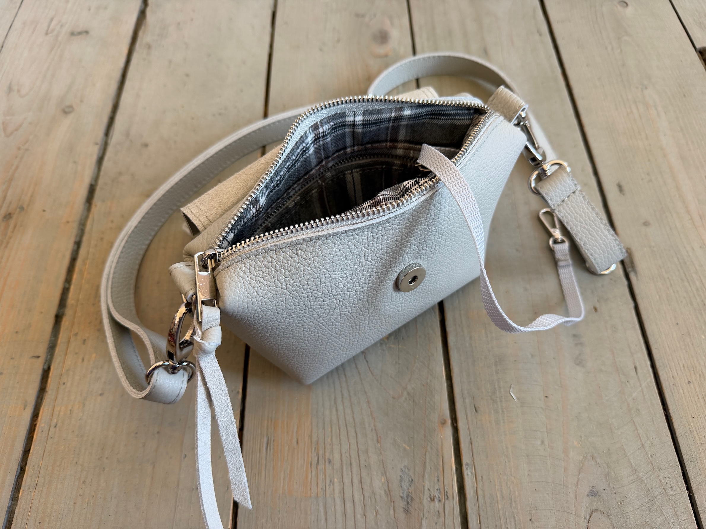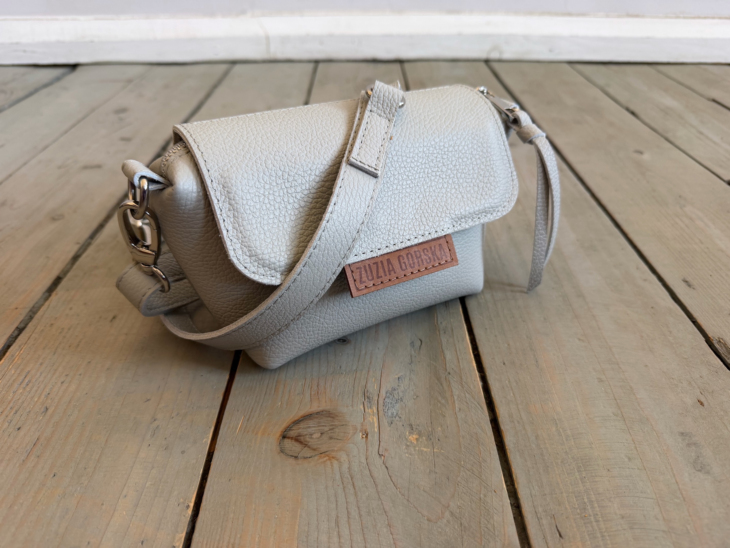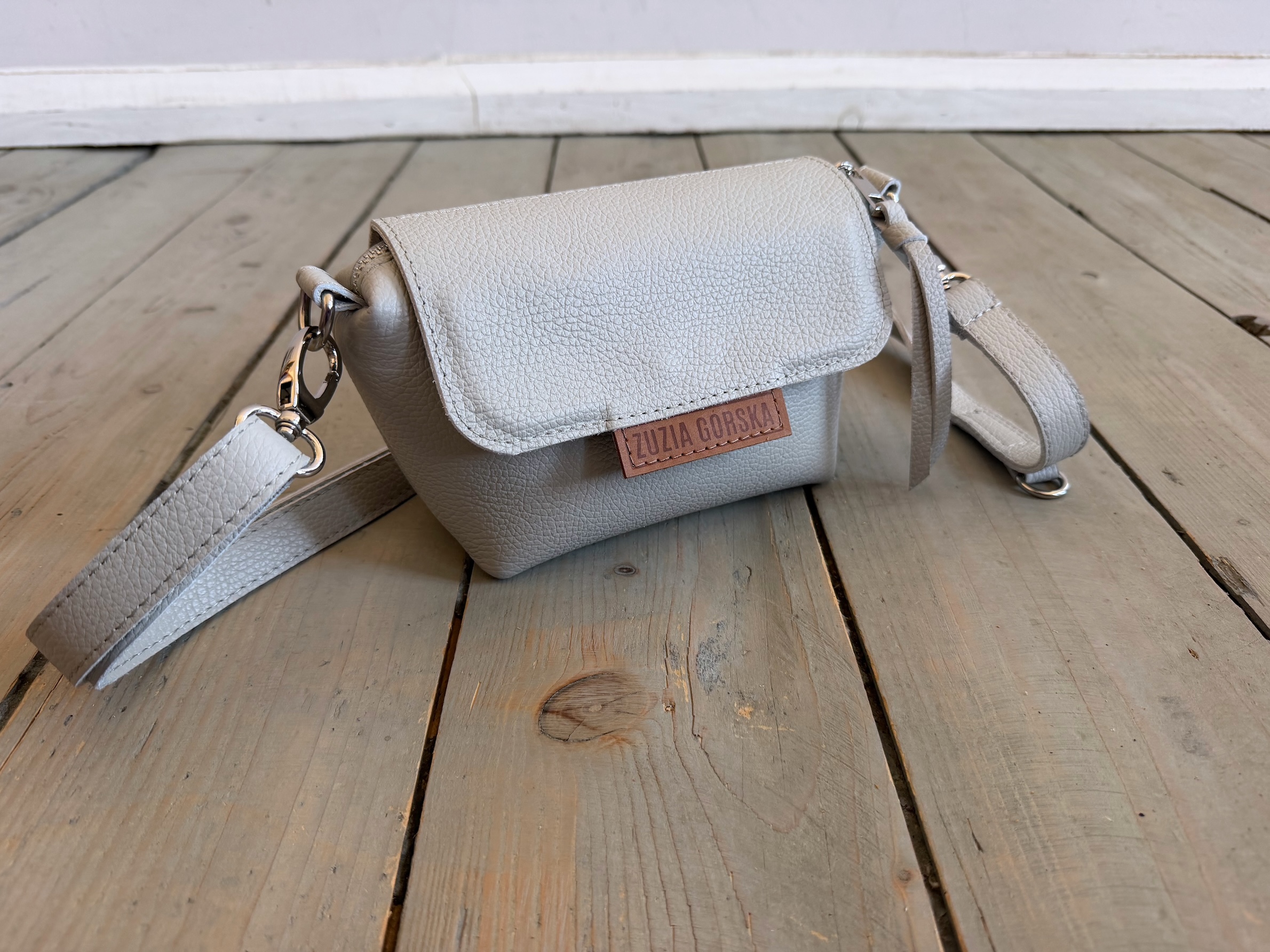 Uszyta ze skóry naturalnej licowej + bawełnianej podszewki.