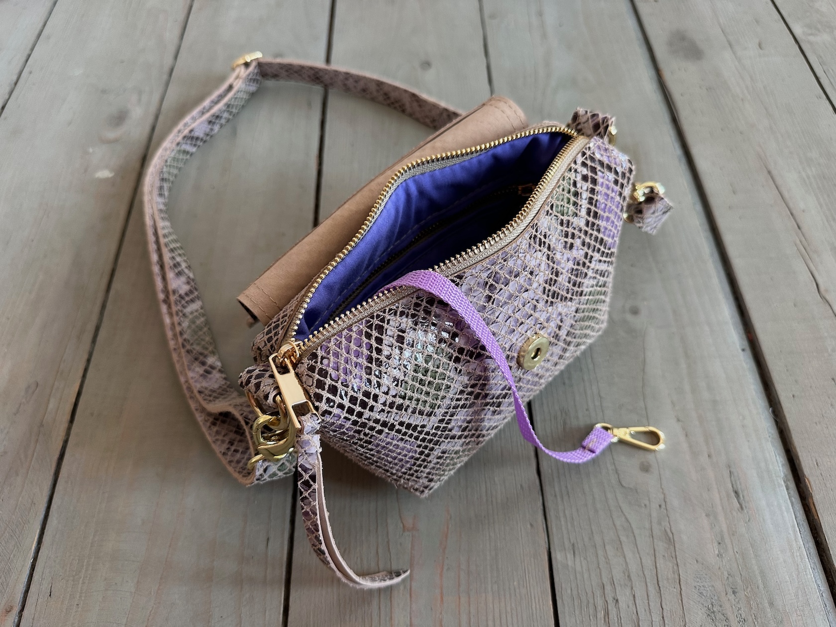 Wewnątrz kieszonka na zamek oraz smyczka z karabińczykiem.