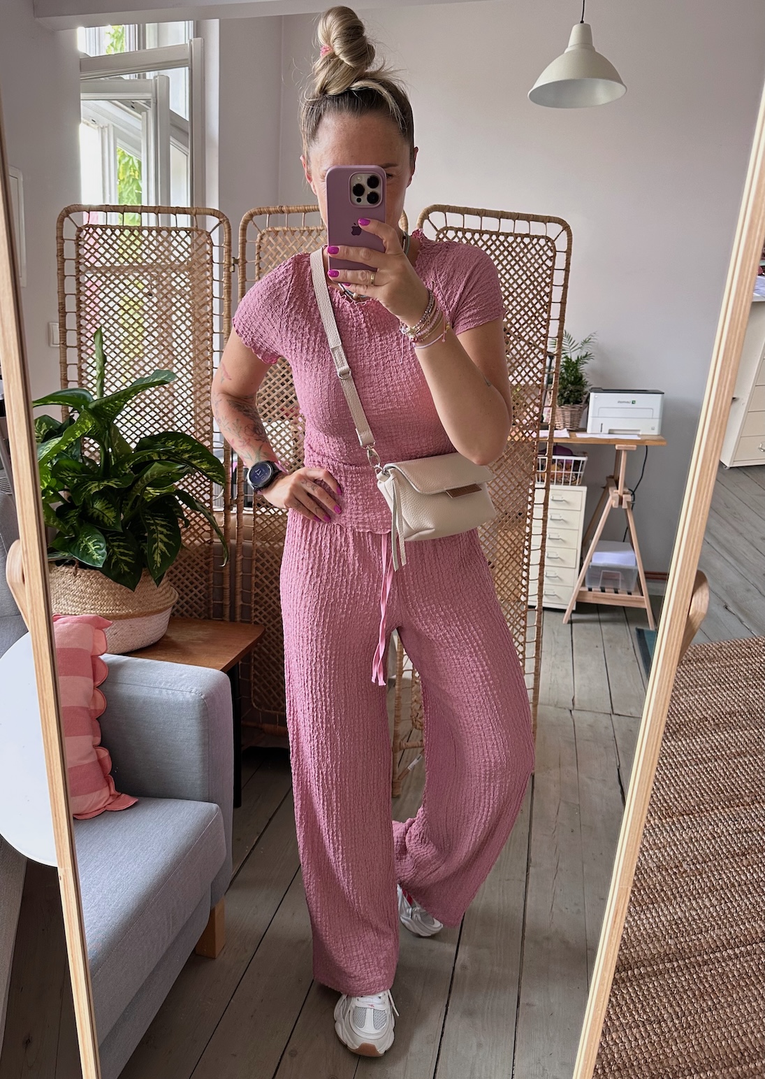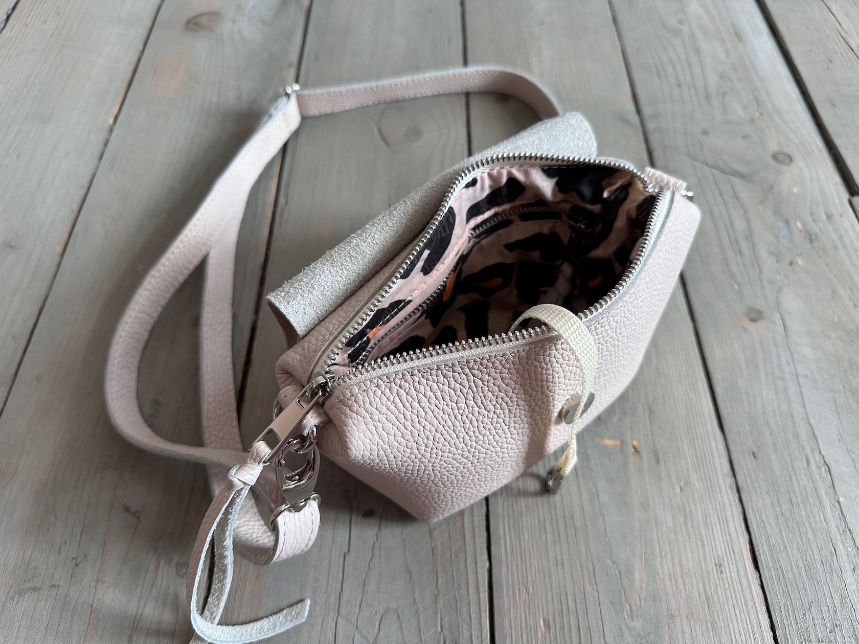 Wewnątrz kieszonka na zamek oraz smyczka z karabińczykiem.