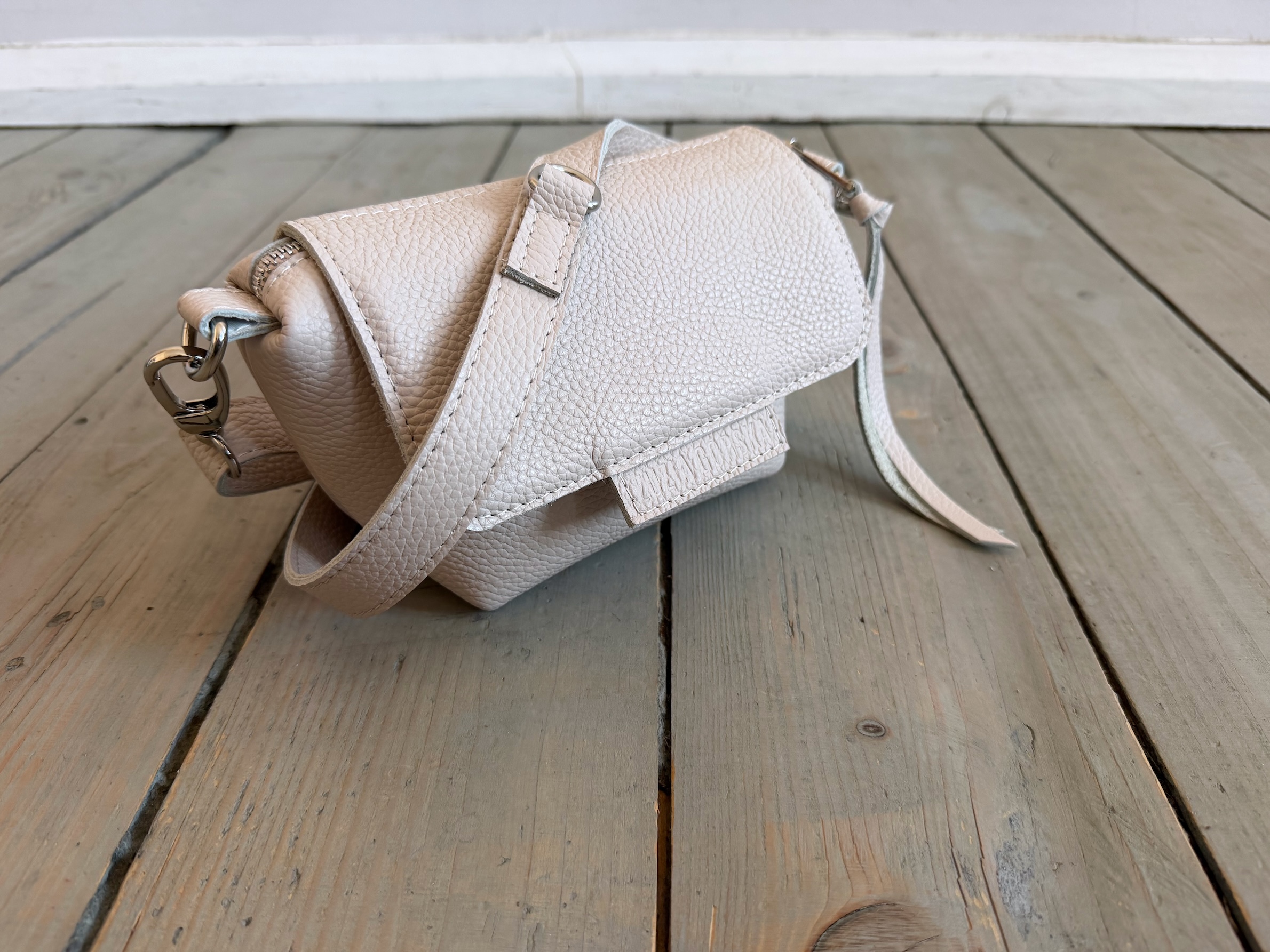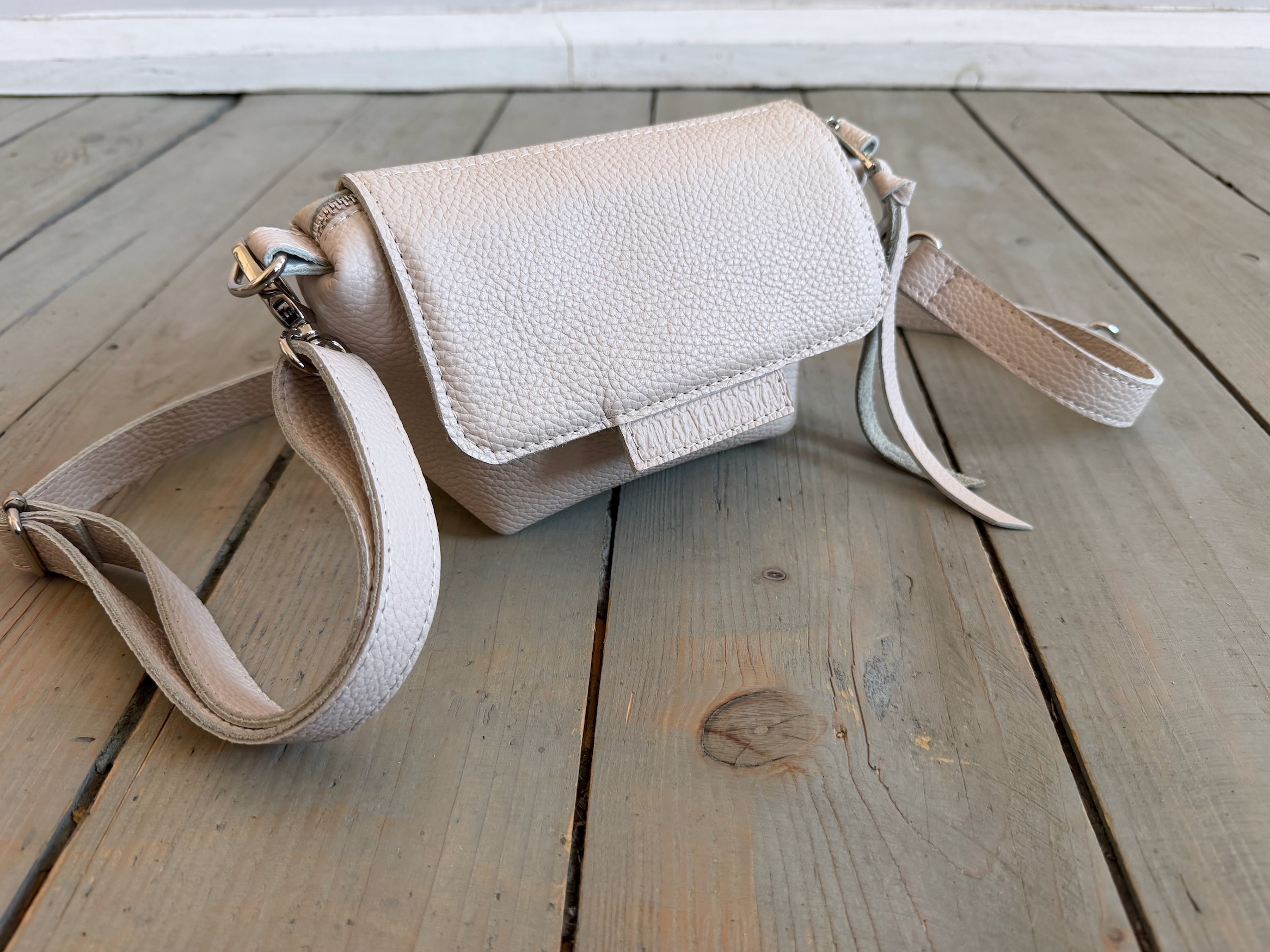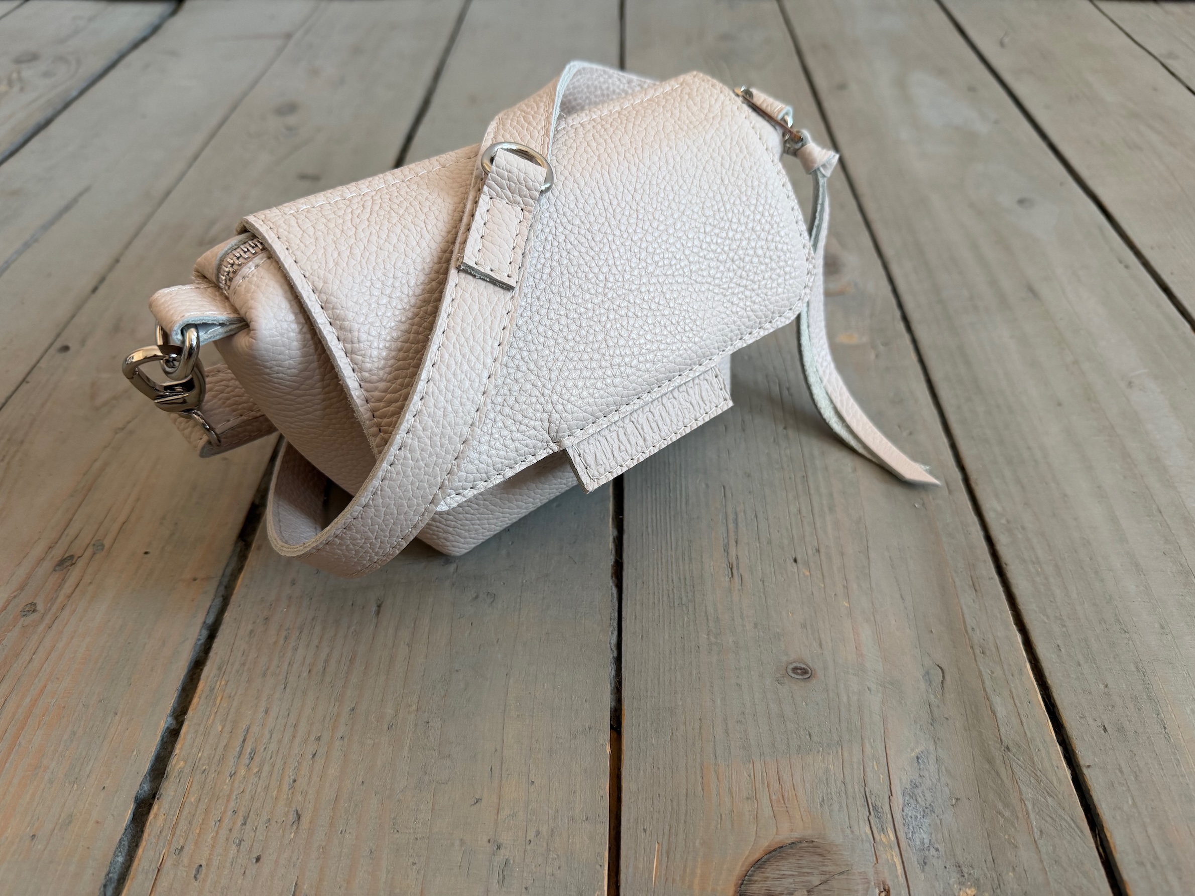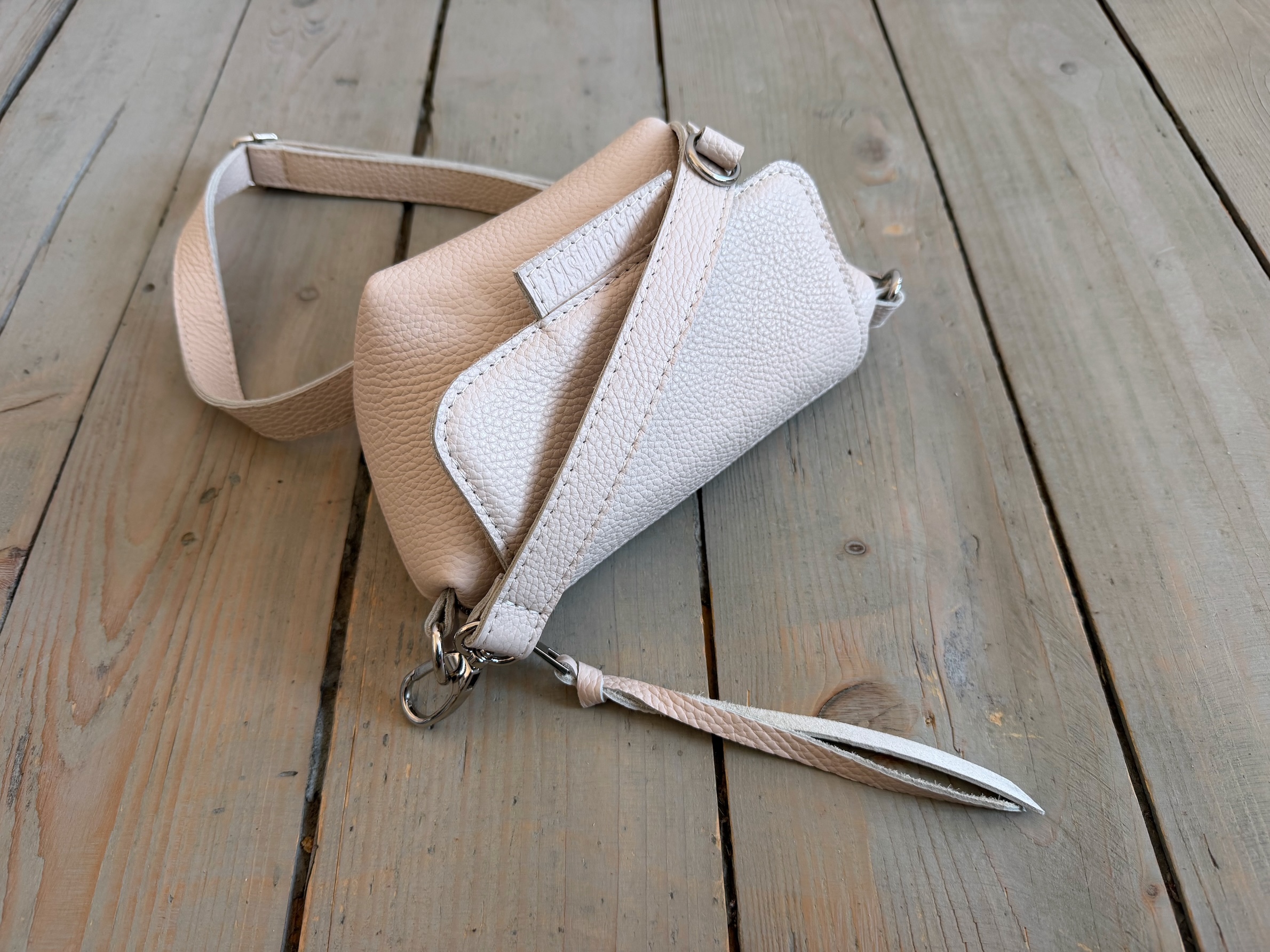 Uszyta ze skóry naturalnej licowej + bawełnianej podszewki.