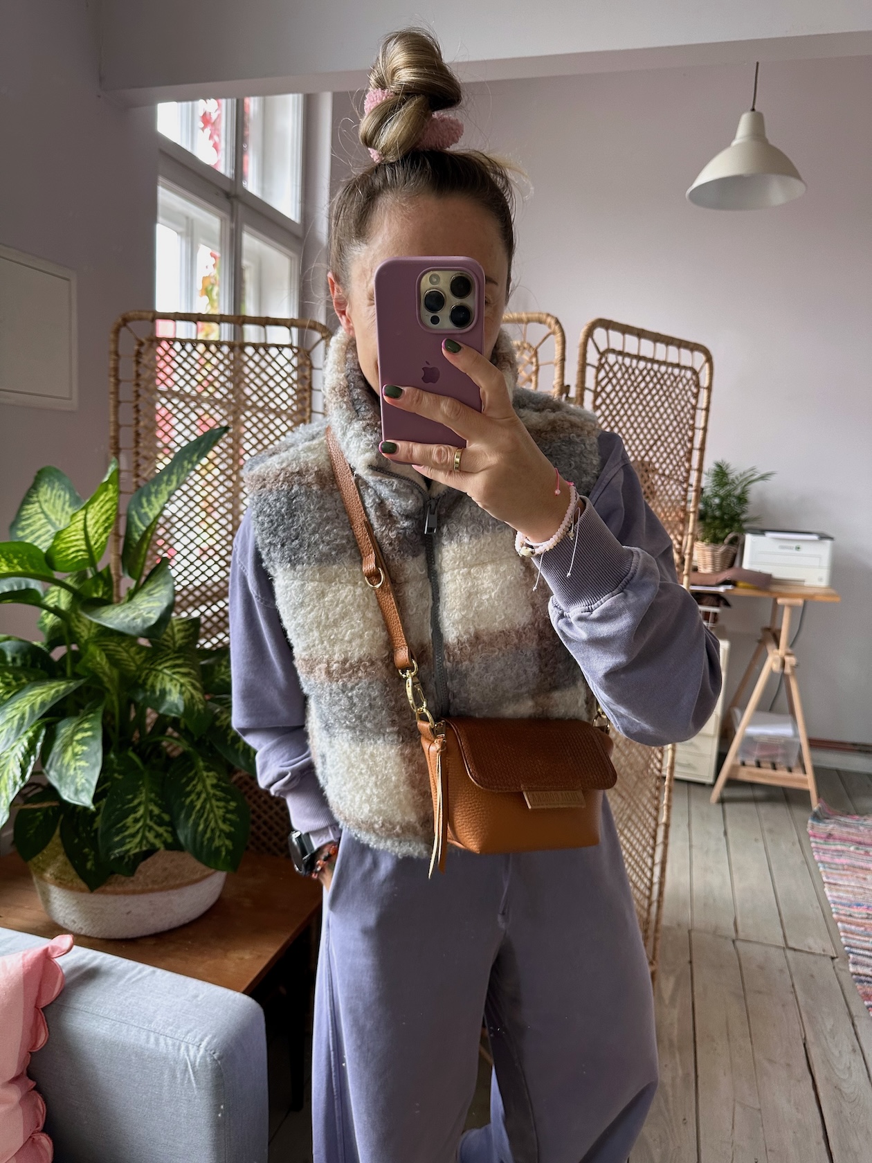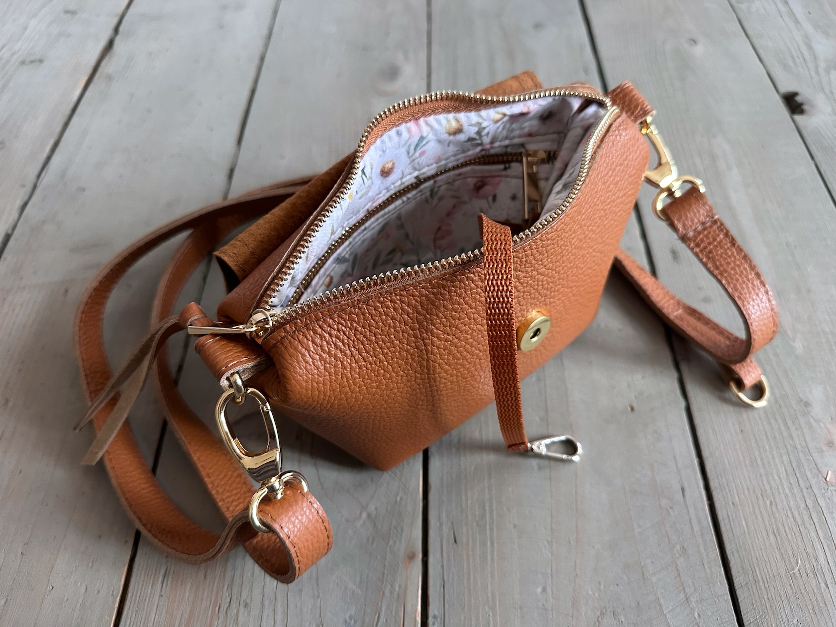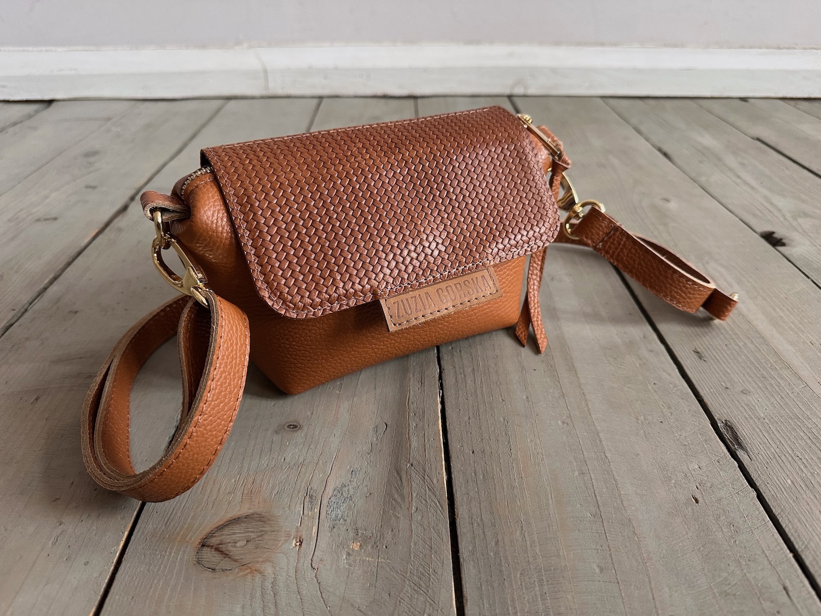 Uszyta ze skóry naturalnej licowej + bawełnianej podszewki.