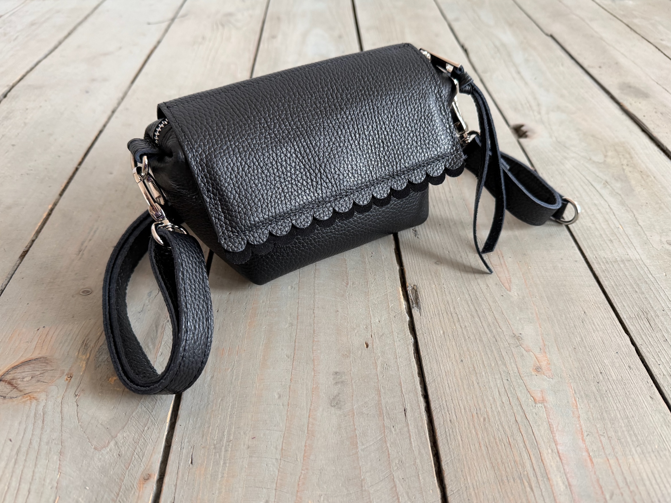 Mini Lola Two Wavy Black + Black Suede
