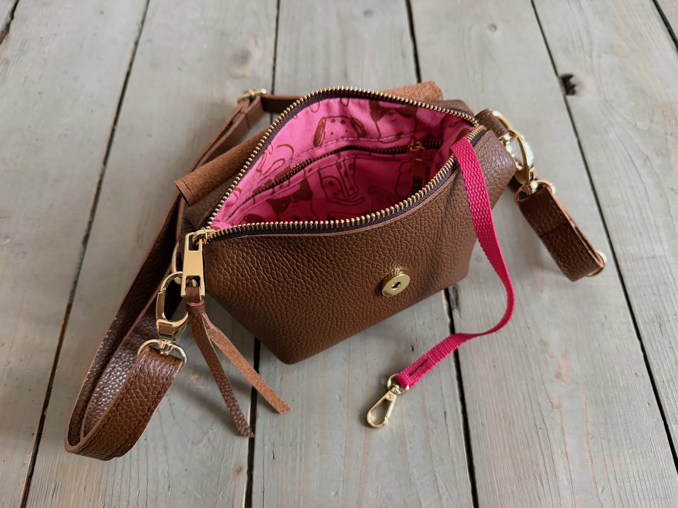 Wewnątrz kieszonka na zamek oraz smyczka z karabińczykiem.