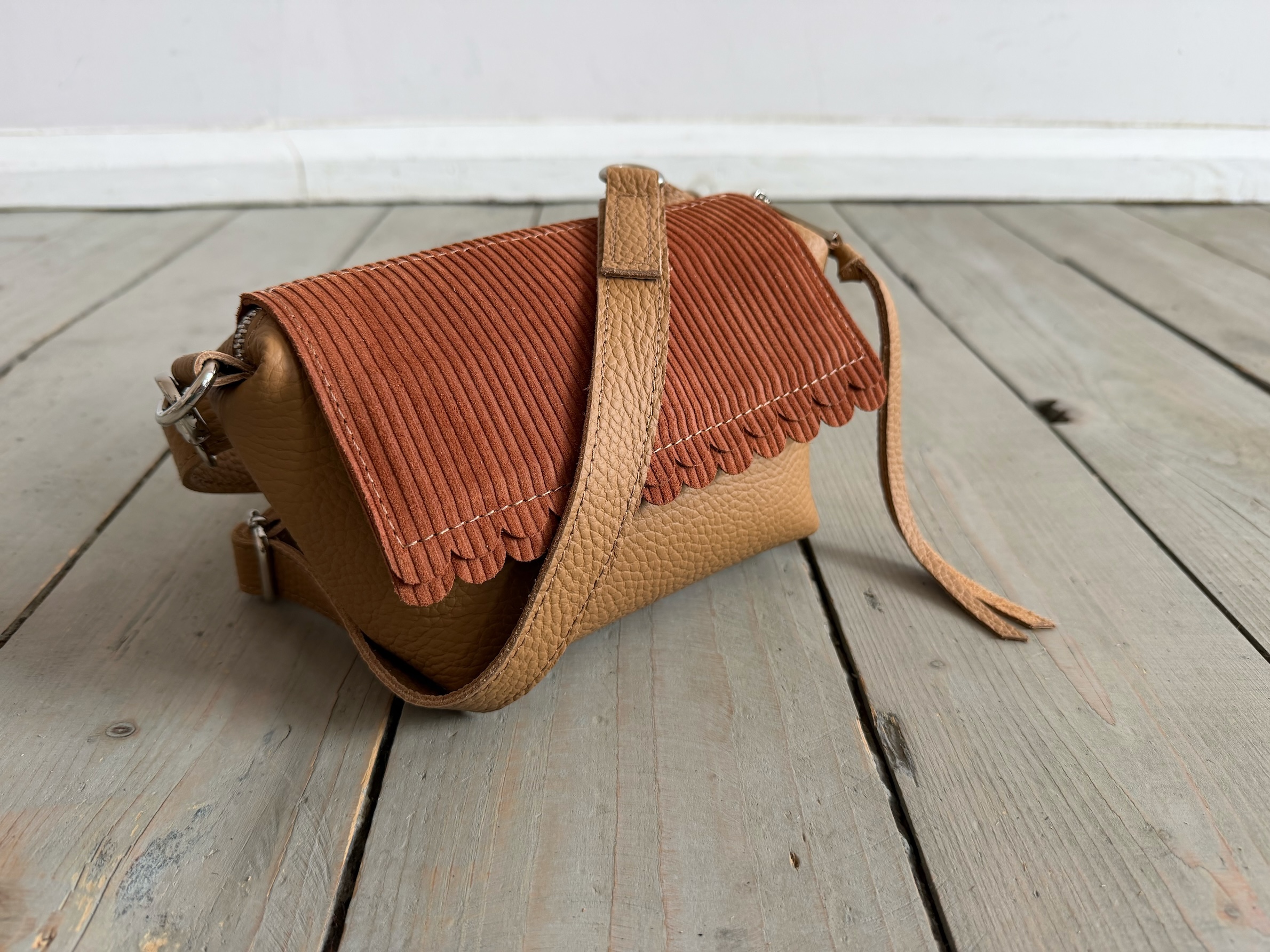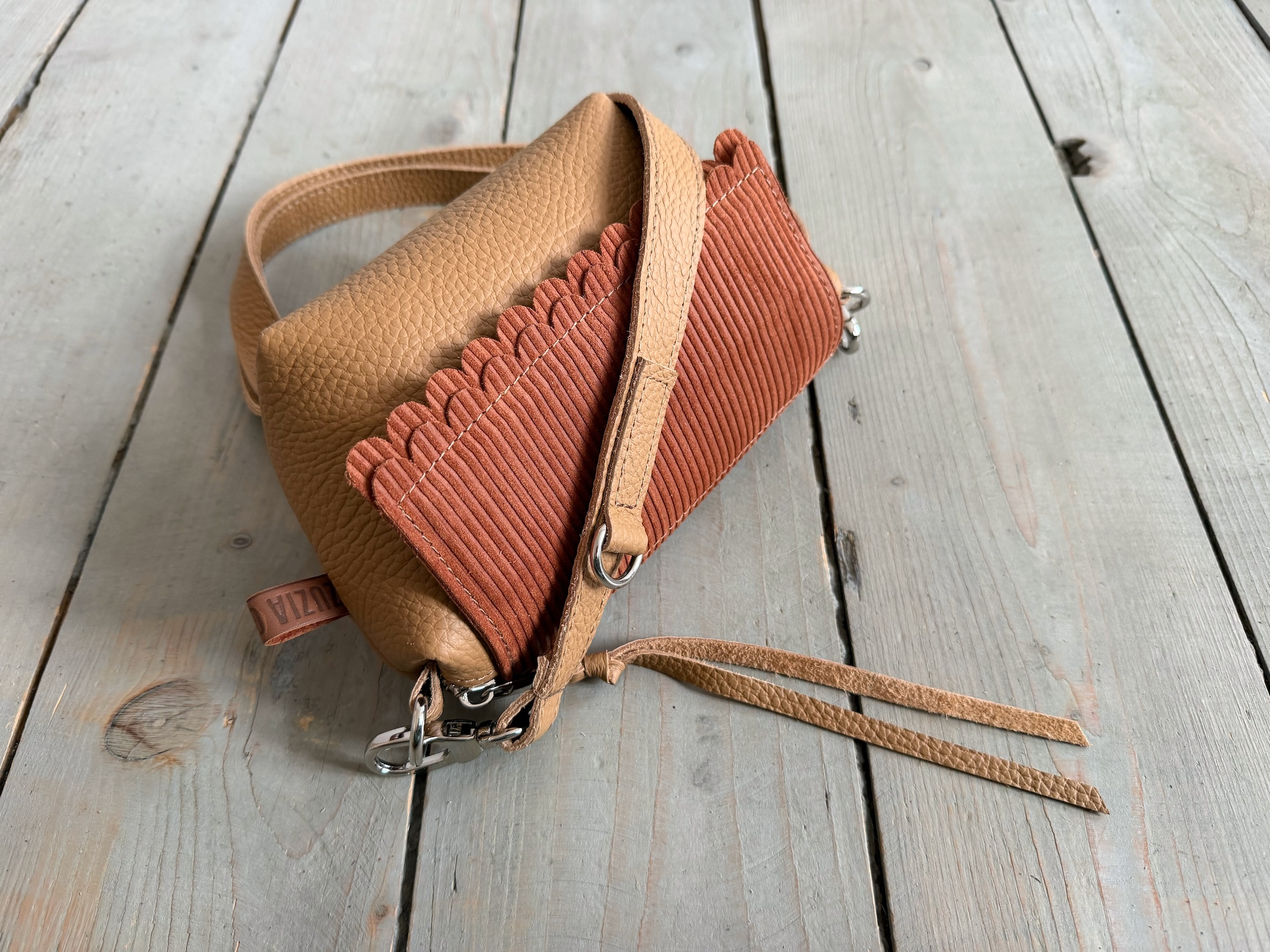 Mini Lola Two Wavy Coffee + Tobacco Corduroy Suede