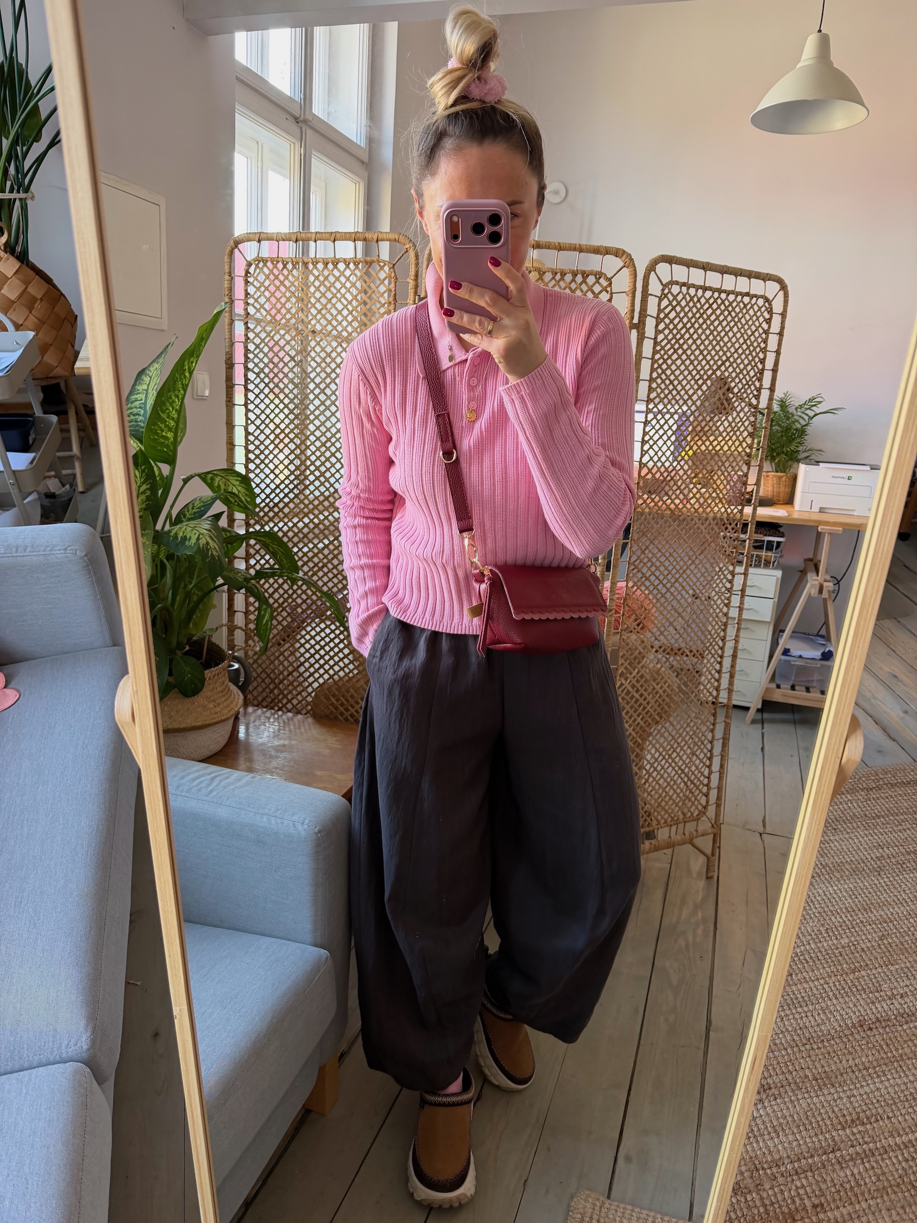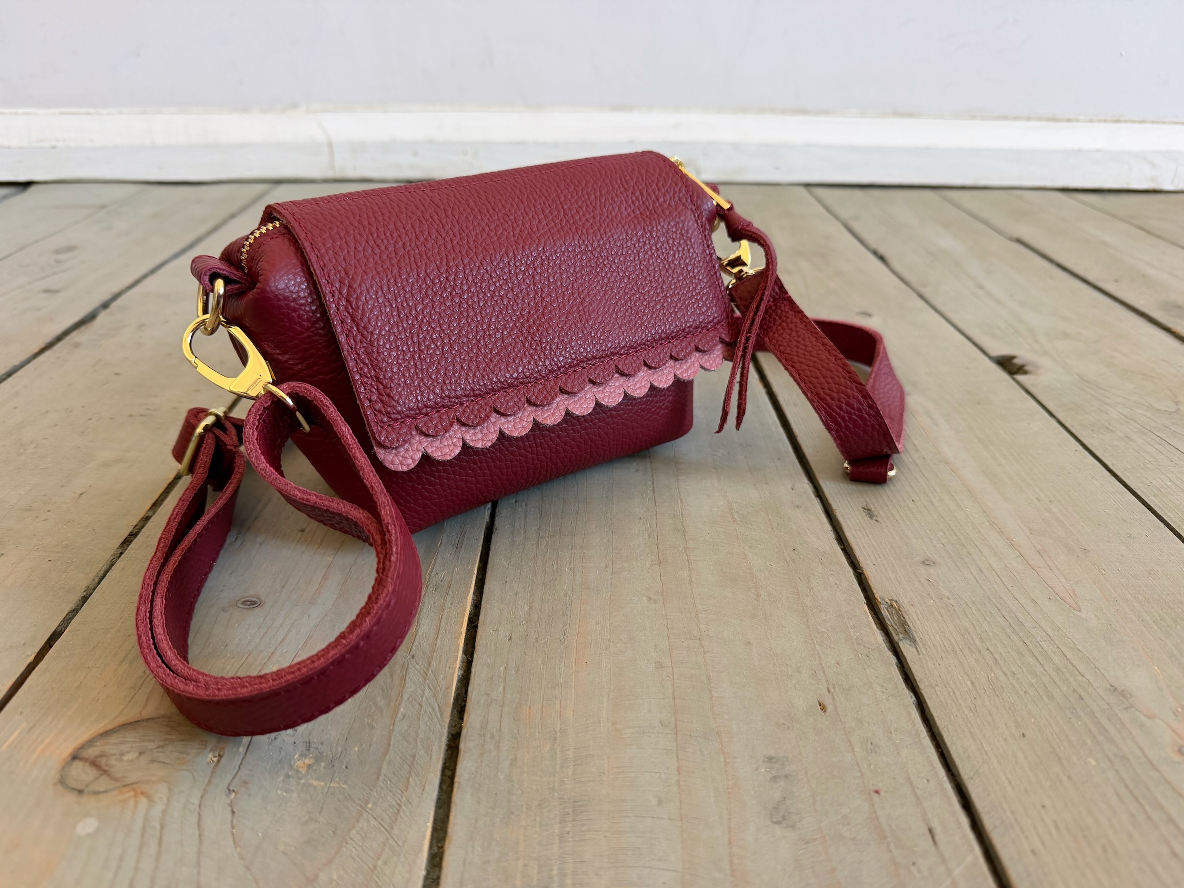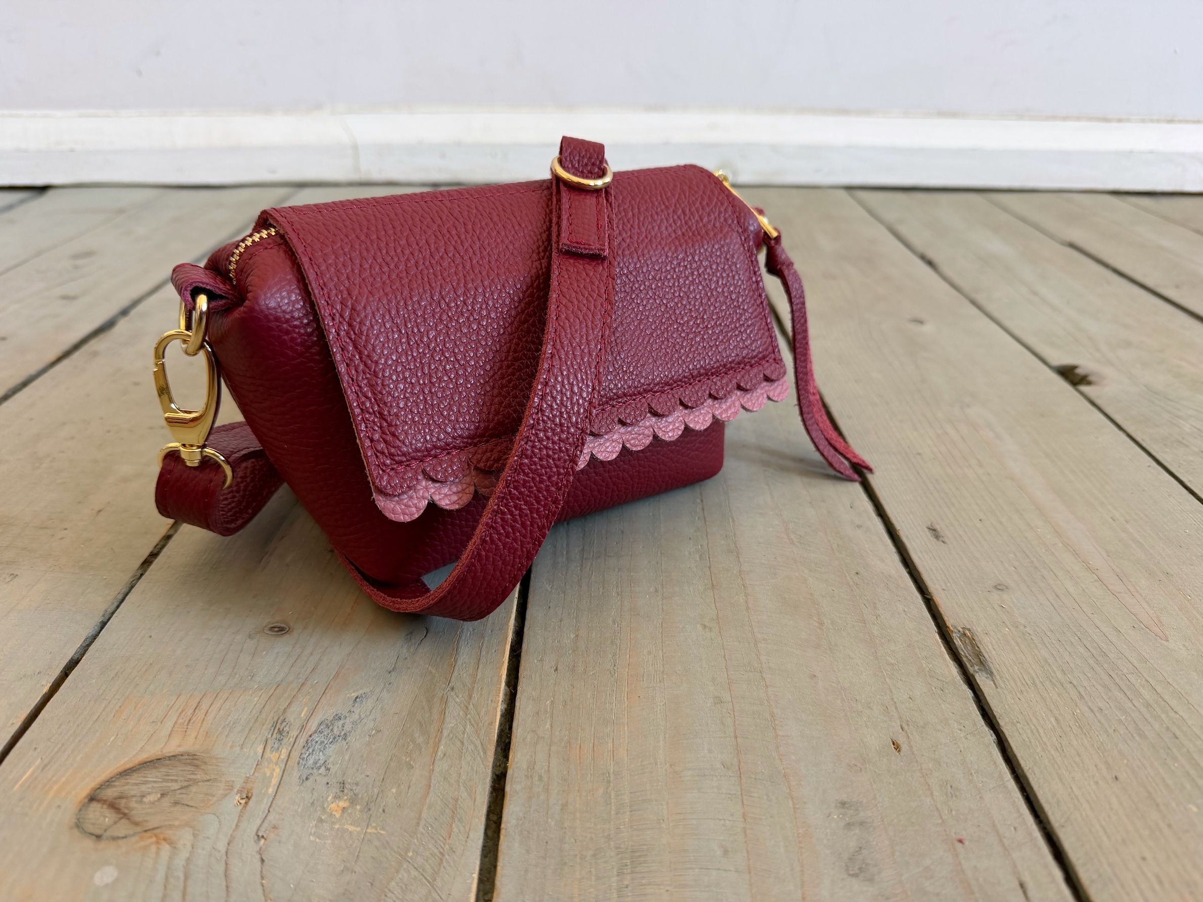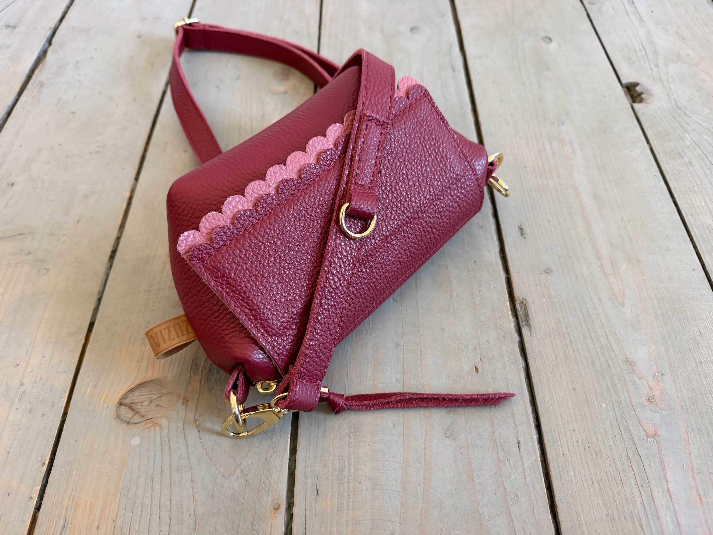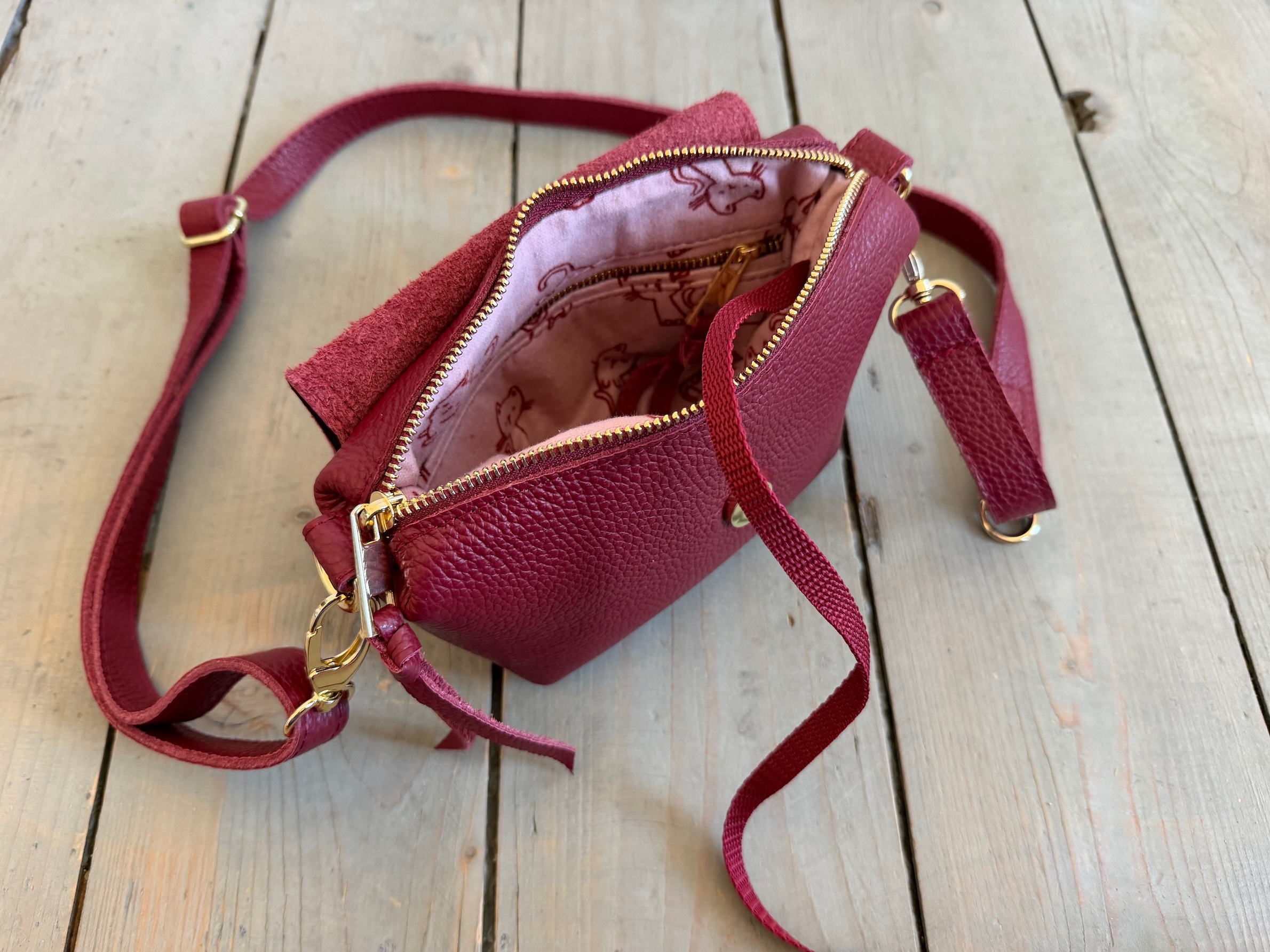 Uszyta ze skóry naturalnej licowej + bawełnianej podszewki.