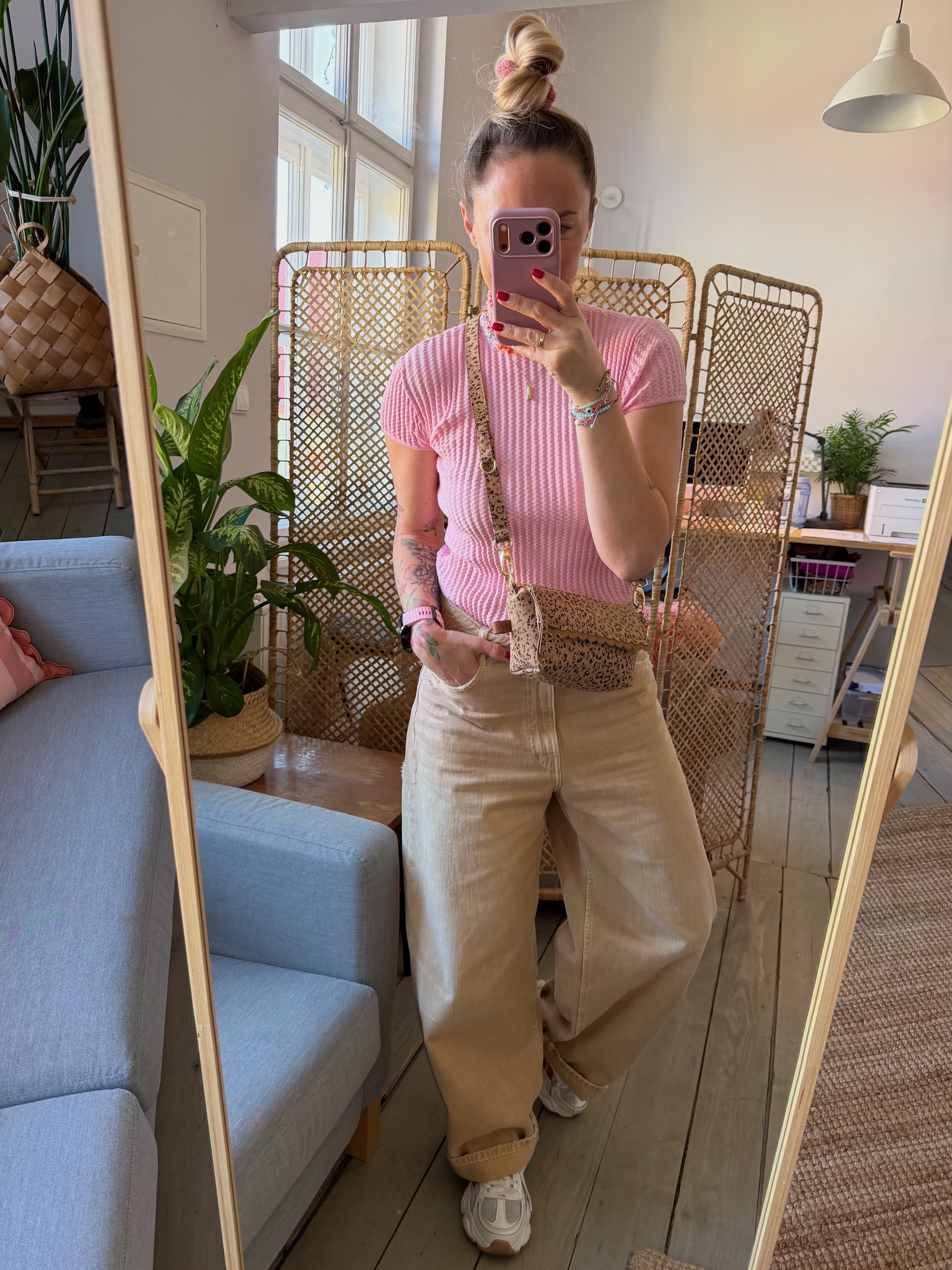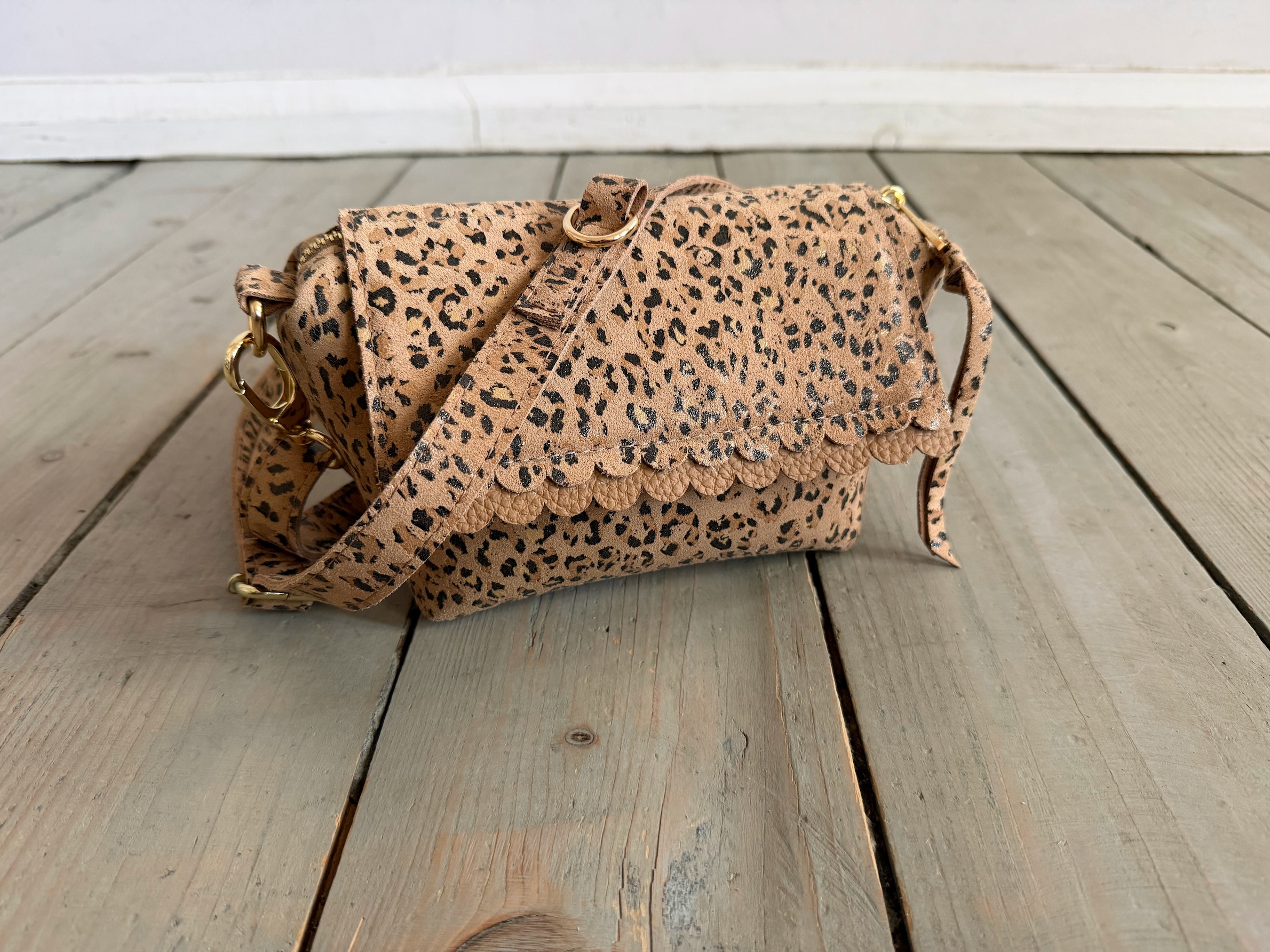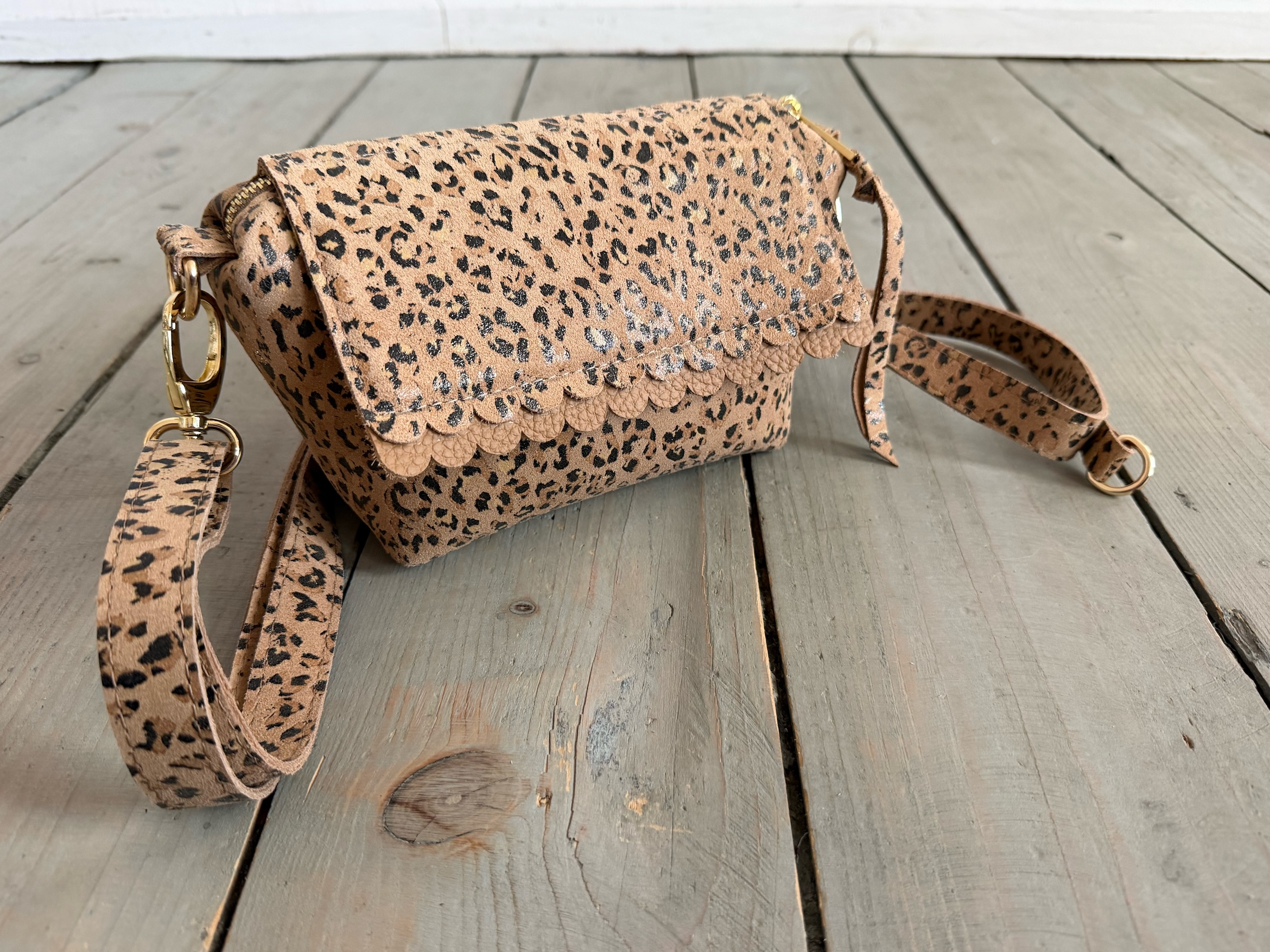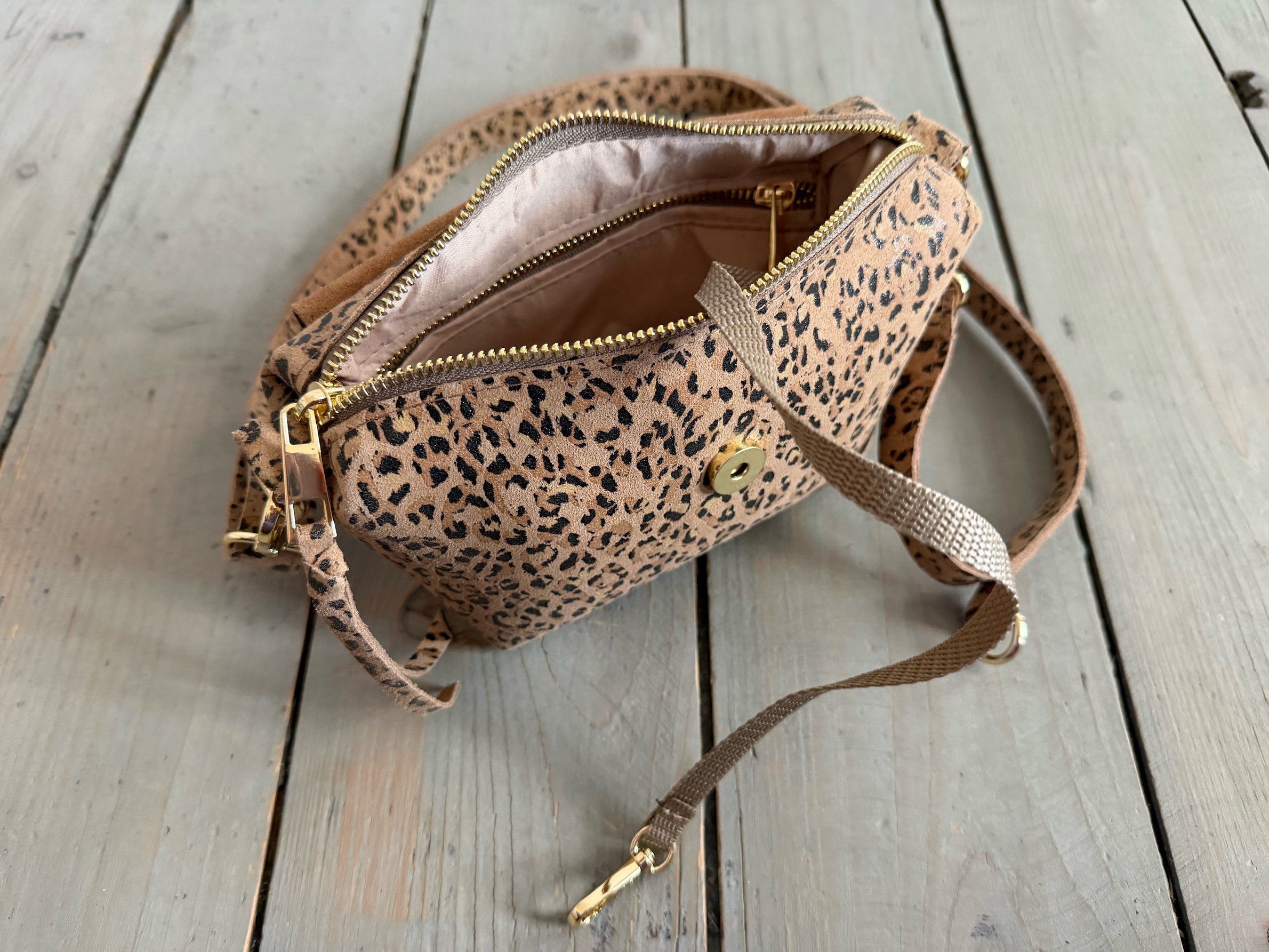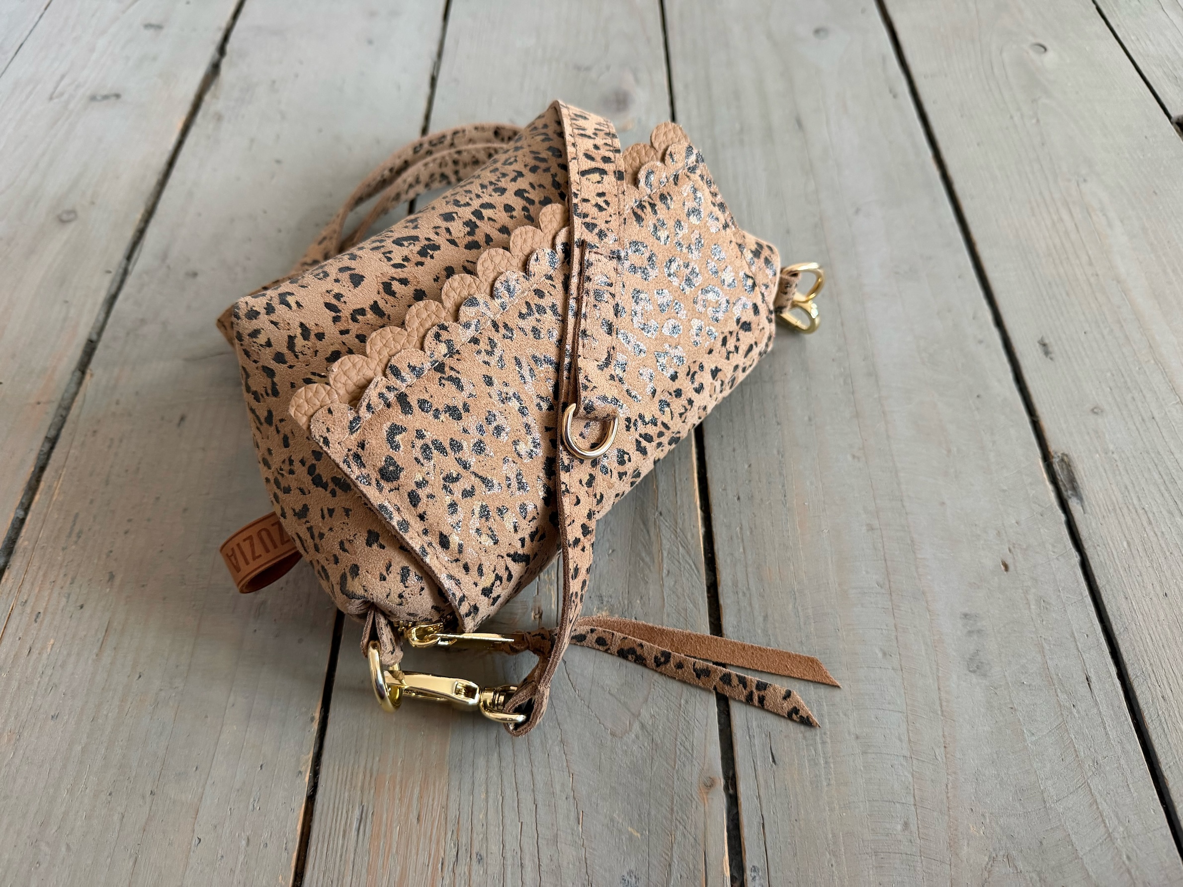 Uszyta ze skóry naturalnej nubukowej + bawełnianej podszewki.