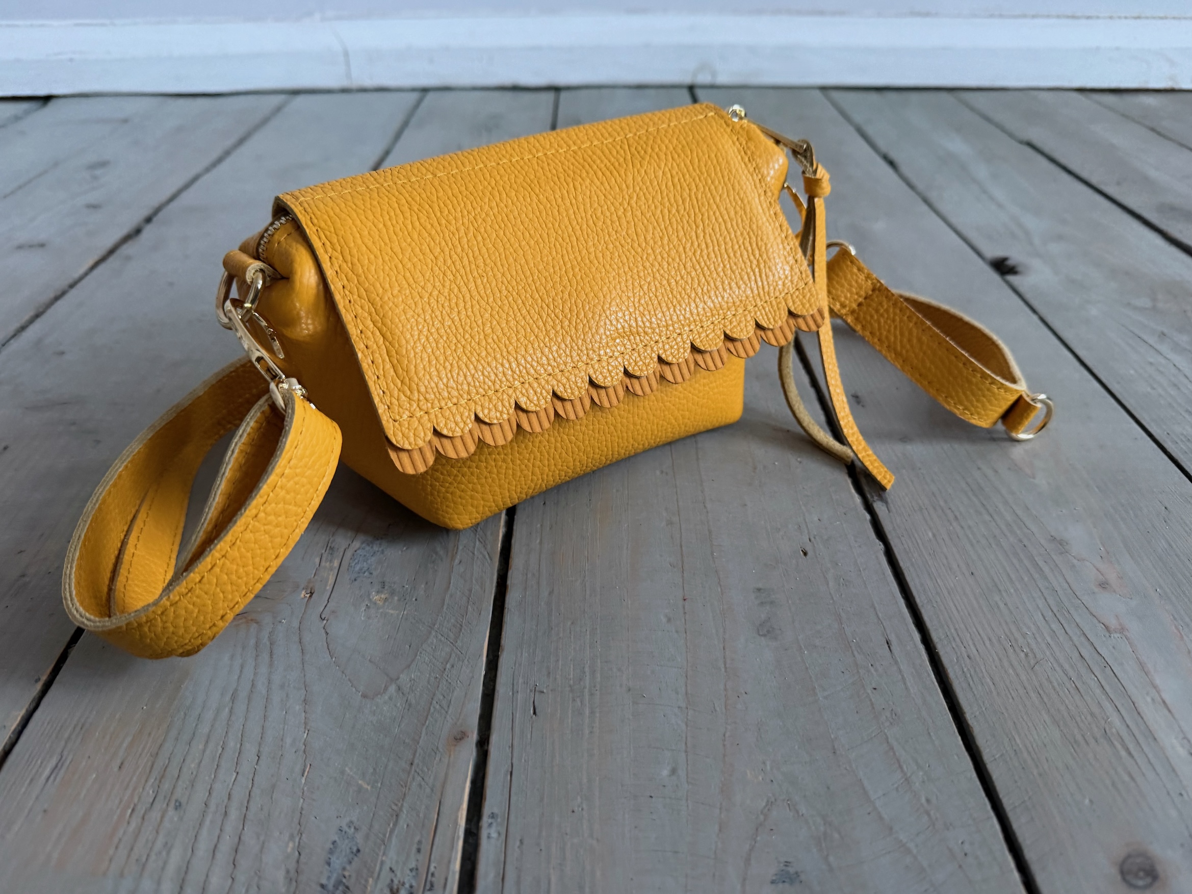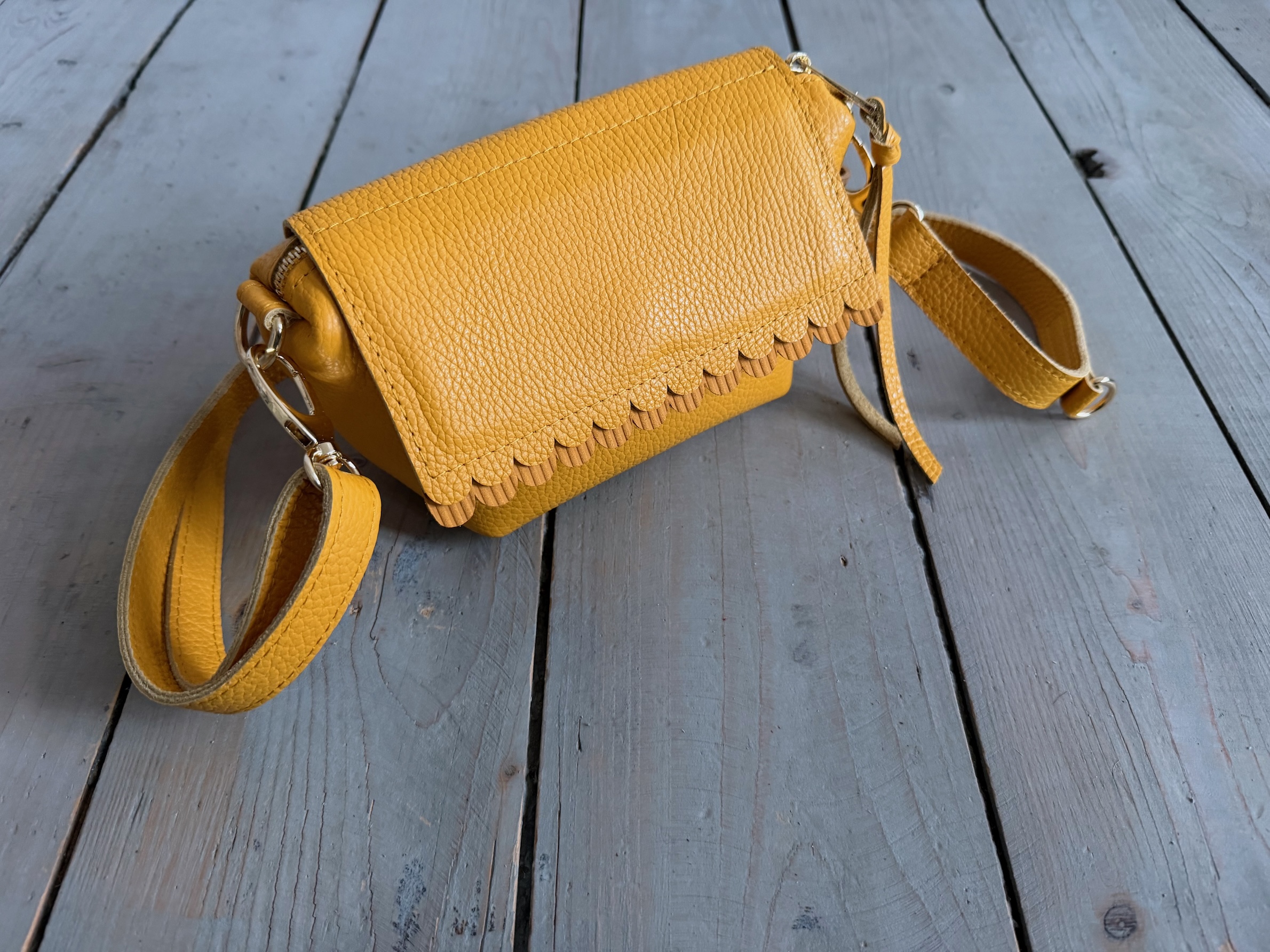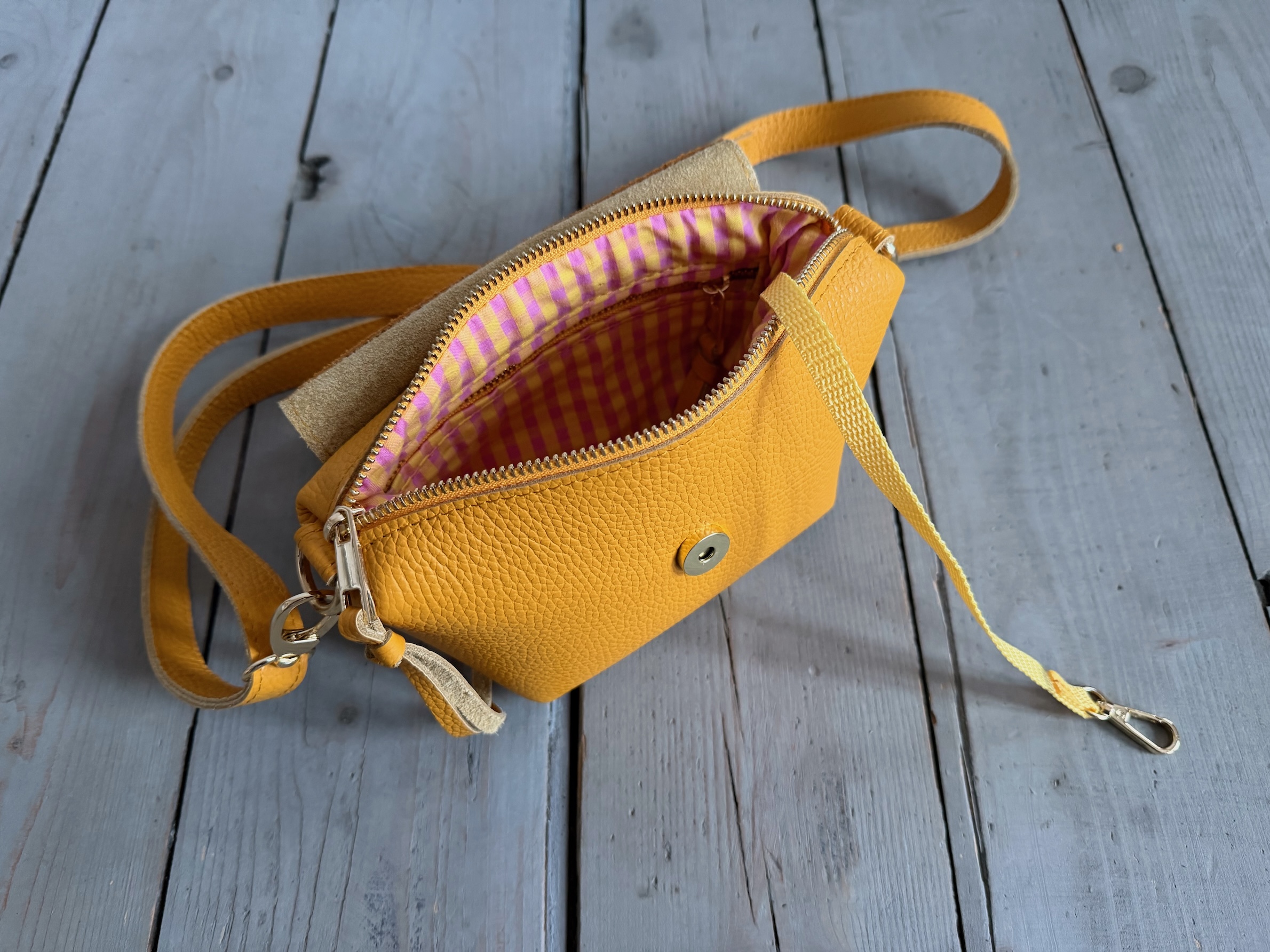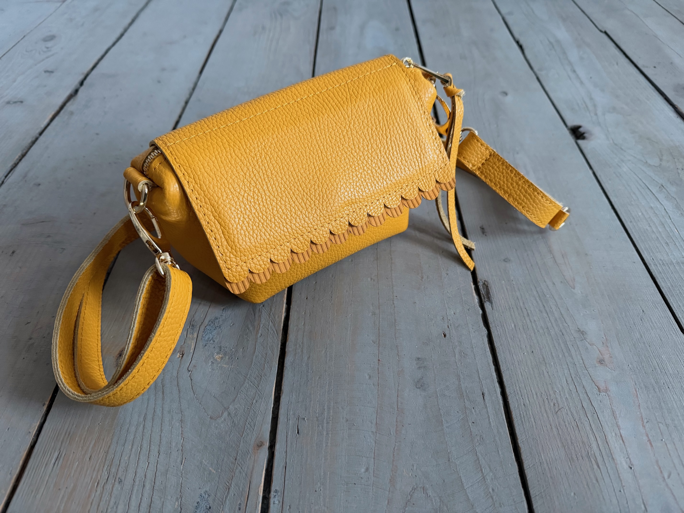 Uszyta ze skóry naturalnej licowej + bawełnianej podszewki.