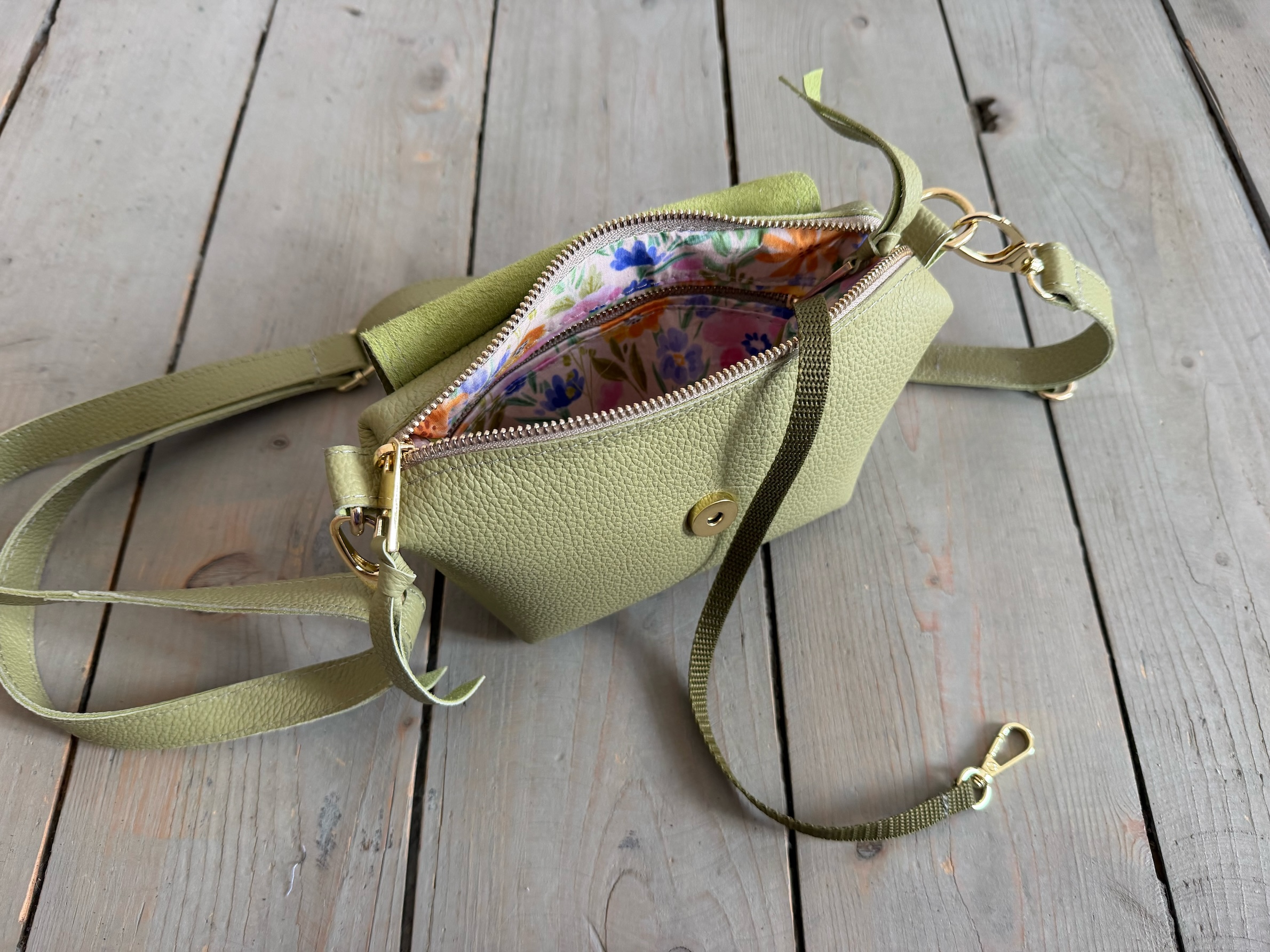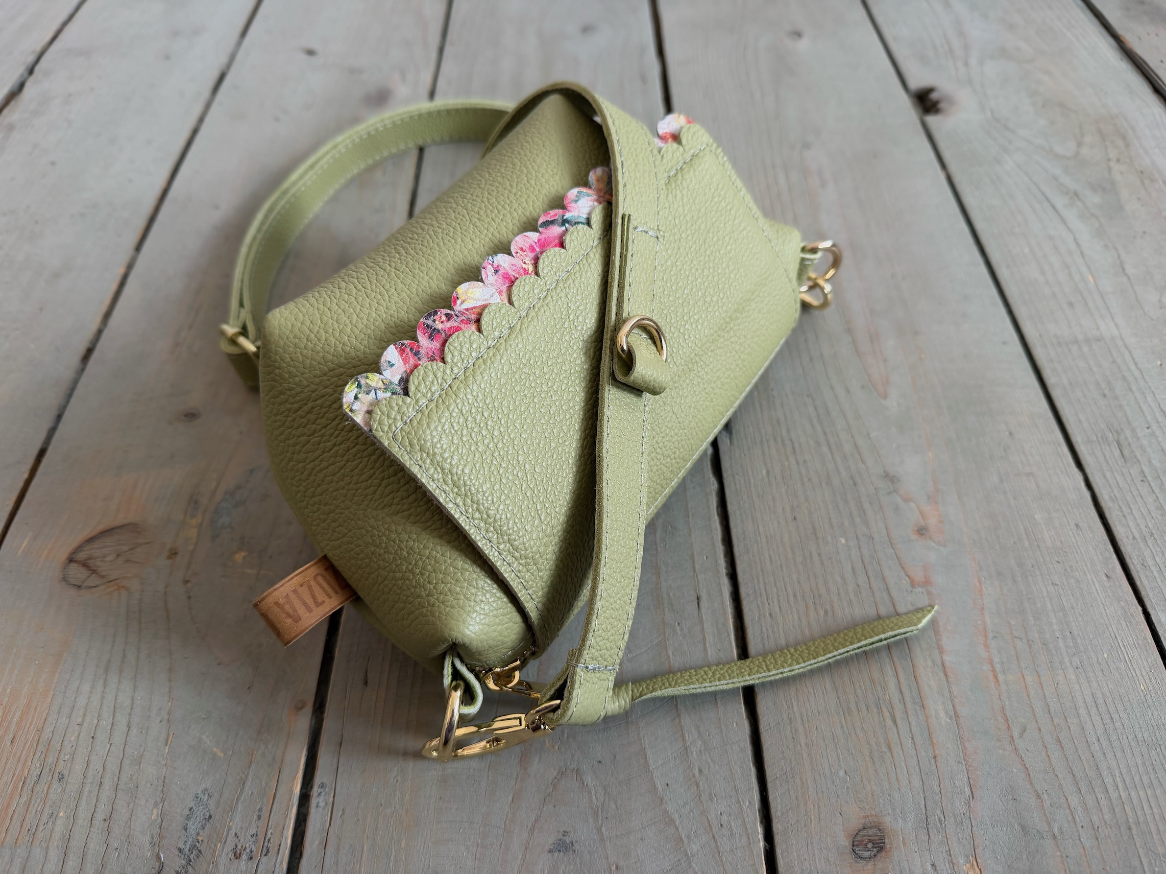 Uszyta ze skóry naturalnej licowej + bawełnianej podszewki.