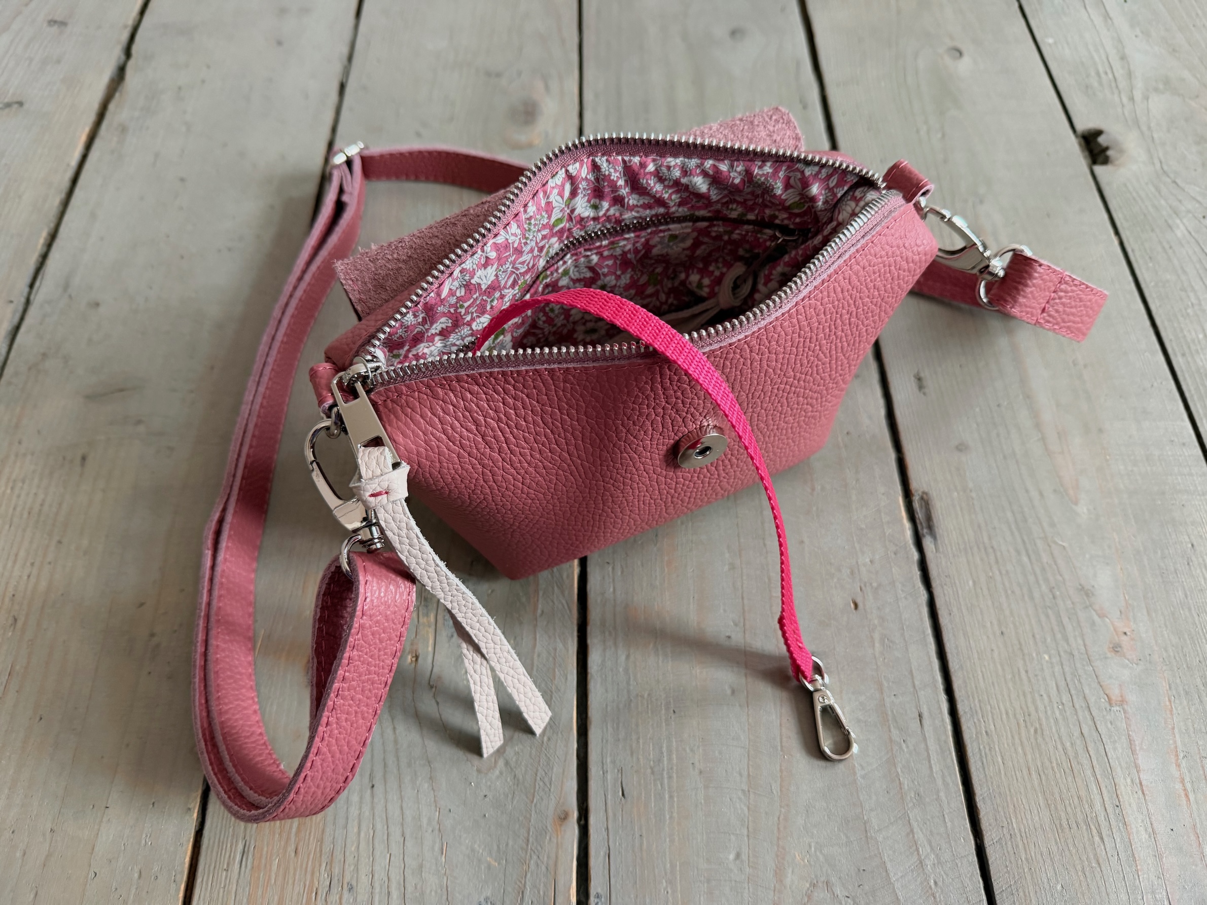 Uszyta ze skóry naturalnej licowej + bawełnianej podszewki.