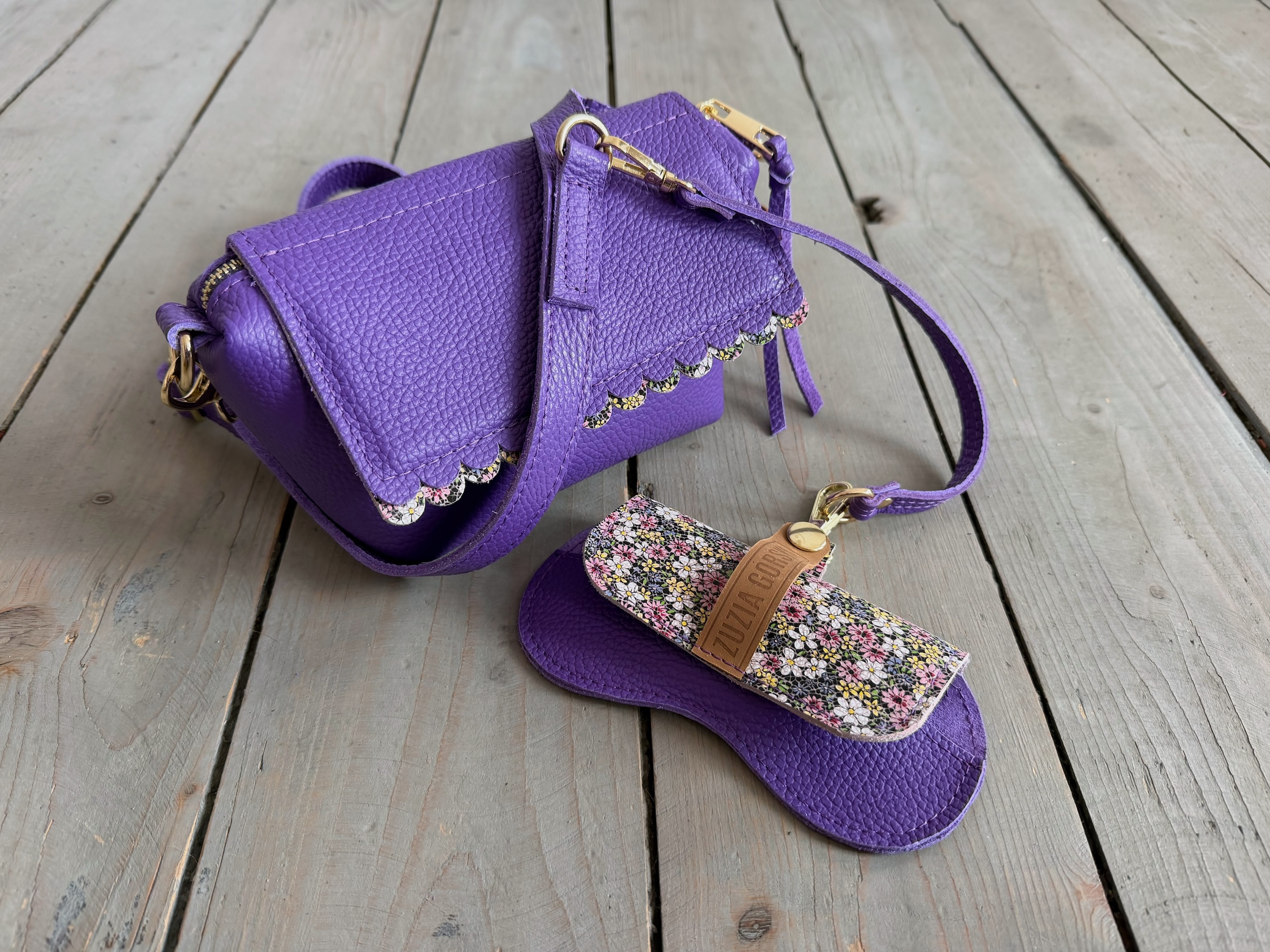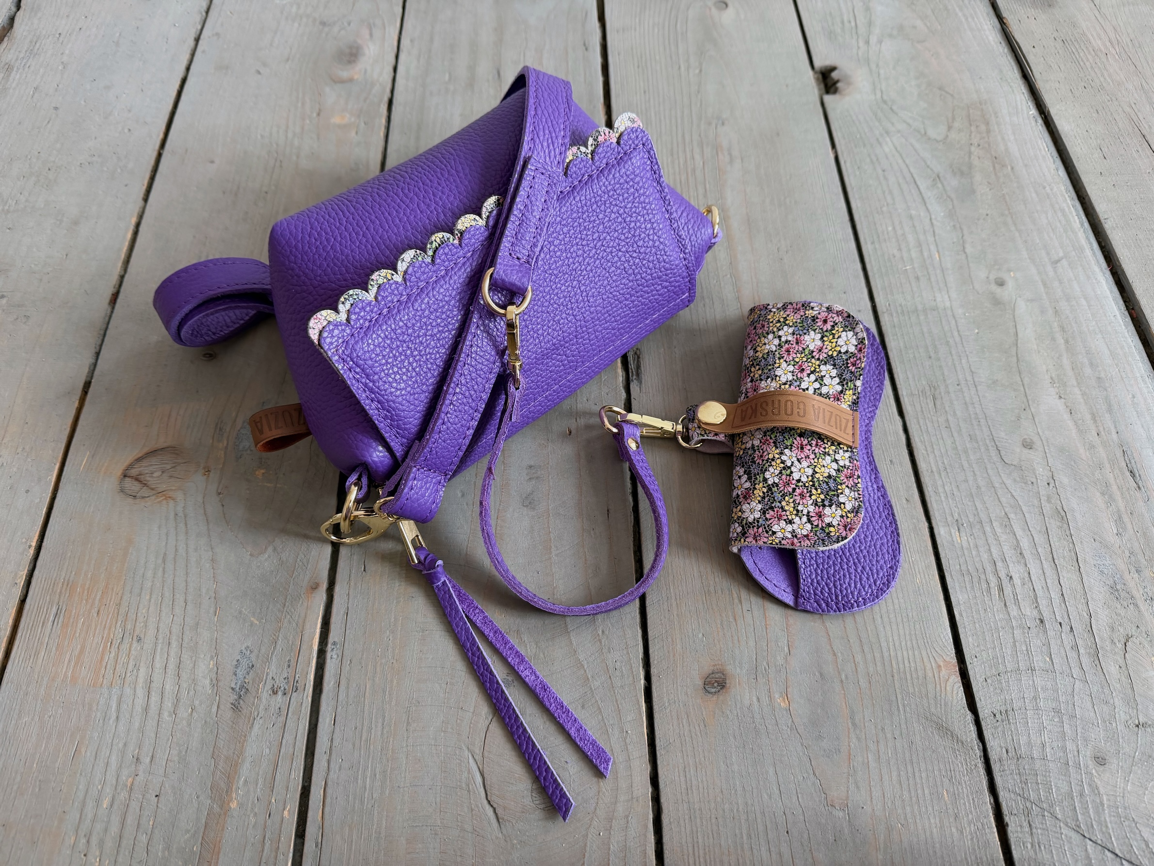 Uszyta ze skóry naturalnej licowej + bawełnianej podszewki.