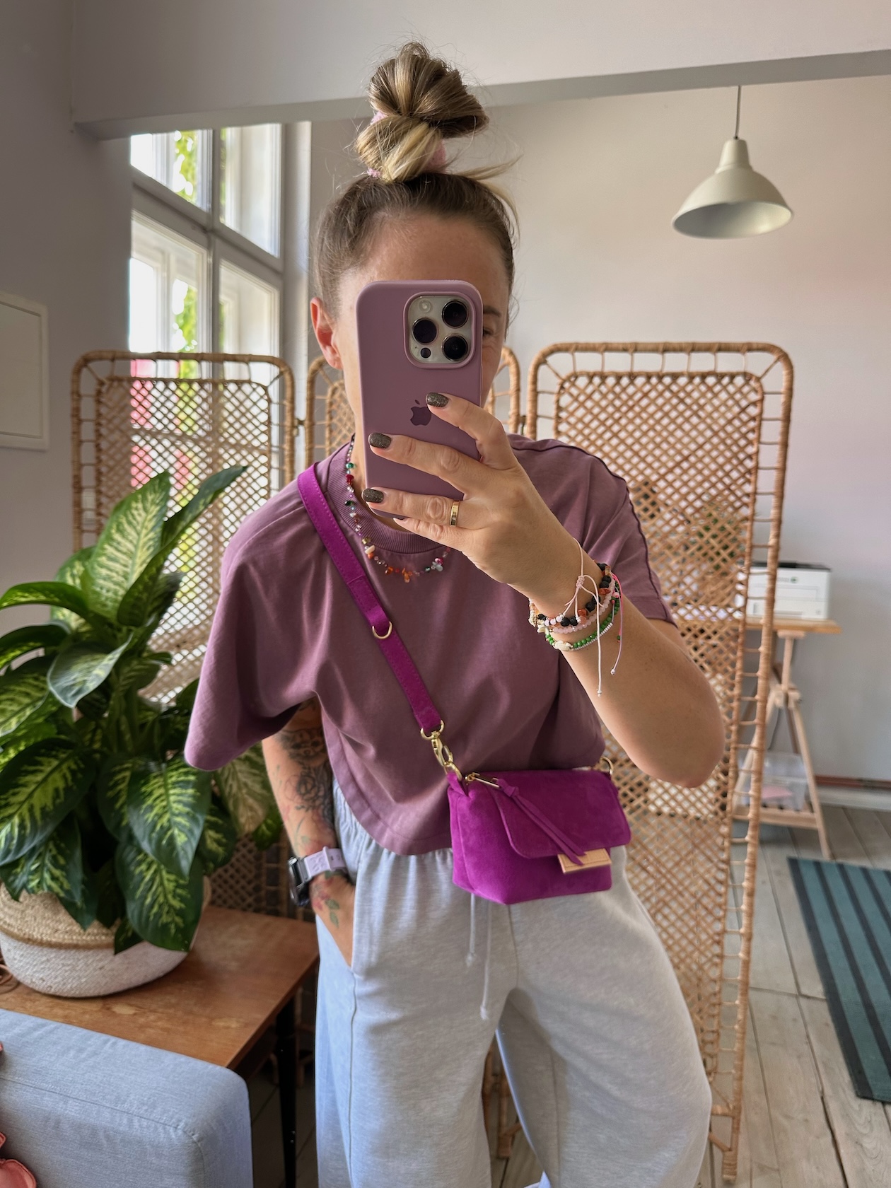 Uszyta ze skóry naturalnej licowej + bawełnianej podszewki.