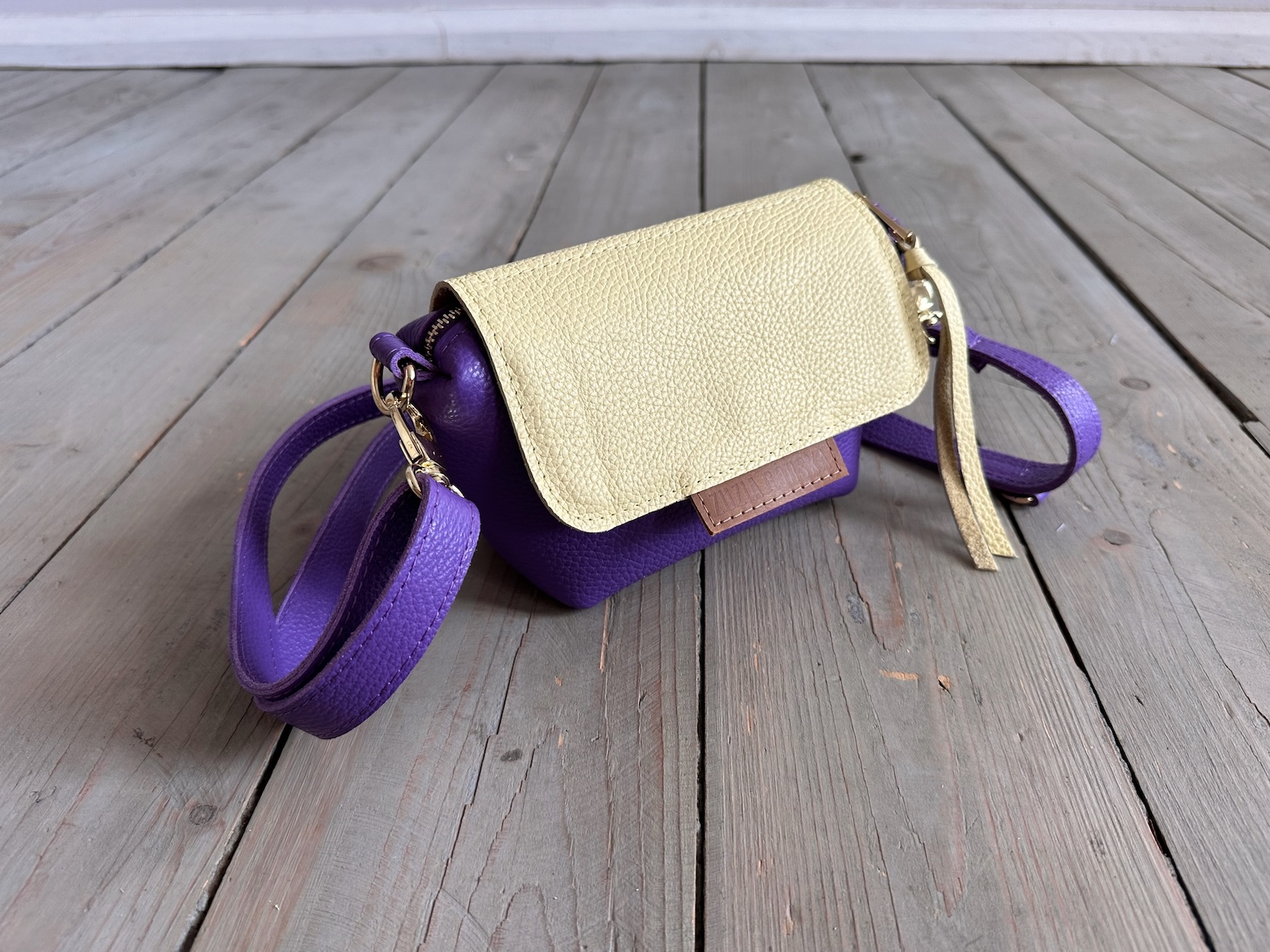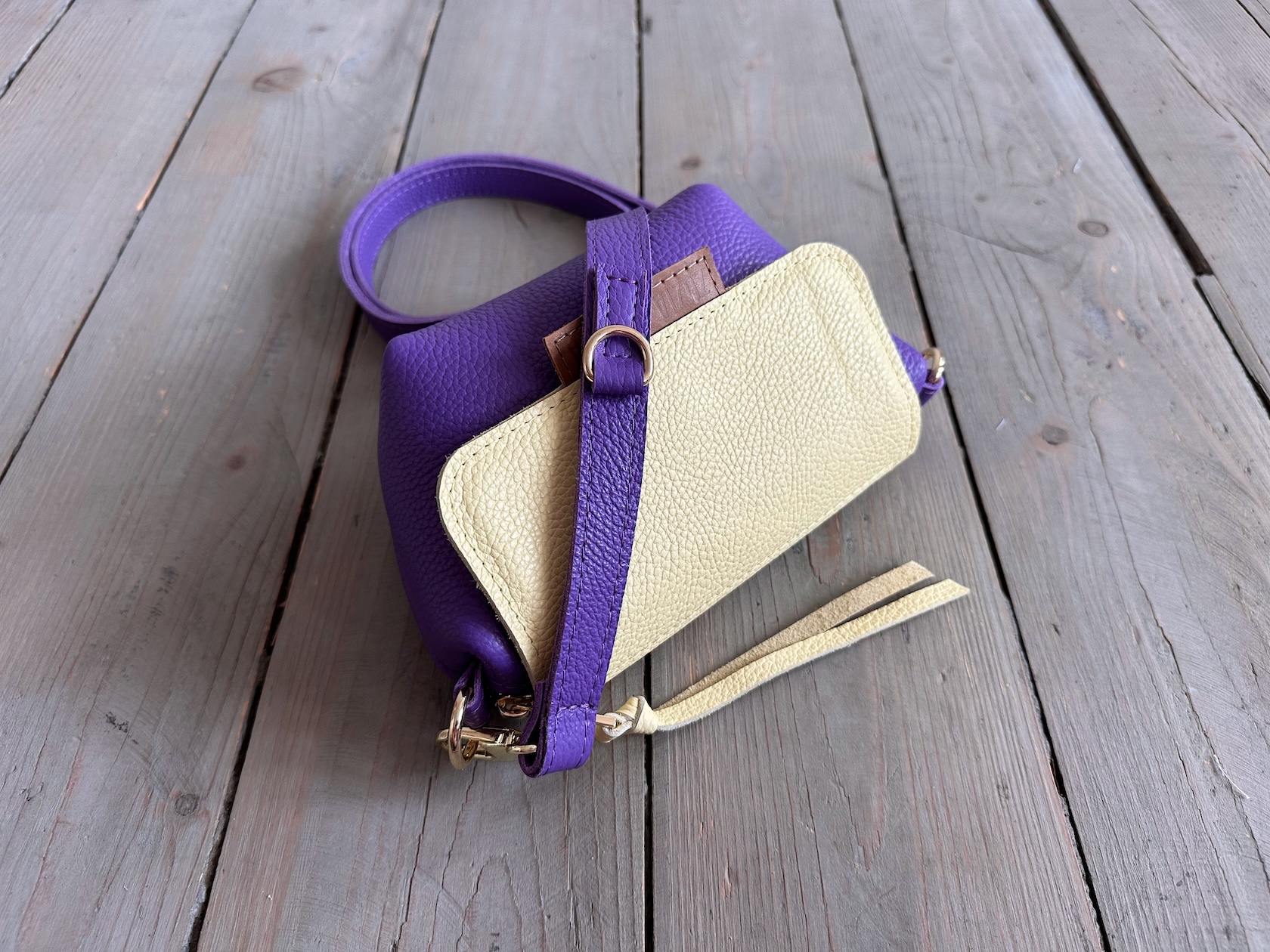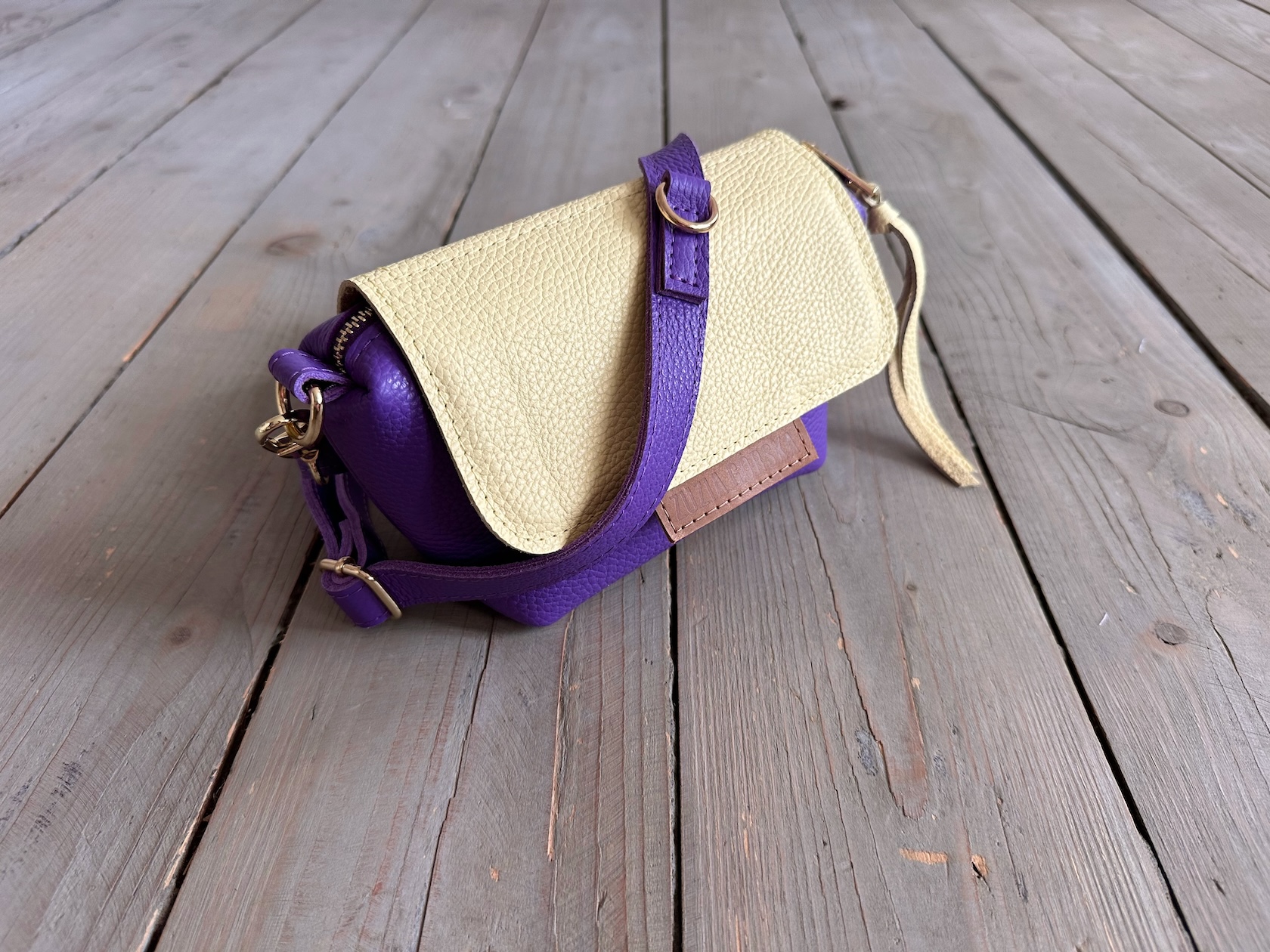 Uszyta ze skóry naturalnej licowej + bawełnianej podszewki.