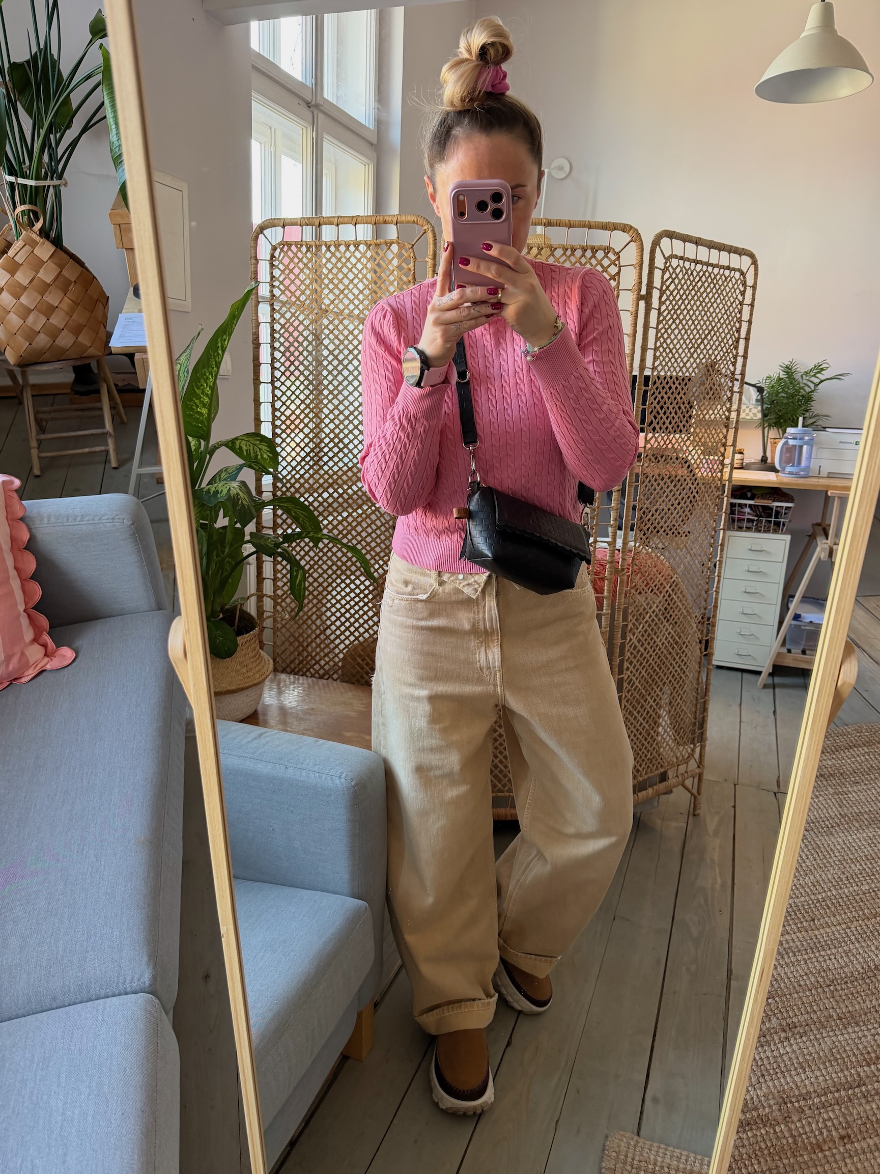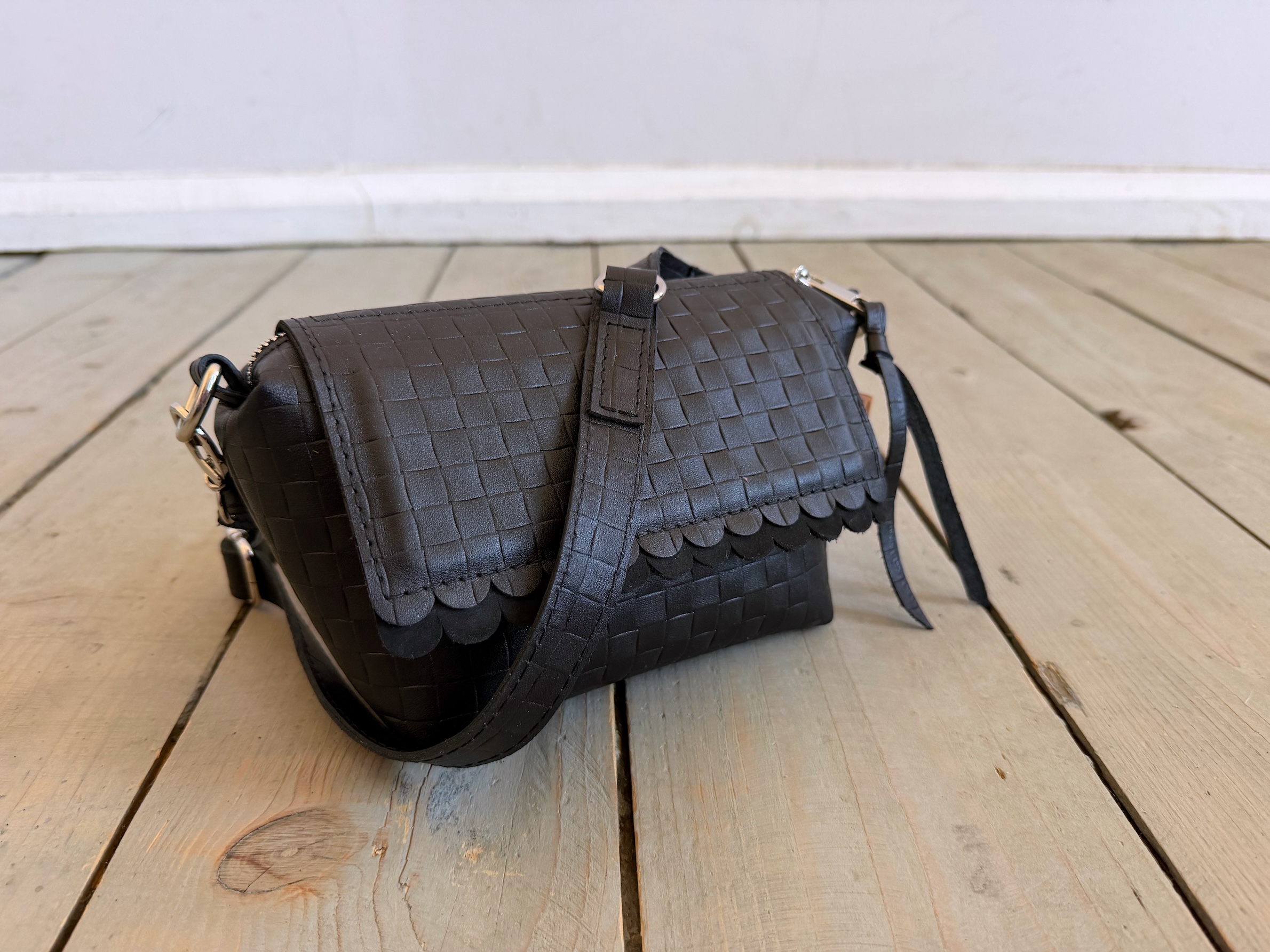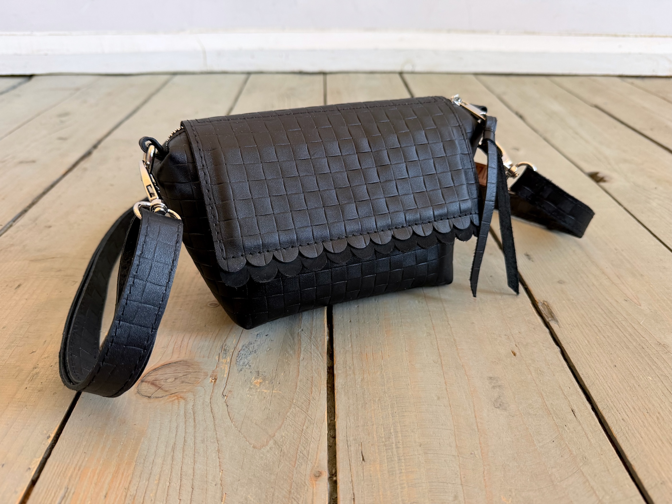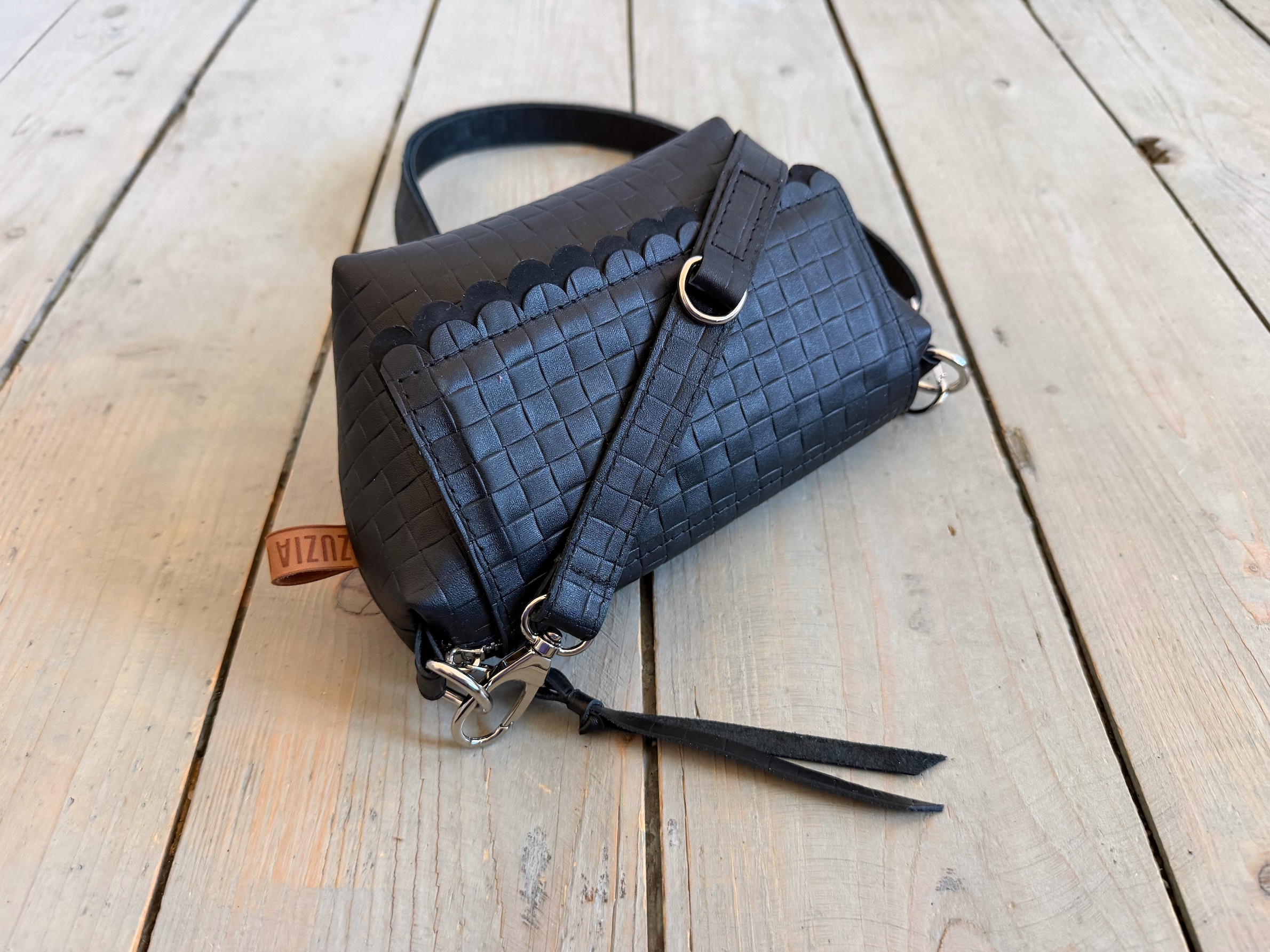 Uszyta ze skóry naturalnej licowej + bawełnianej podszewki.