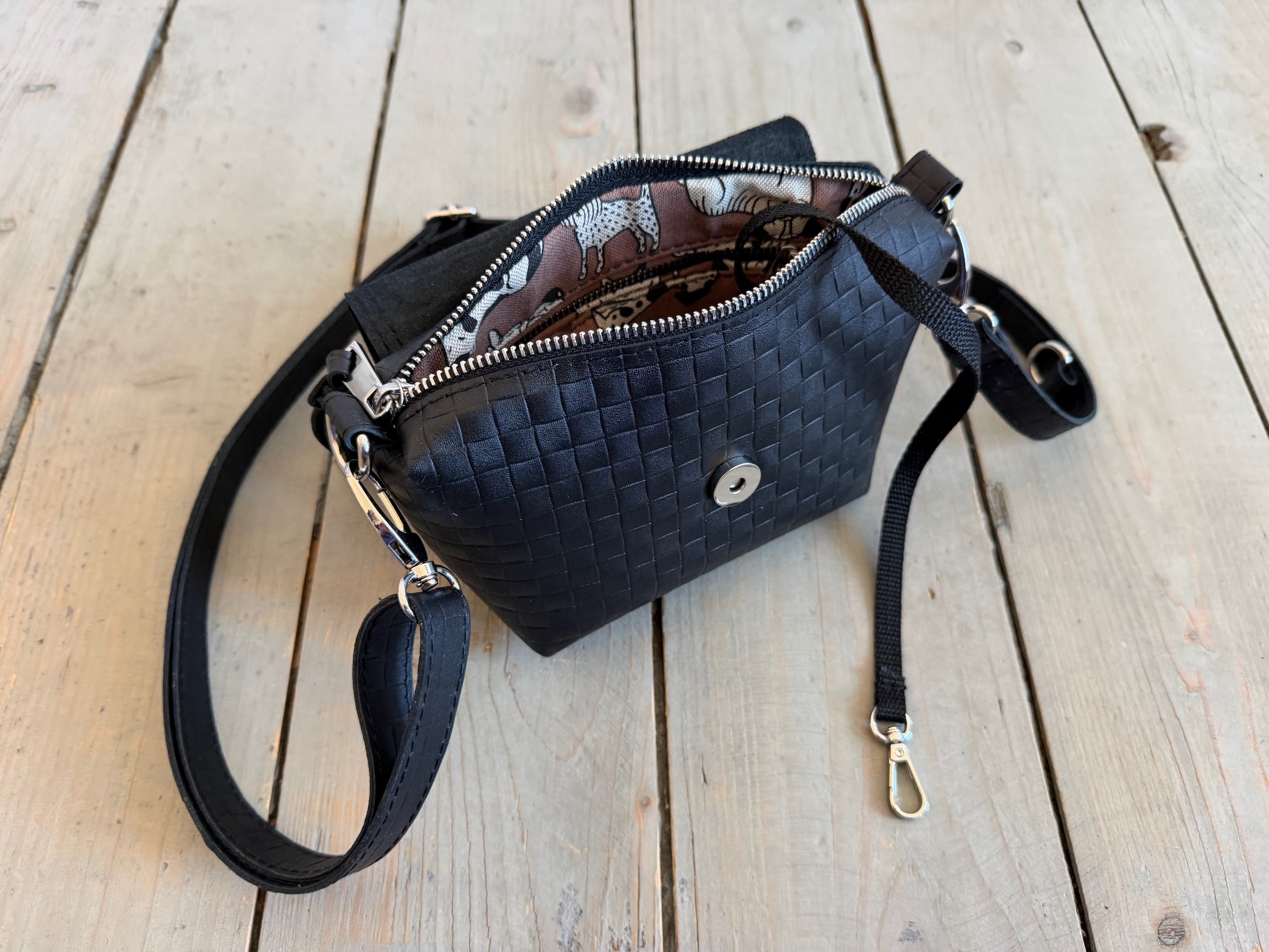 Wewnątrz kieszonka na zamek oraz smyczka z karabińczykiem.