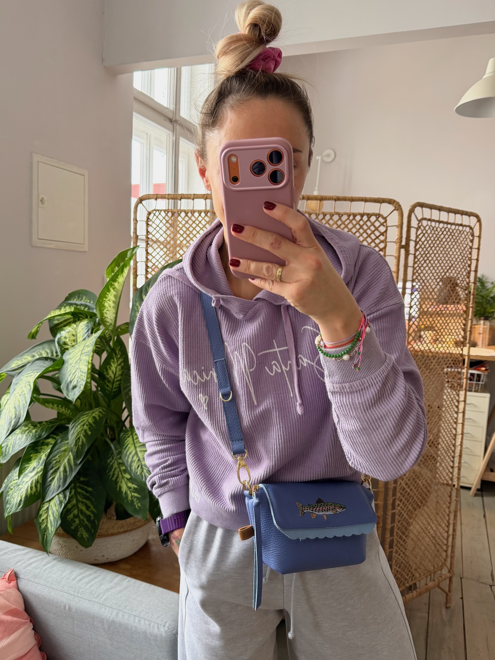Wewnątrz kieszonka na zamek oraz smyczka z karabińczykiem.