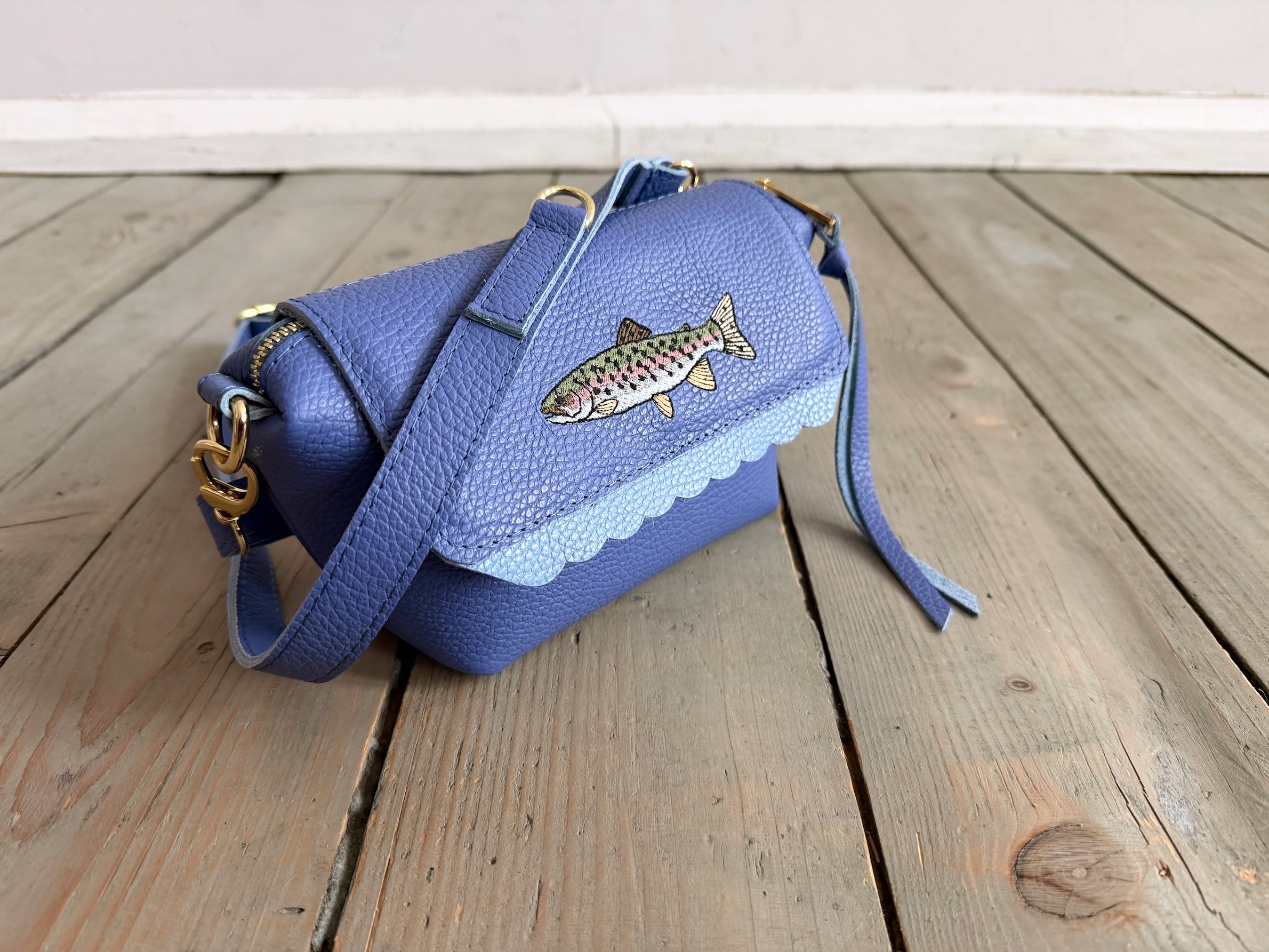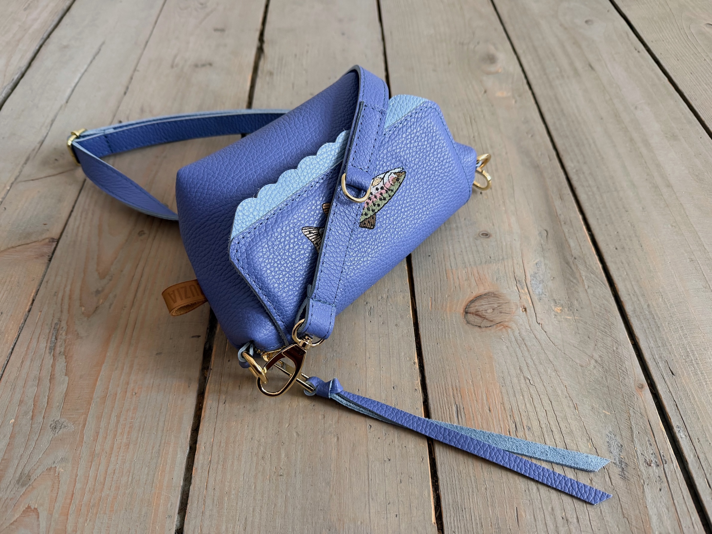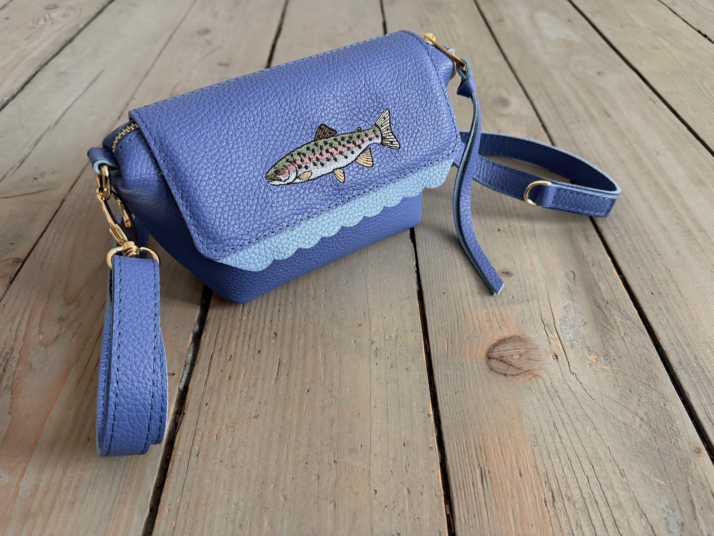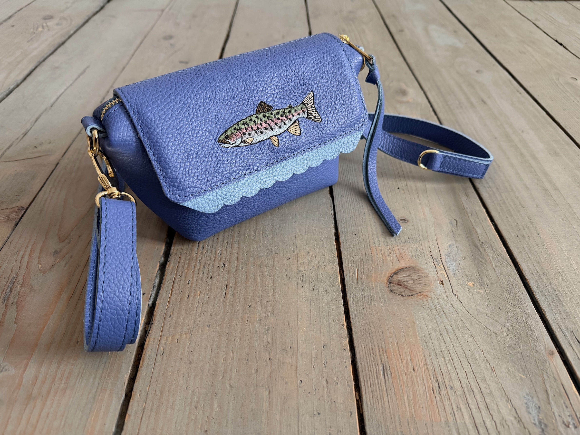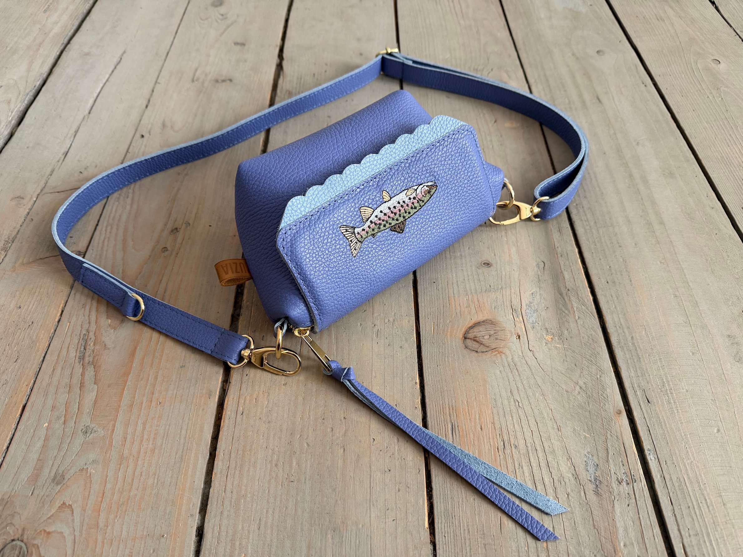 Na przodzie haft ryby - pstrąga :)