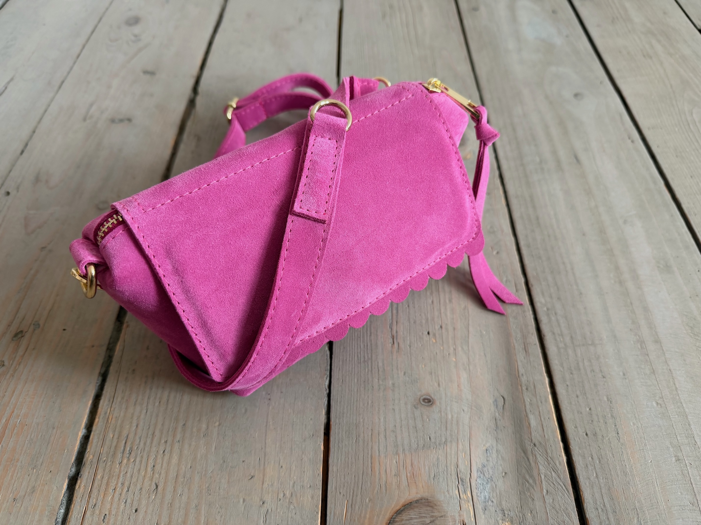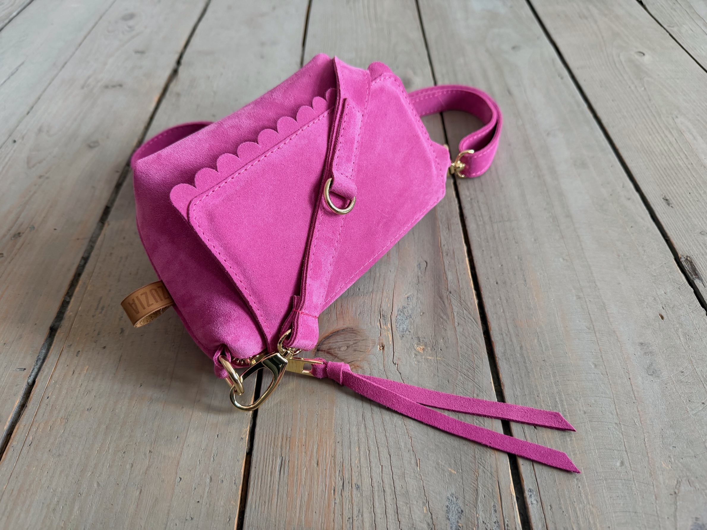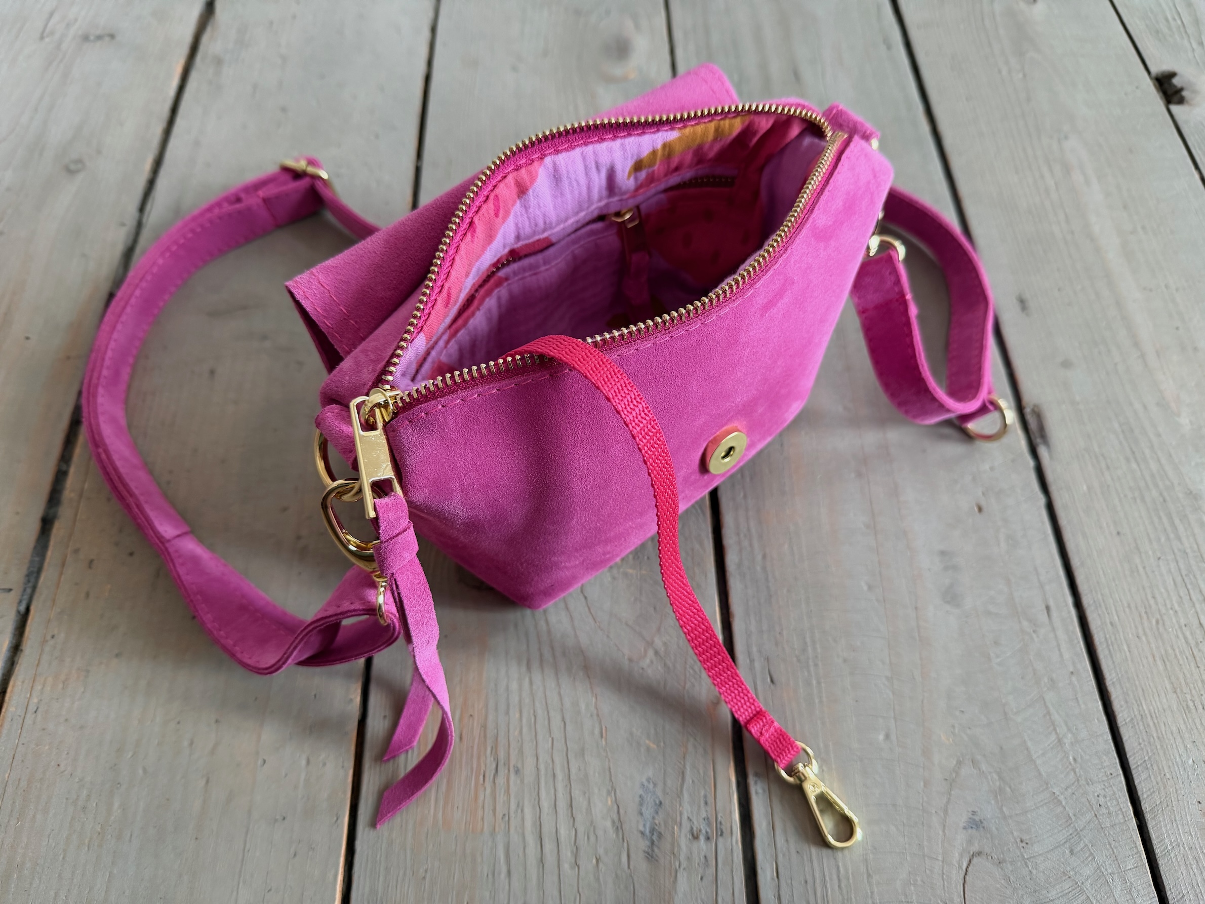 Uszyta ze skóry naturalnej welurowej + bawełnianej podszewki.