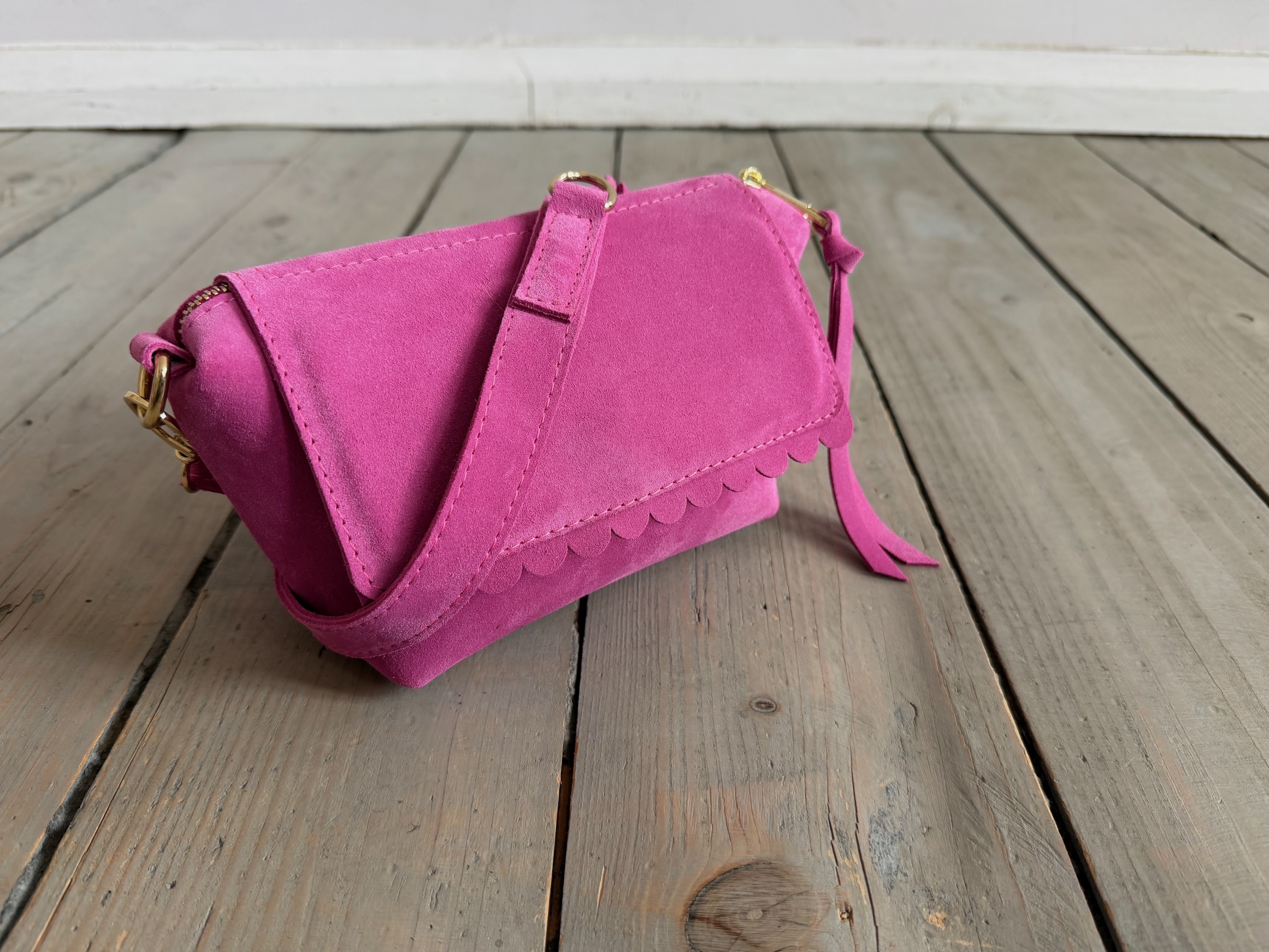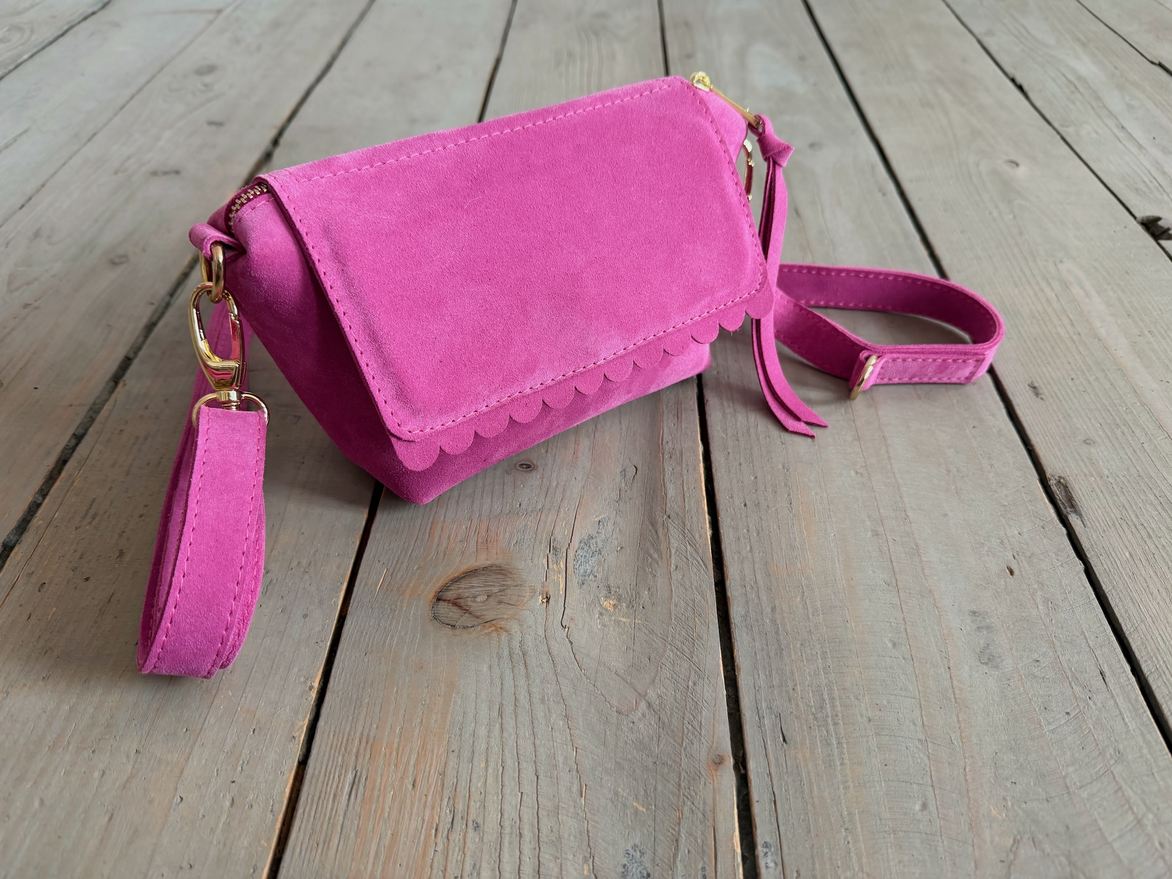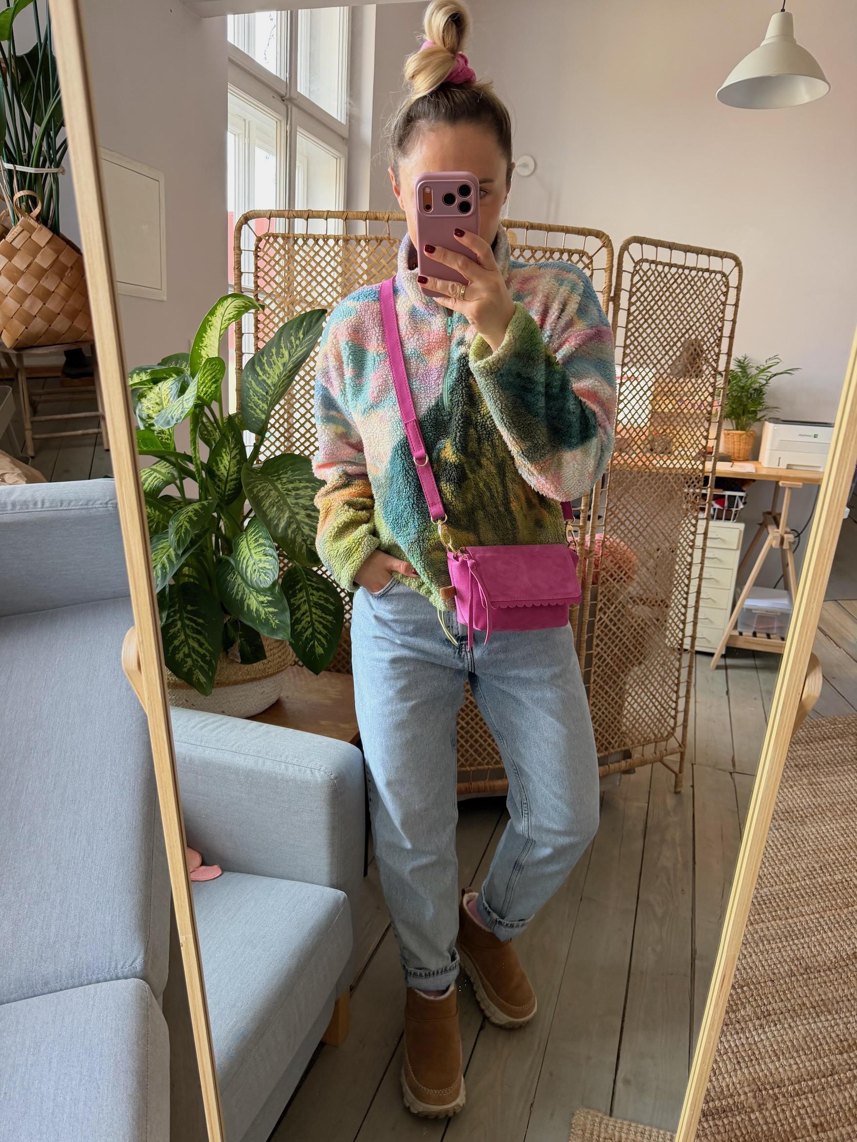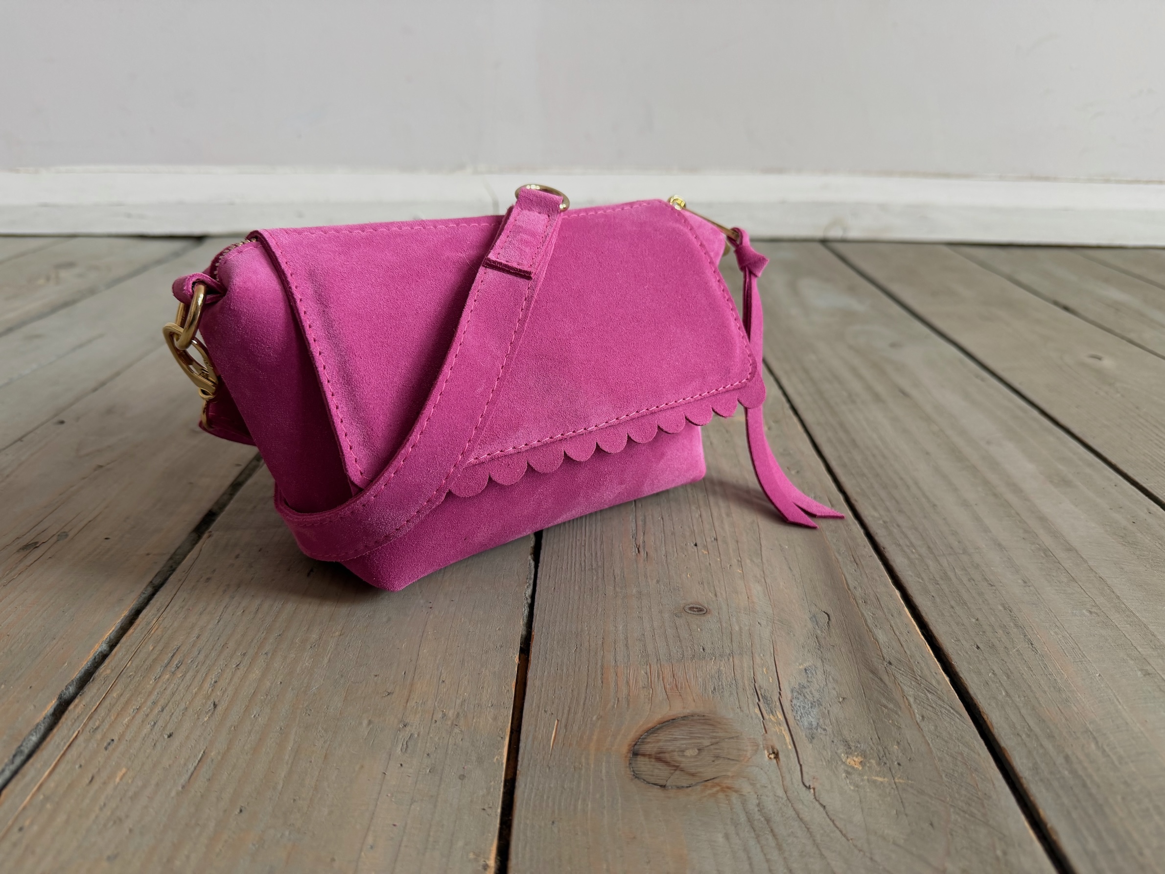 Uszyta ze skóry naturalnej welurowej + bawełnianej podszewki.