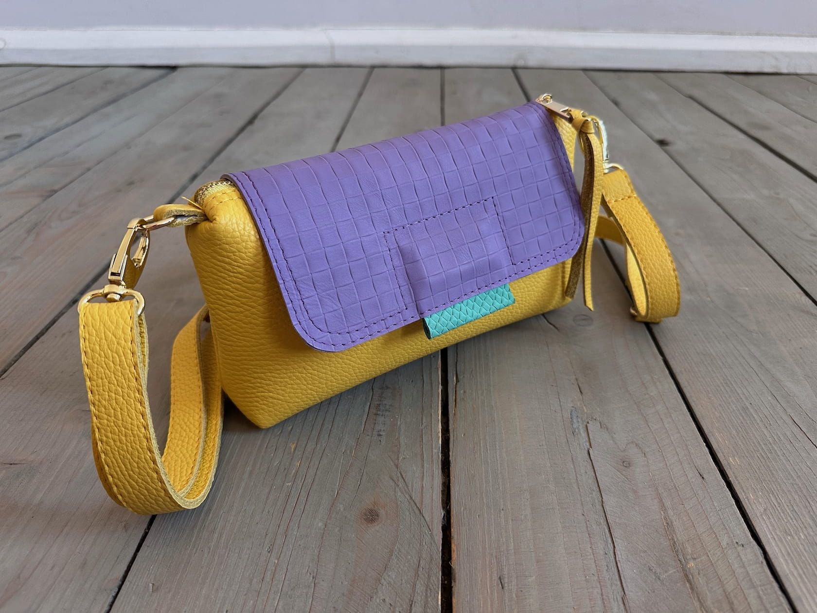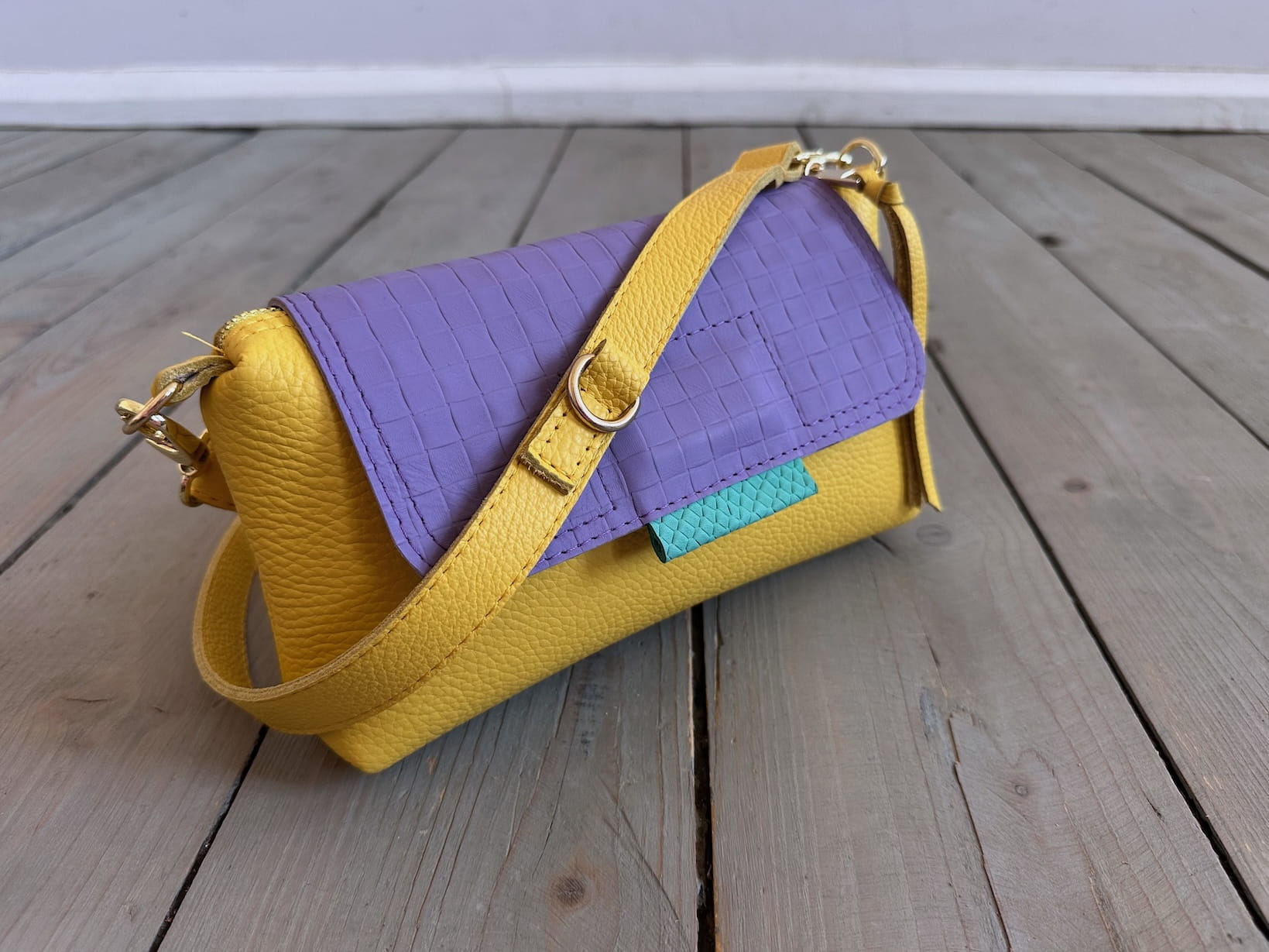 Uszyta ze skóry naturalnej licowej.