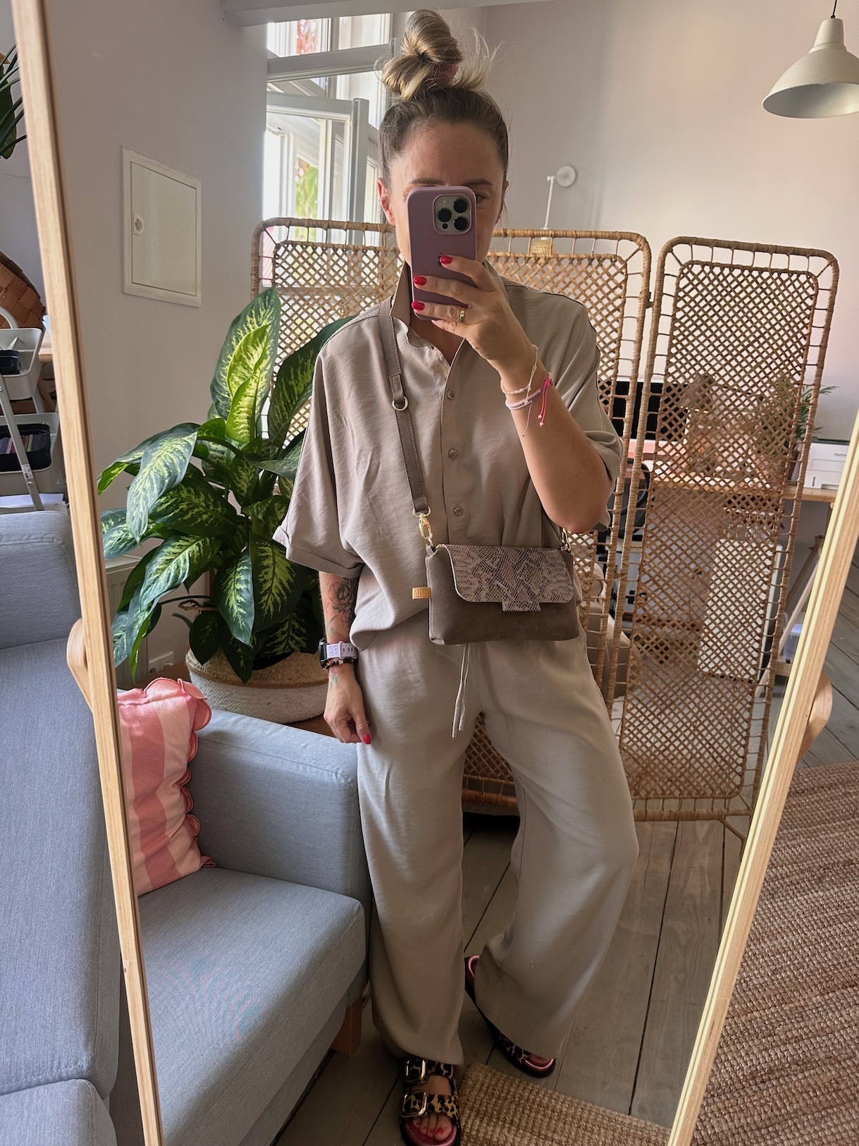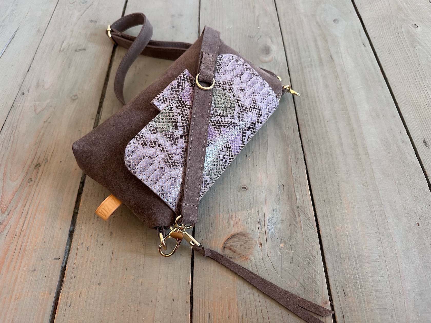 MiniMini Clap Beige Suede + Pale Snake