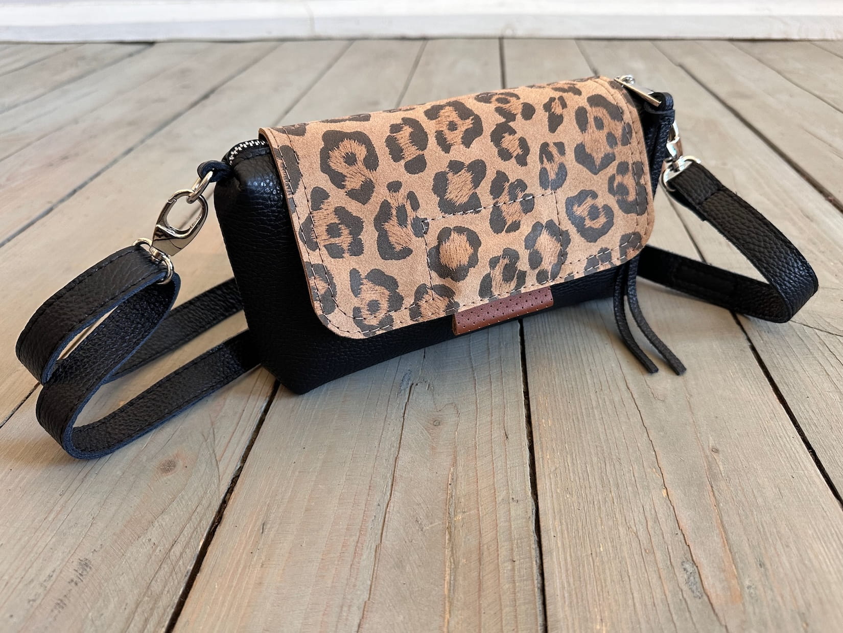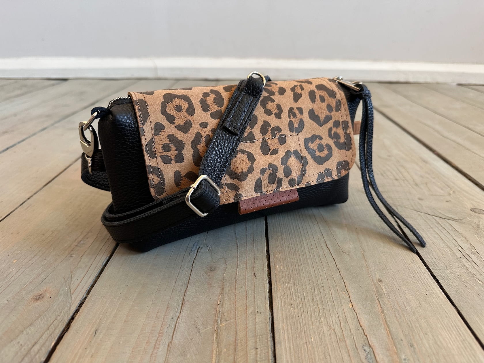 MiniMini Clap Black + Leopard IV Nubuck