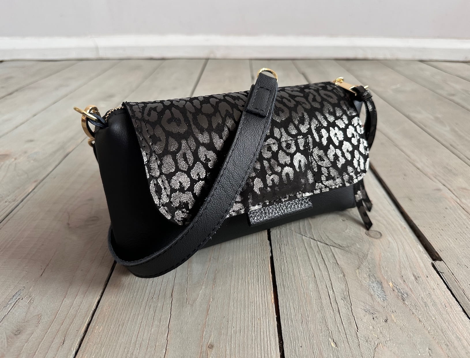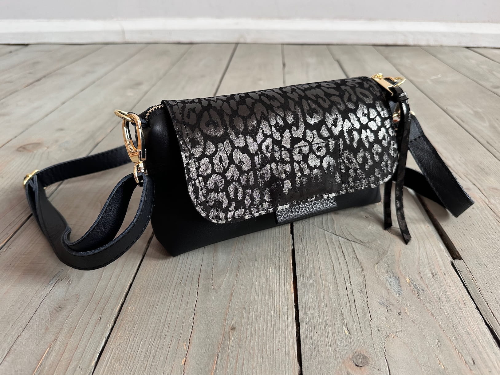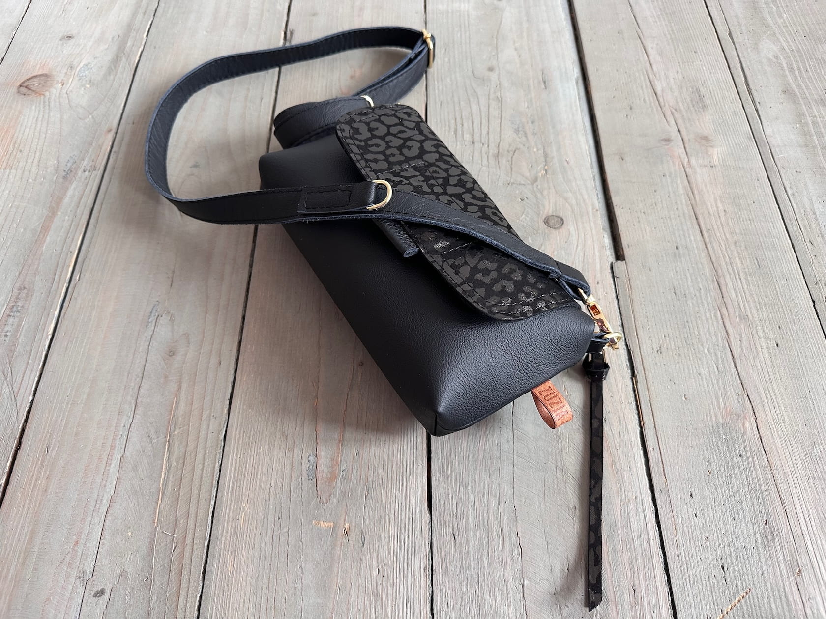 MiniMini Clap Black Tornado + Leopard Nubuck Black