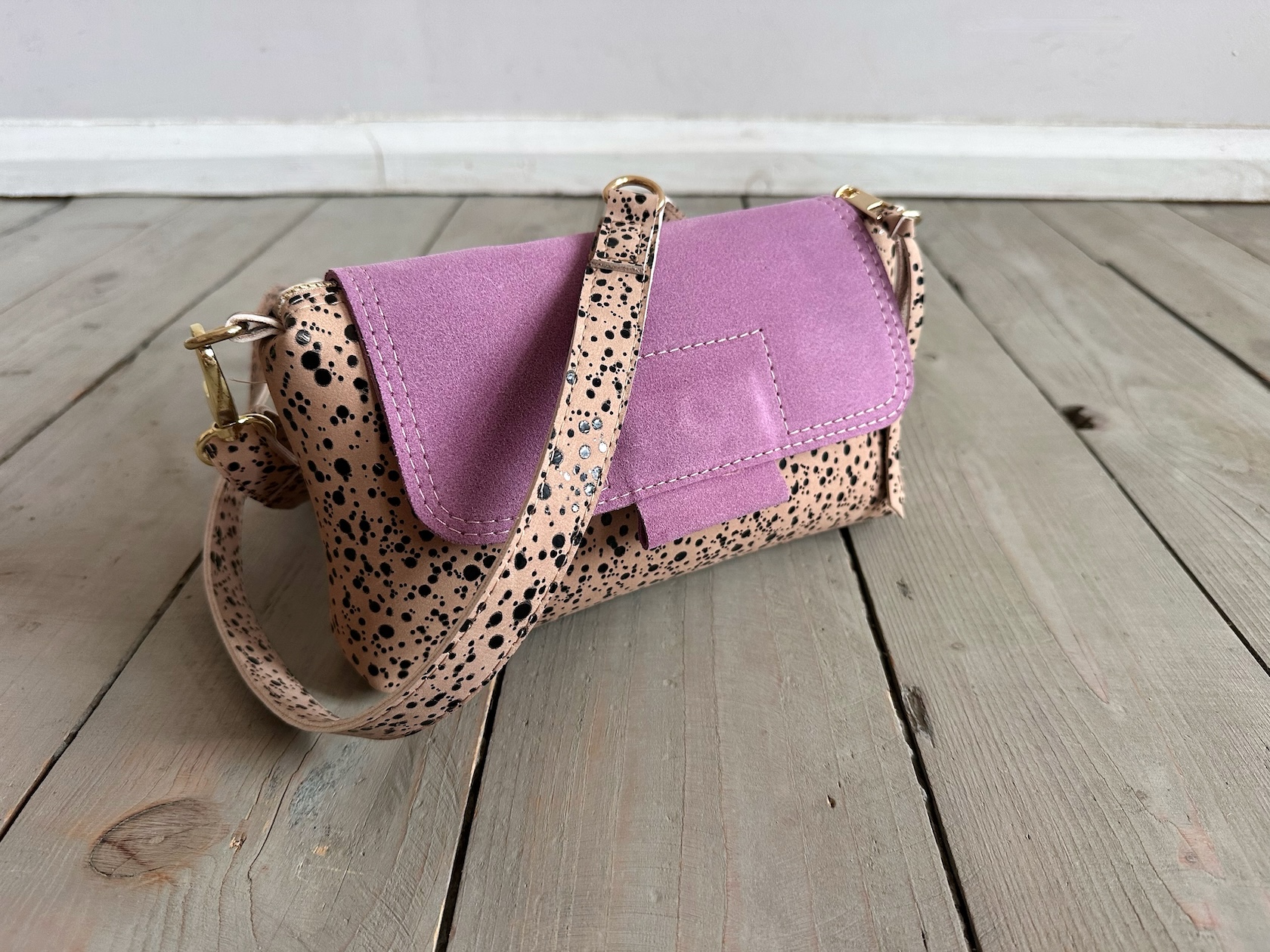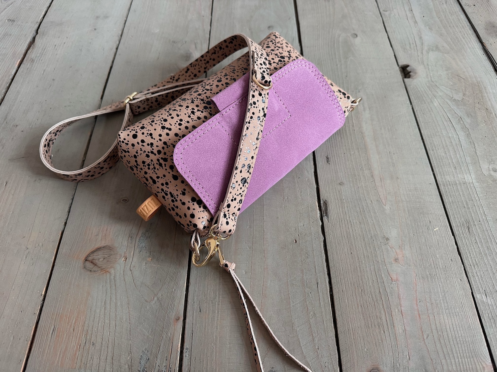 MiniMini Clap Cream Dotty Nubuck + Lila Suede