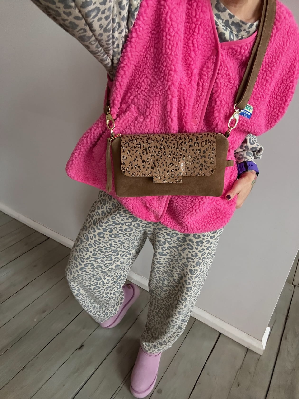 MiniMini Clap Date Suede + Leopard Suede