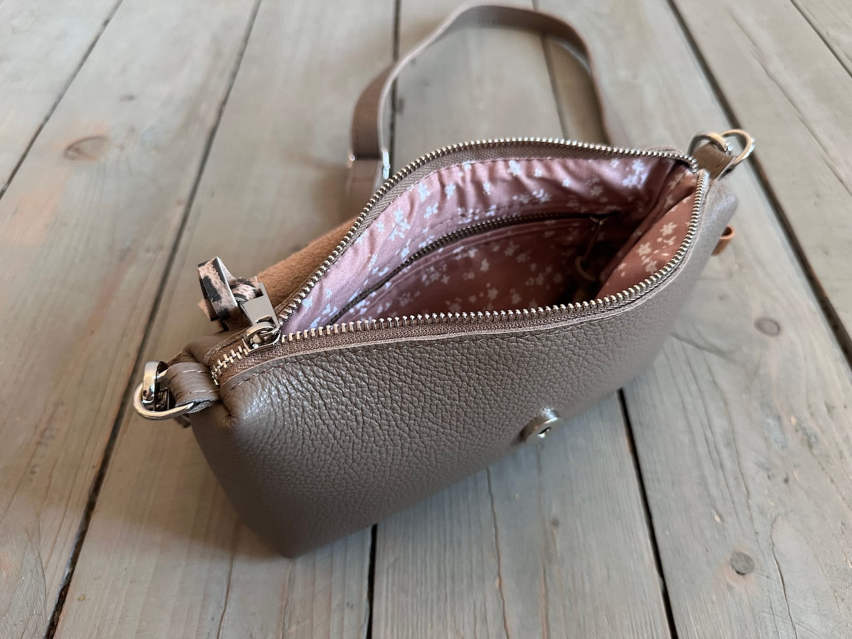 Uszyta ze skóry naturalnej licowej + nubukowej.