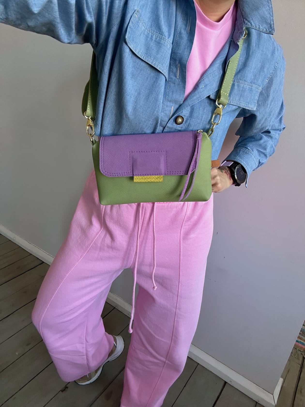MiniMini Clap Olive Bubbles Purple Bubbles Nubuck