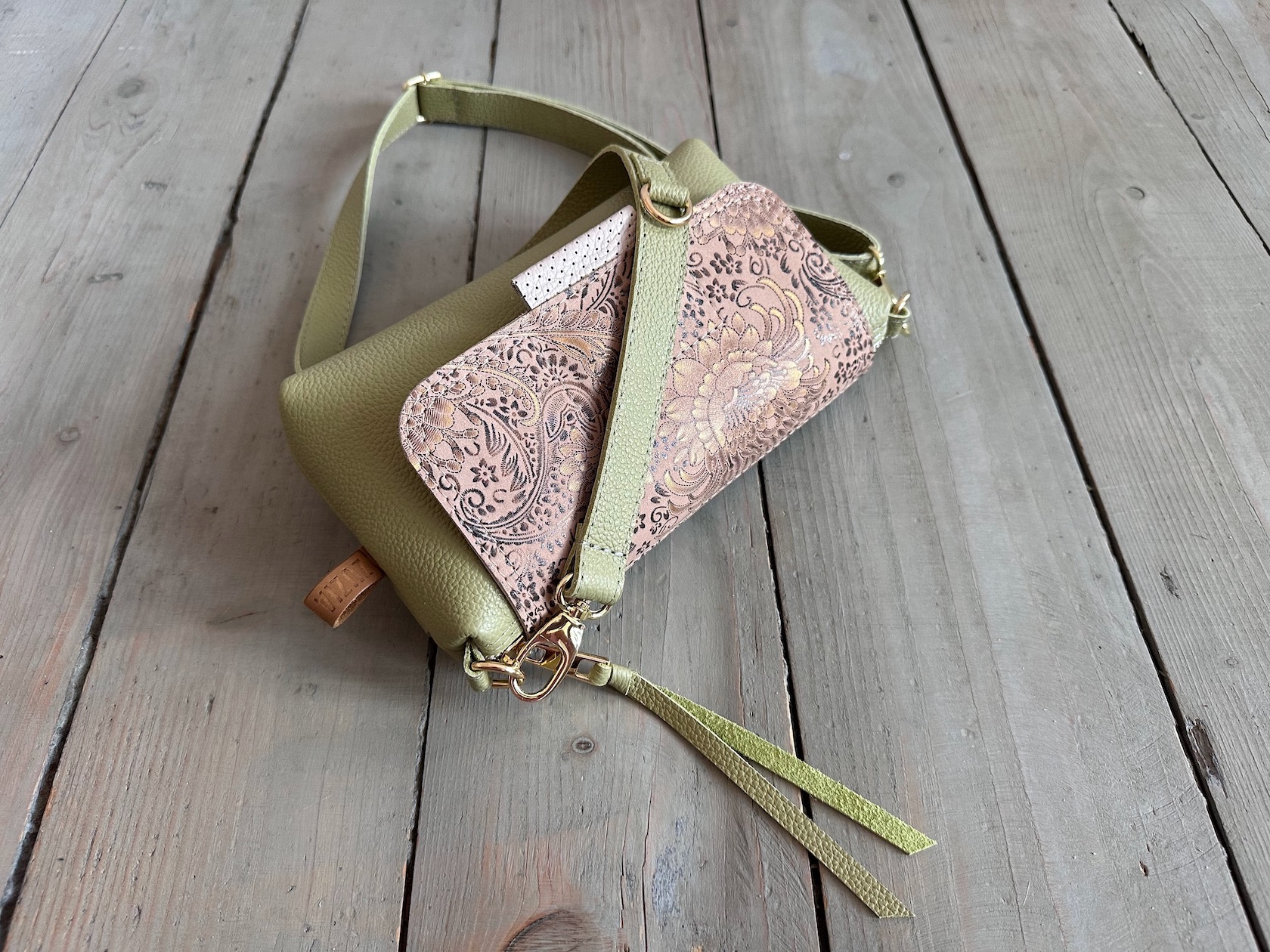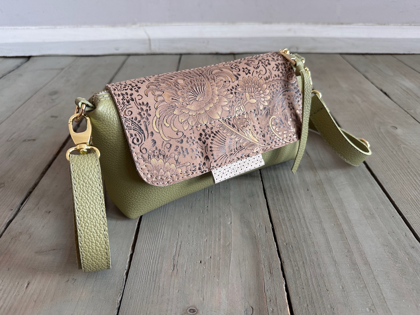 MiniMini Clap Olive + Paisley Beige - Gold Nubuck