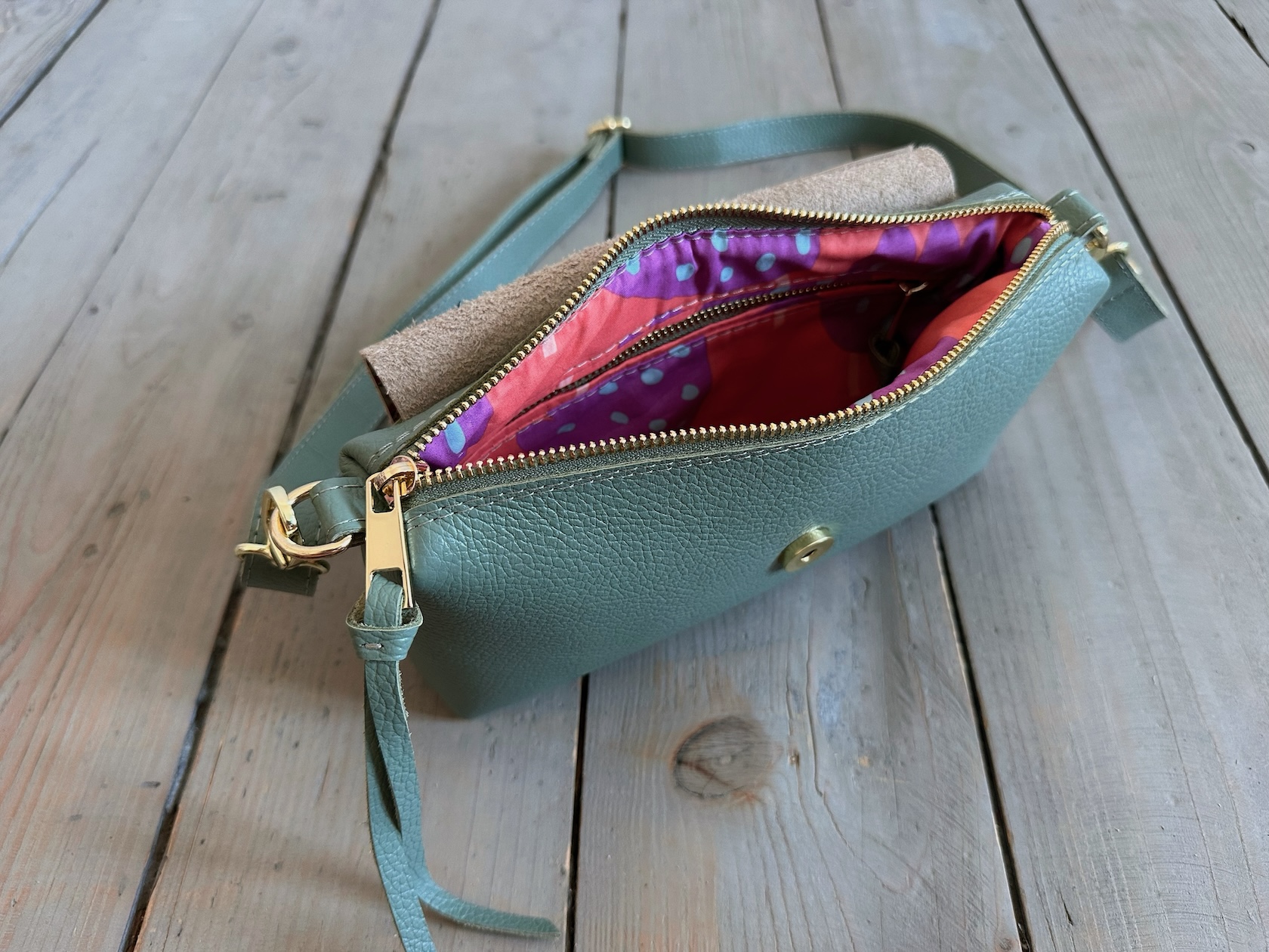 Uszyta ze skóry naturalnej licowej. Podszewka 100% bawełny.