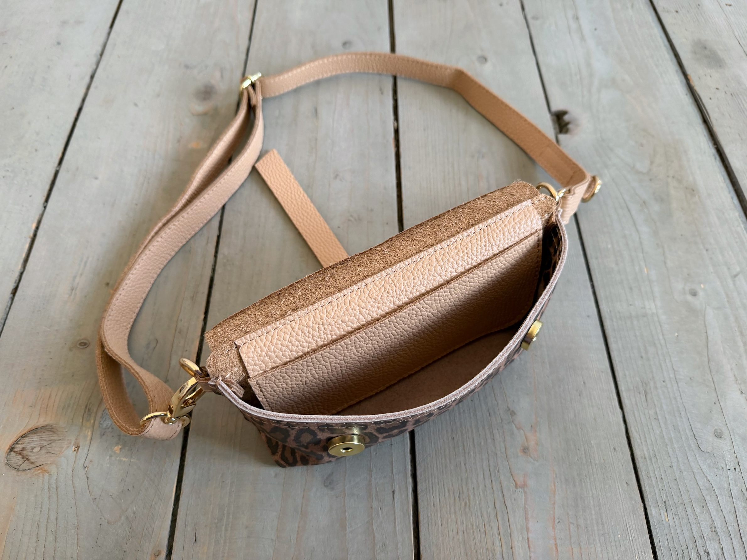 Uszyta ze skóry naturalnej licowej + nubukowej.
