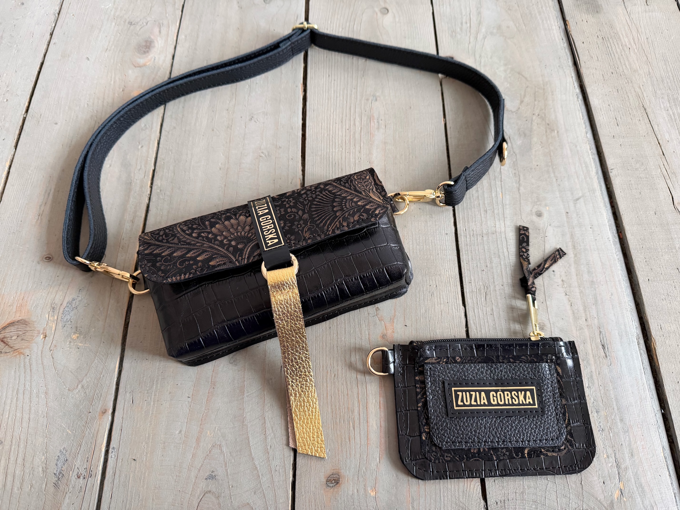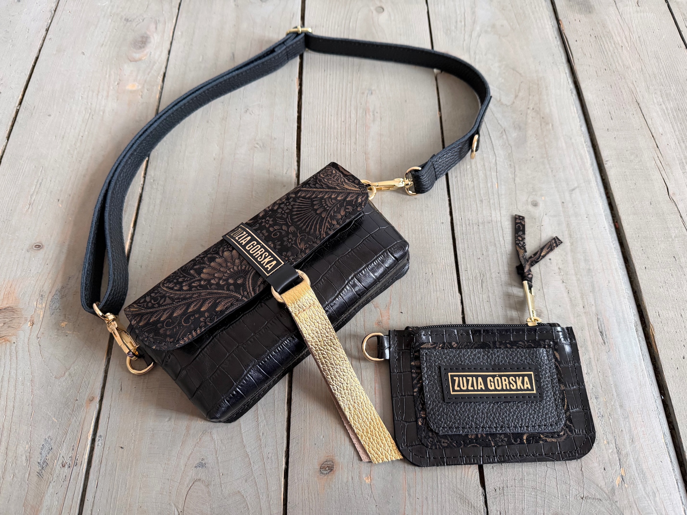 Mobiler Black Croco + Paisley Black Gold Nubuck + Gold + Wallet